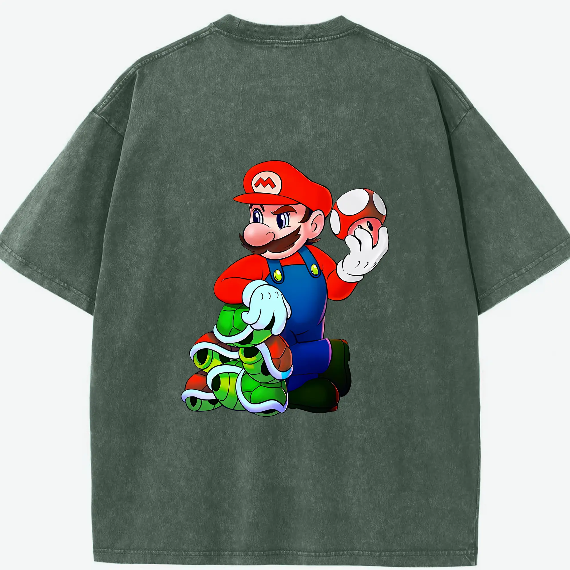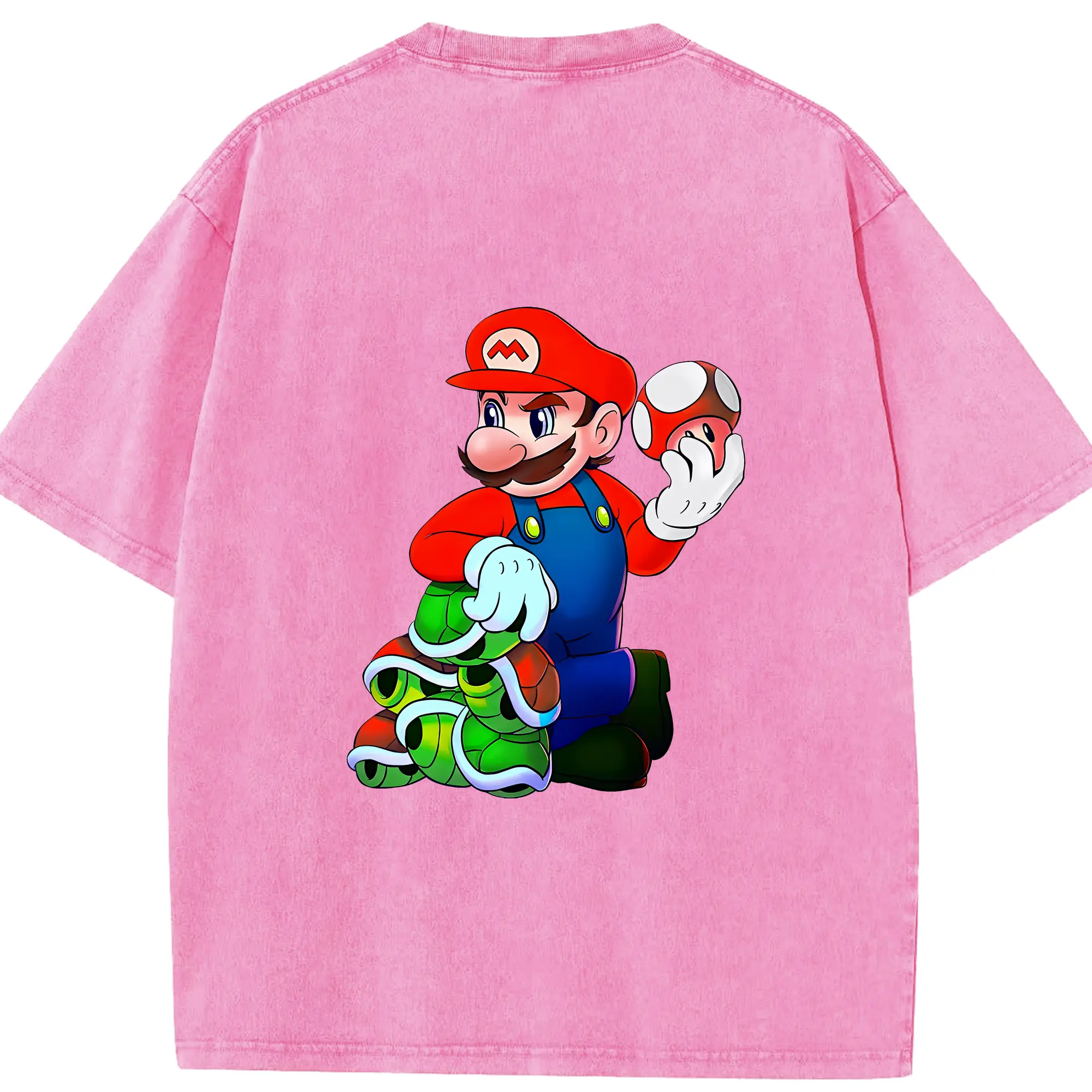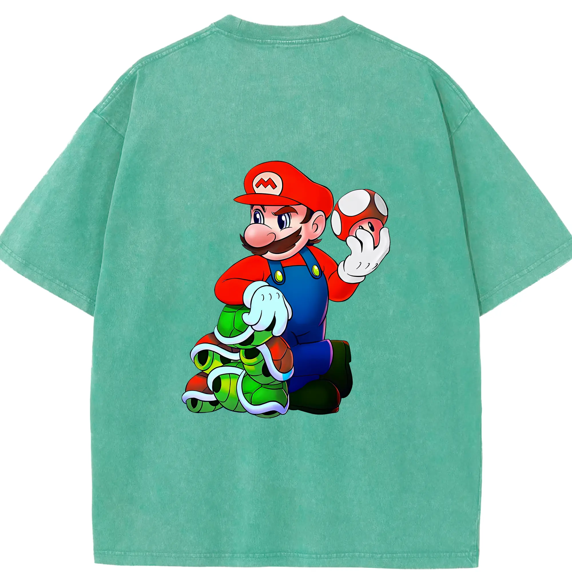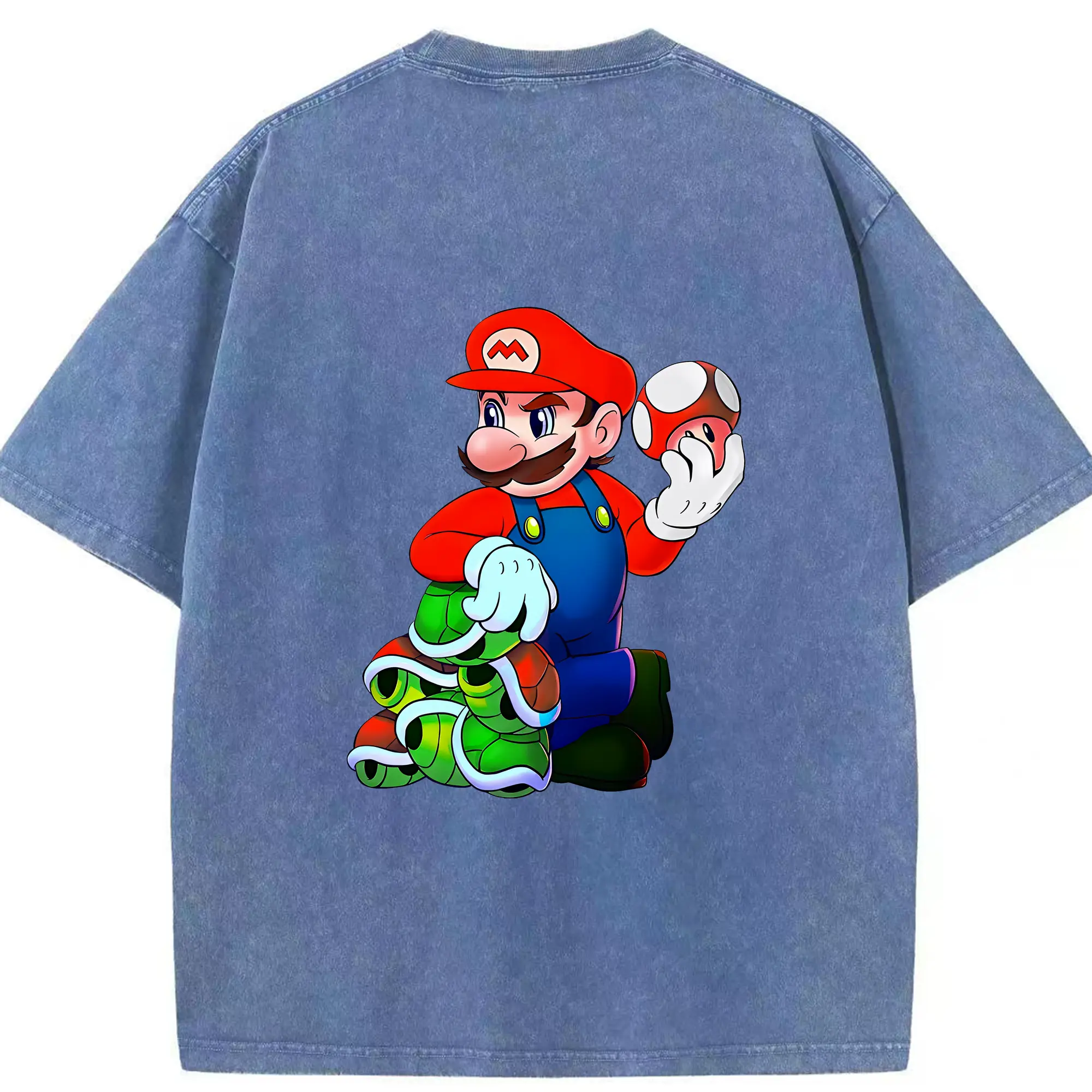 マリオ グッズ マリオ - 綿100% ヴィンテージ風 半袖Tシャツ ・ 背面プリント ・ 柔らか肌触り ・ 通気性 快適 ・ スポーツ カジュアル 外出用