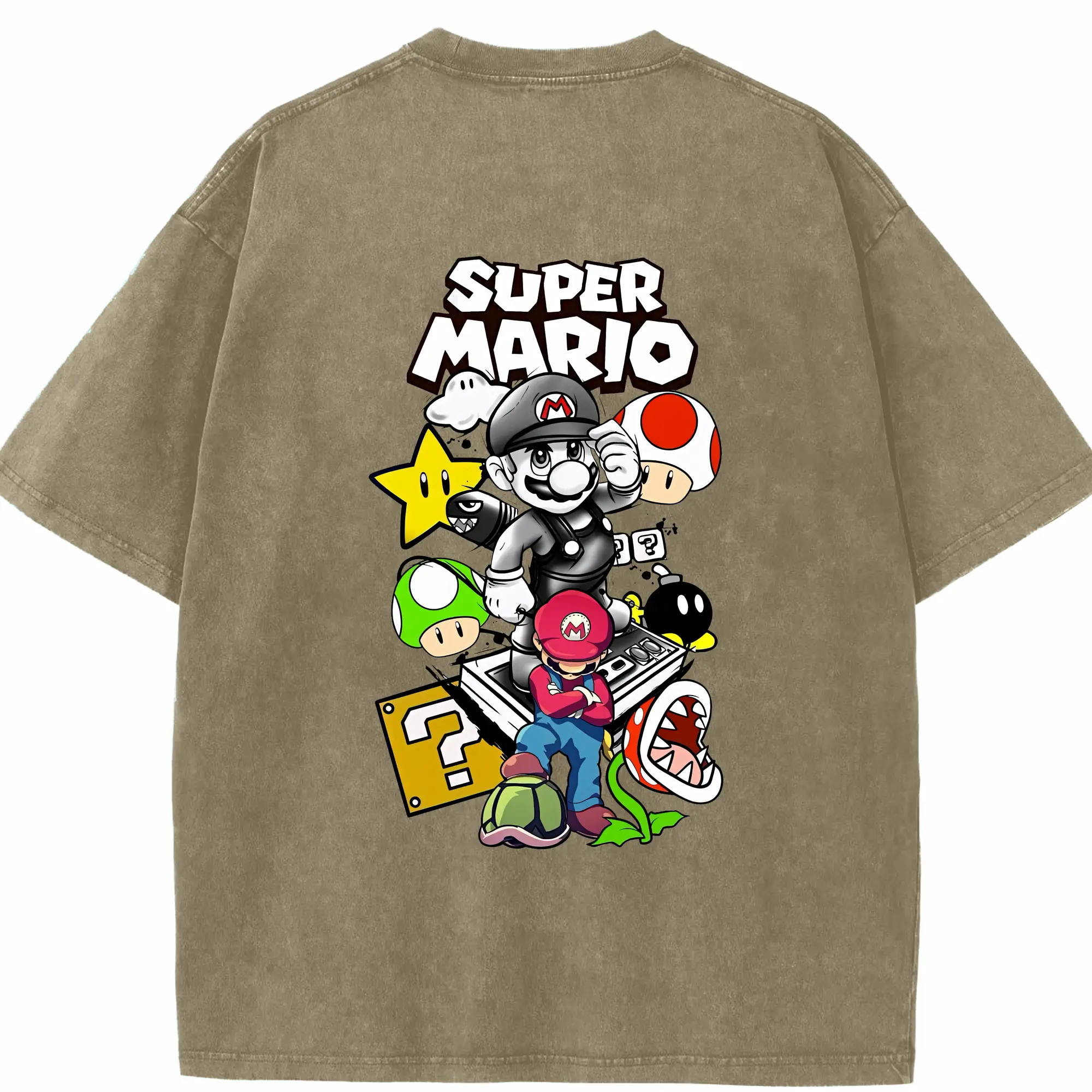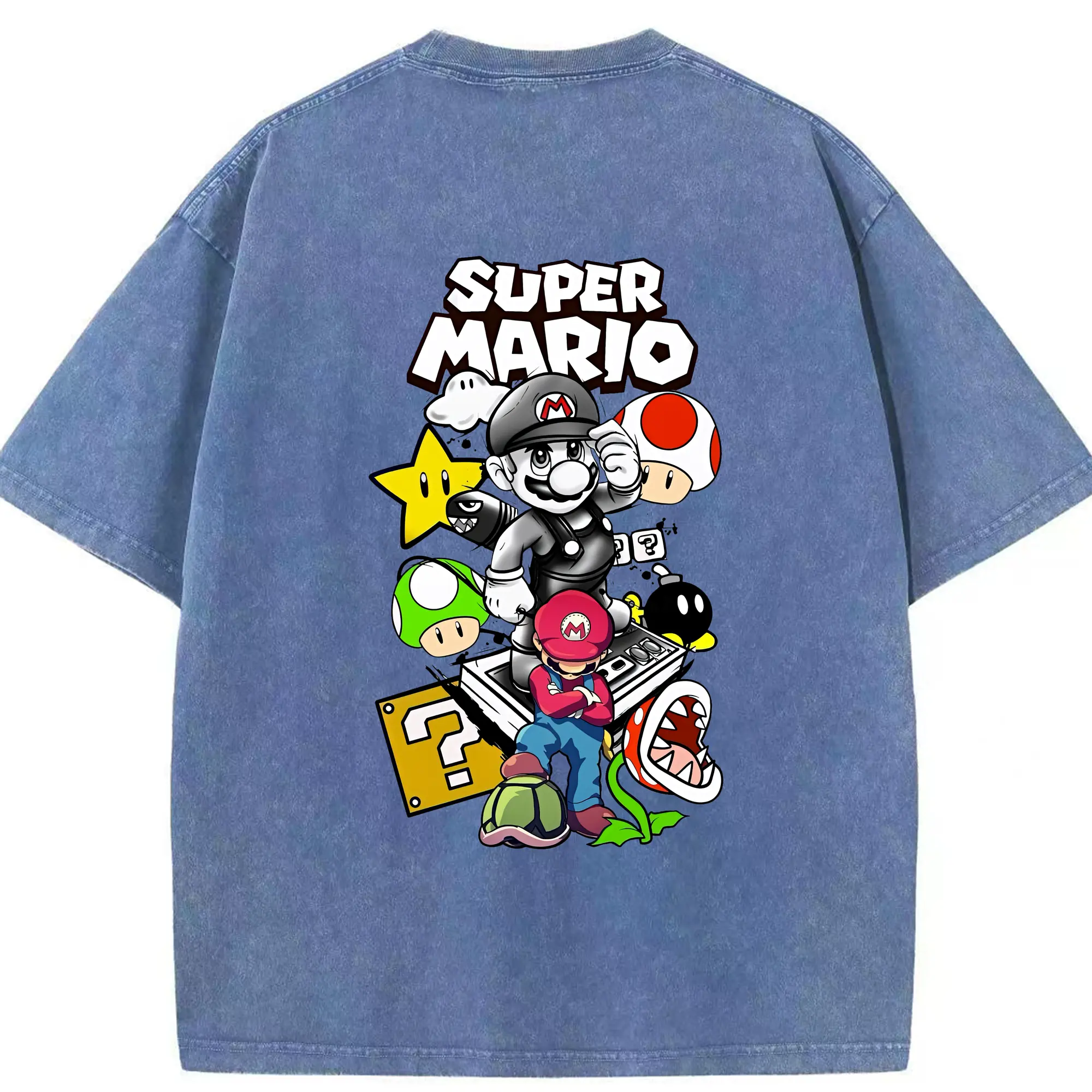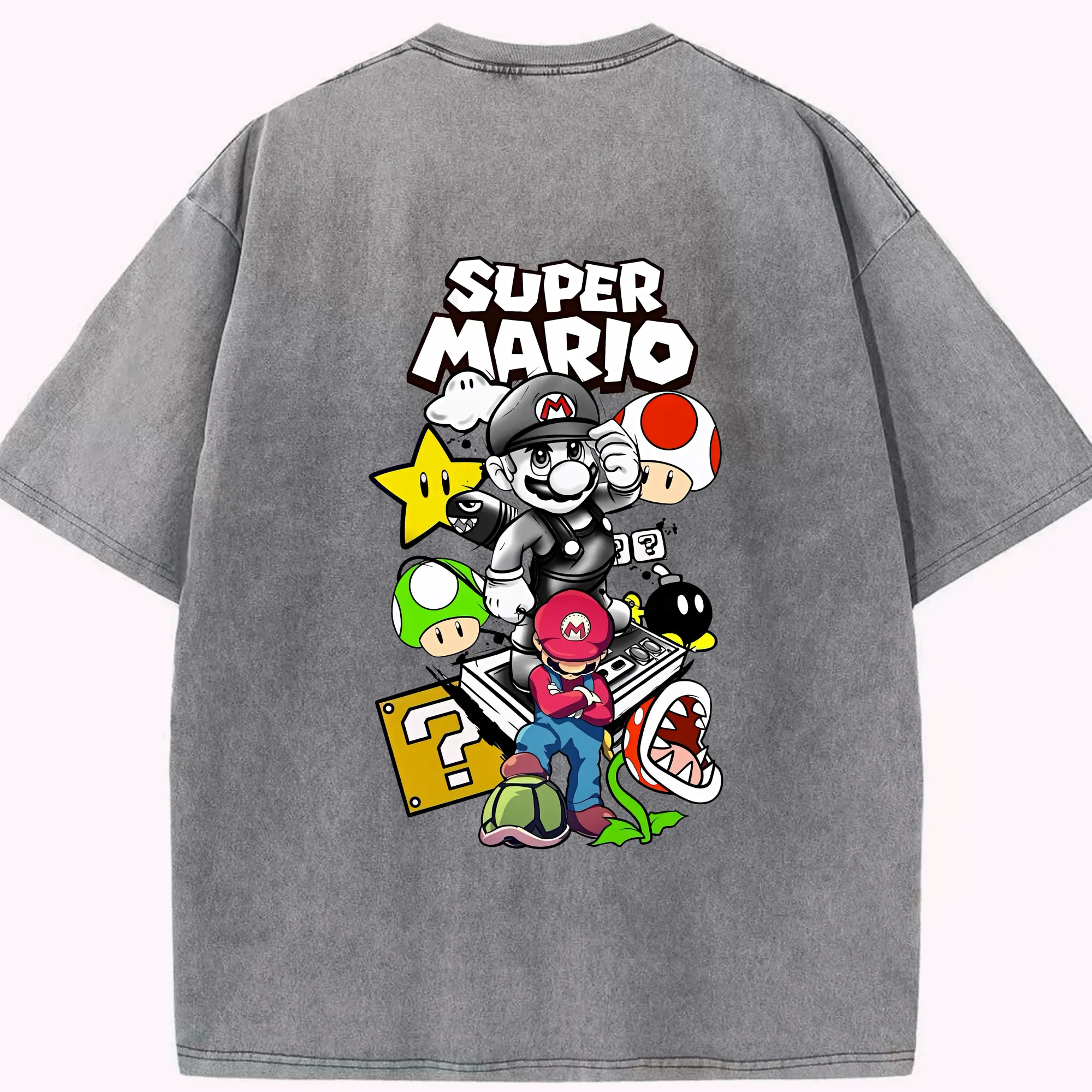 マリオ グッズ マリオ - 綿100% ヴィンテージ風 半袖Tシャツ ・ フロントプリント ・ 柔らか肌触り ・ 通気性 快適 ・ スポーツ カジュアル 外出用