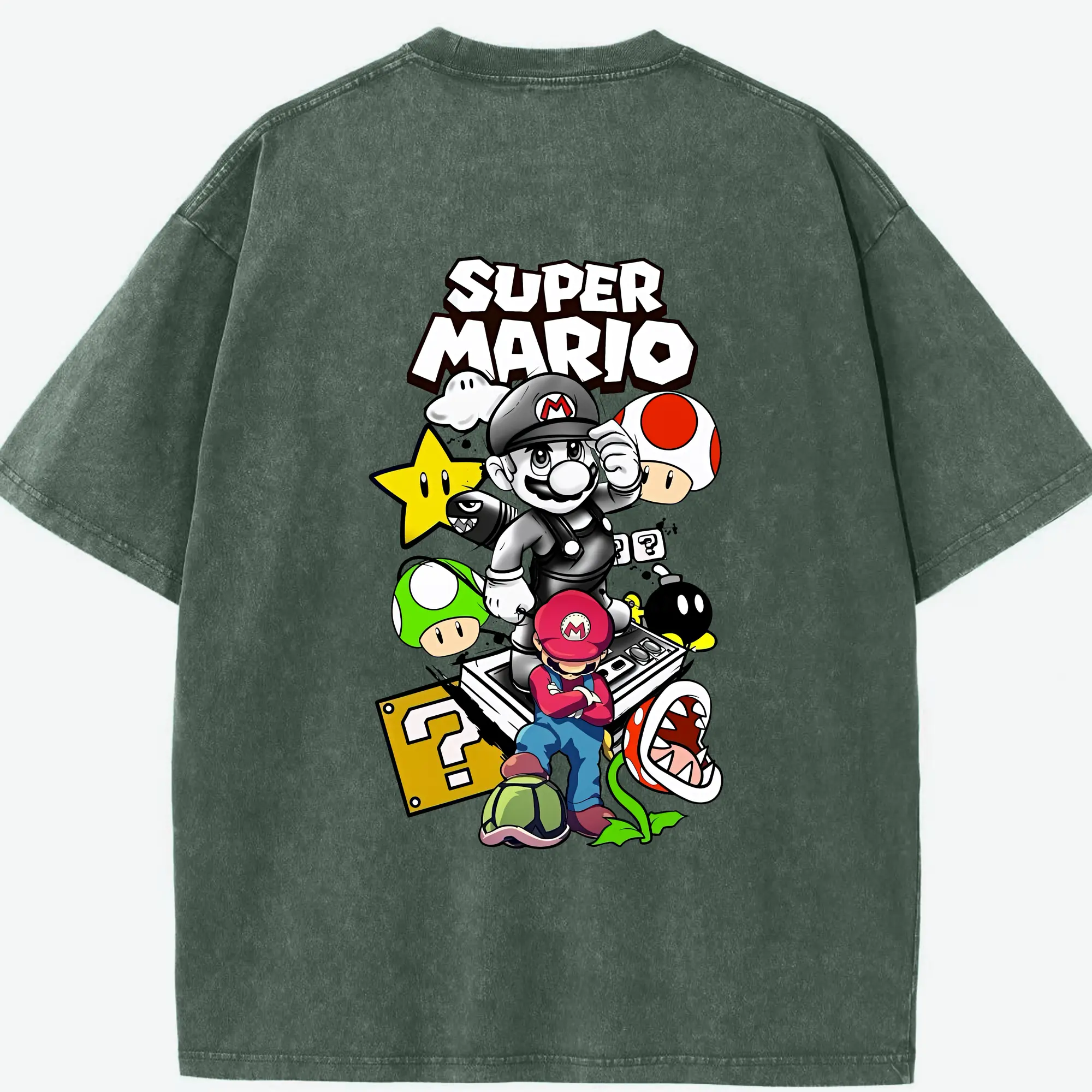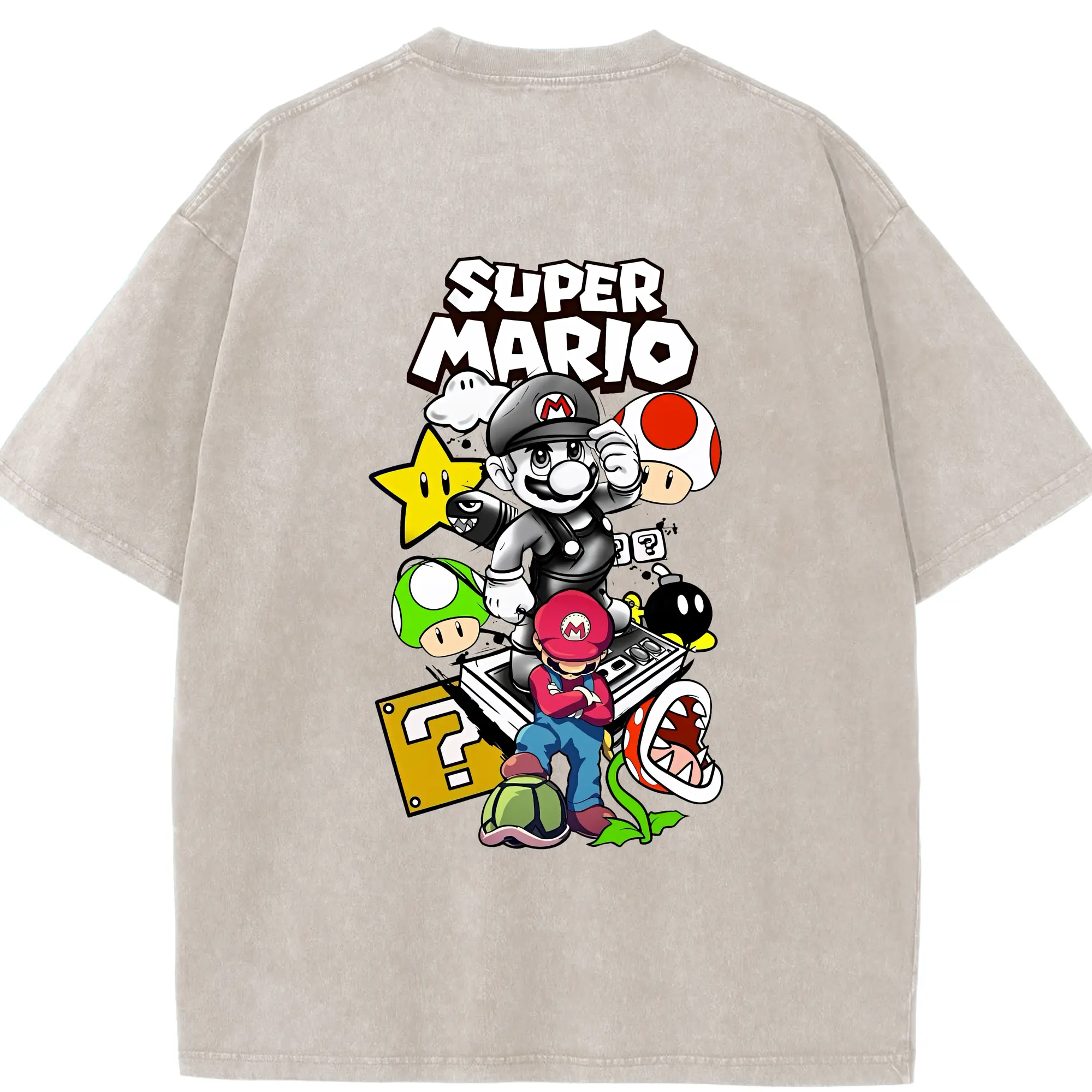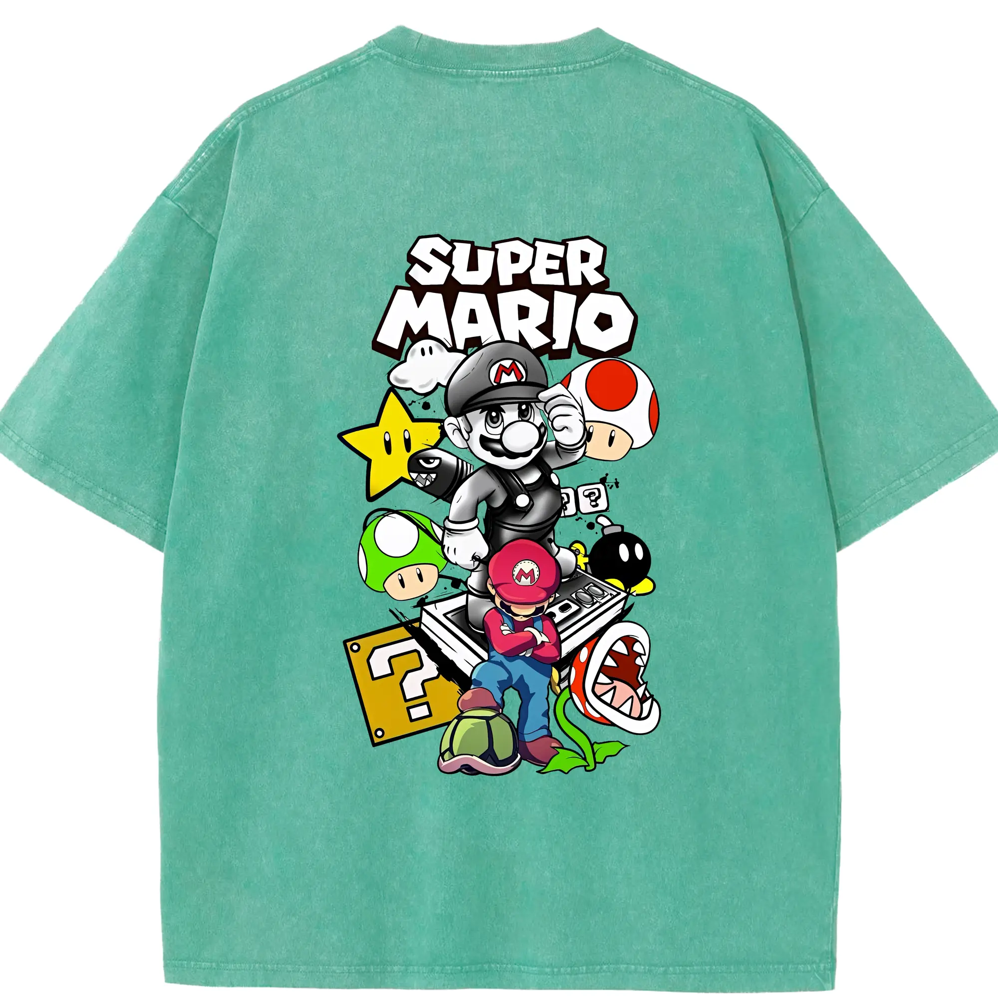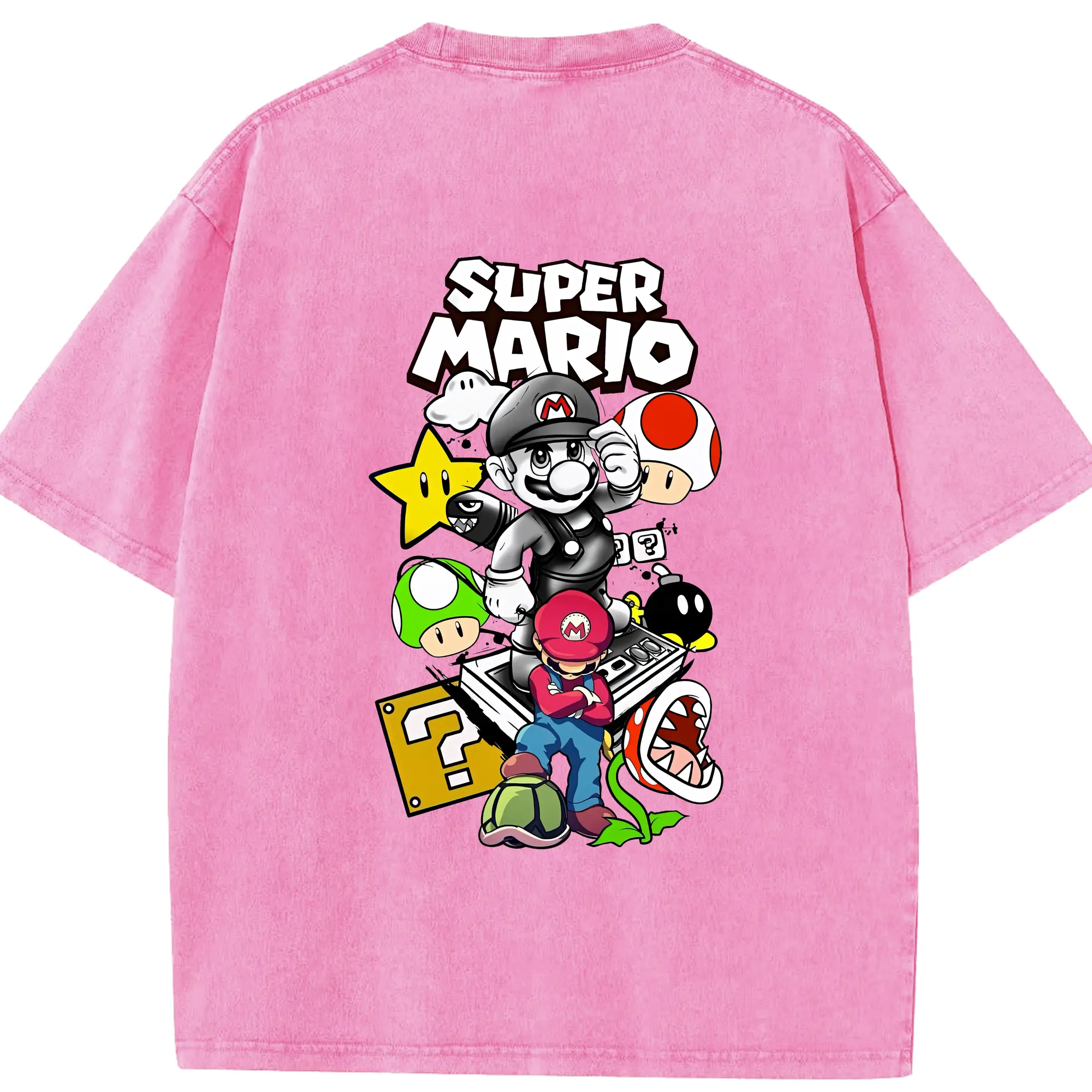 マリオ グッズ マリオ - 綿100% ヴィンテージ風 半袖Tシャツ ・ フロントプリント ・ 柔らか肌触り ・ 通気性 快適 ・ スポーツ カジュアル 外出用
