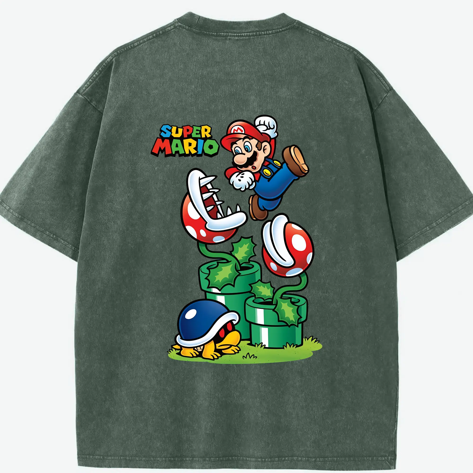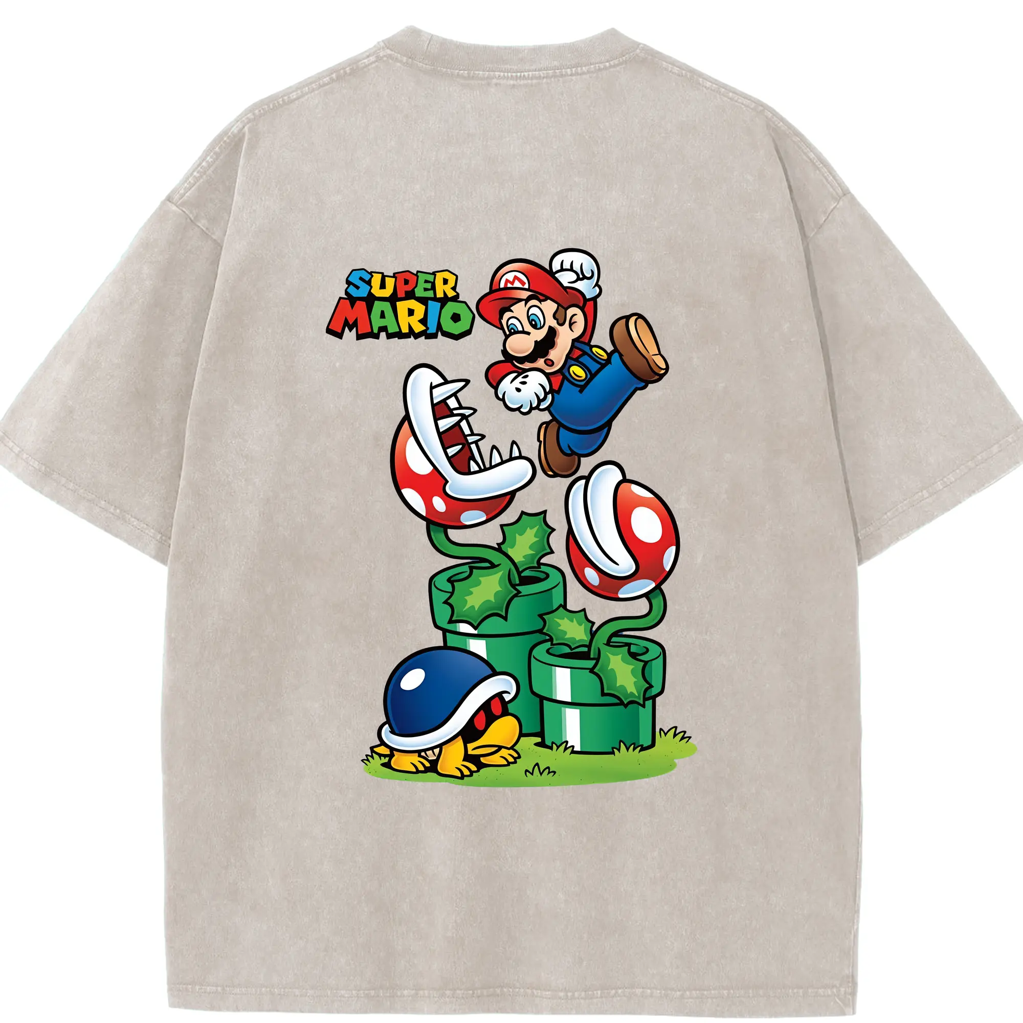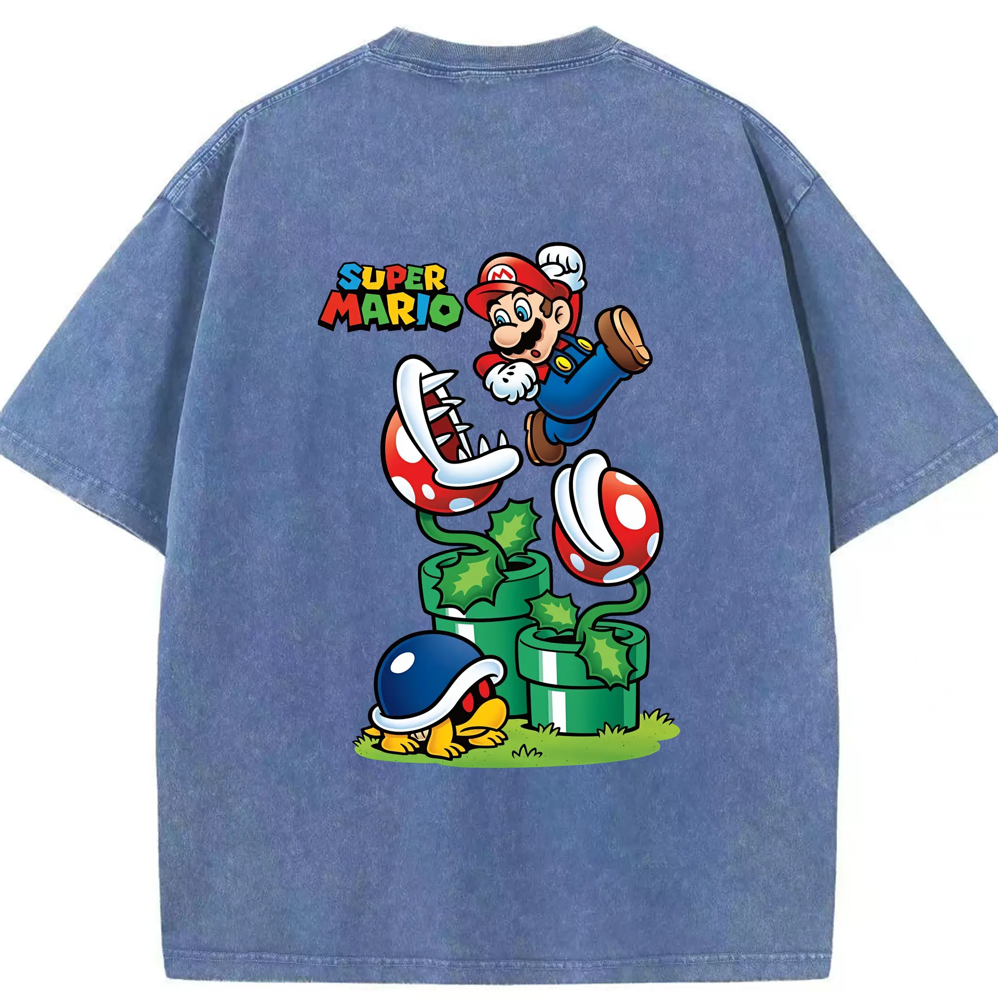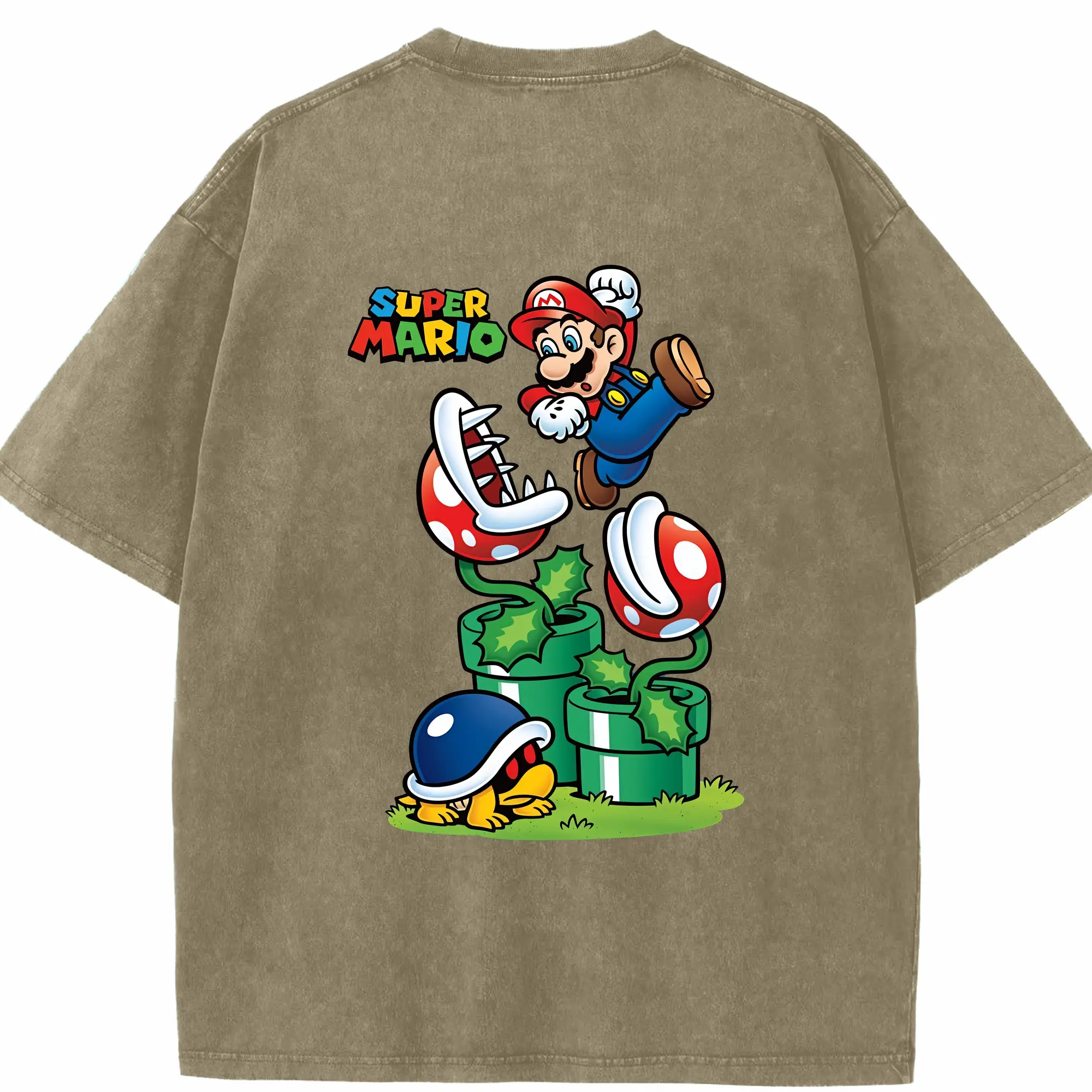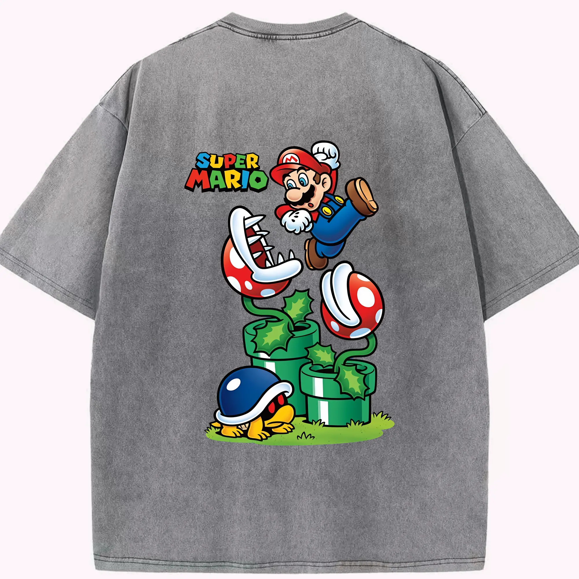 マリオ グッズ マリオ - 綿100% ヴィンテージ風 半袖Tシャツ ・ フロントプリント ・ 柔らか肌触り ・ 通気性 快適 ・ スポーツ カジュアル 外出用