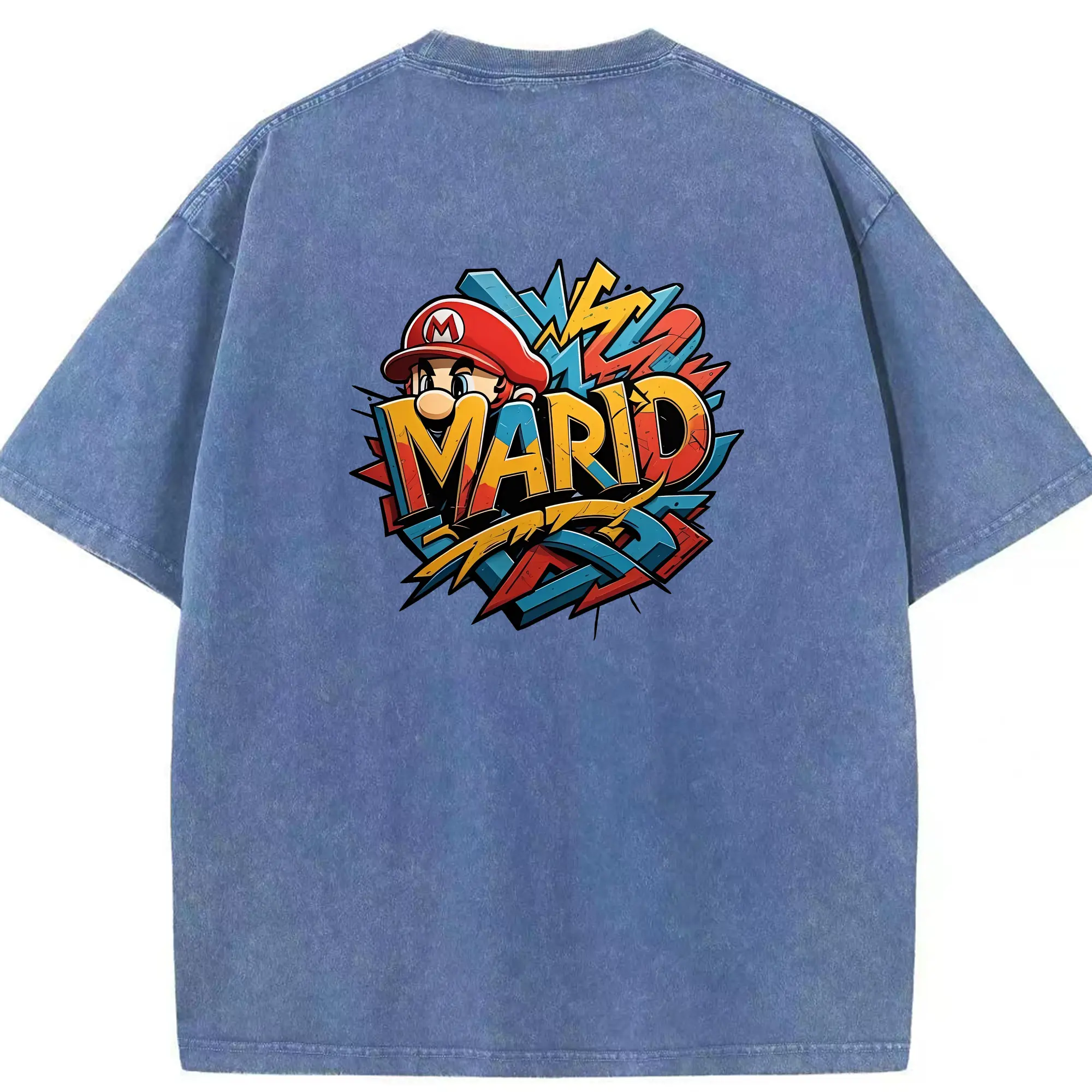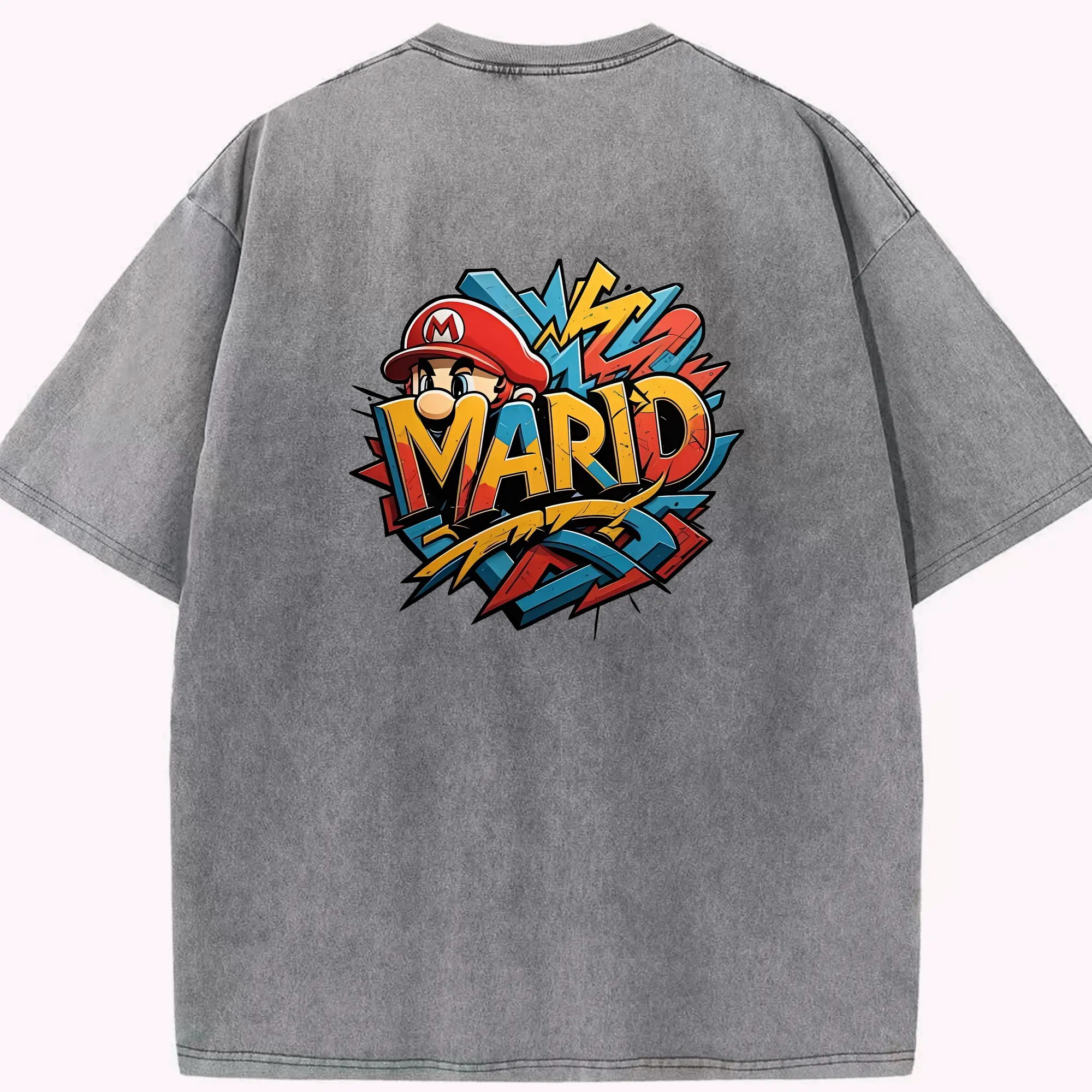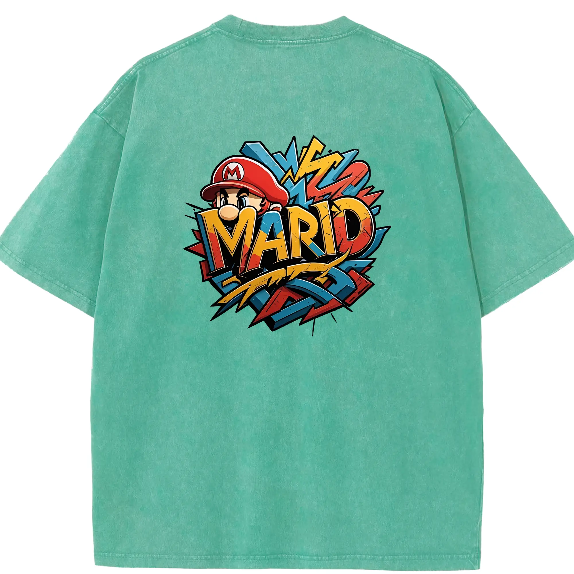マリオ グッズ マリオ - 綿100% ヴィンテージ風 半袖Tシャツ ・ フロントプリント ・ 柔らか肌触り ・ 通気性 快適 ・ スポーツ カジュアル 外出用