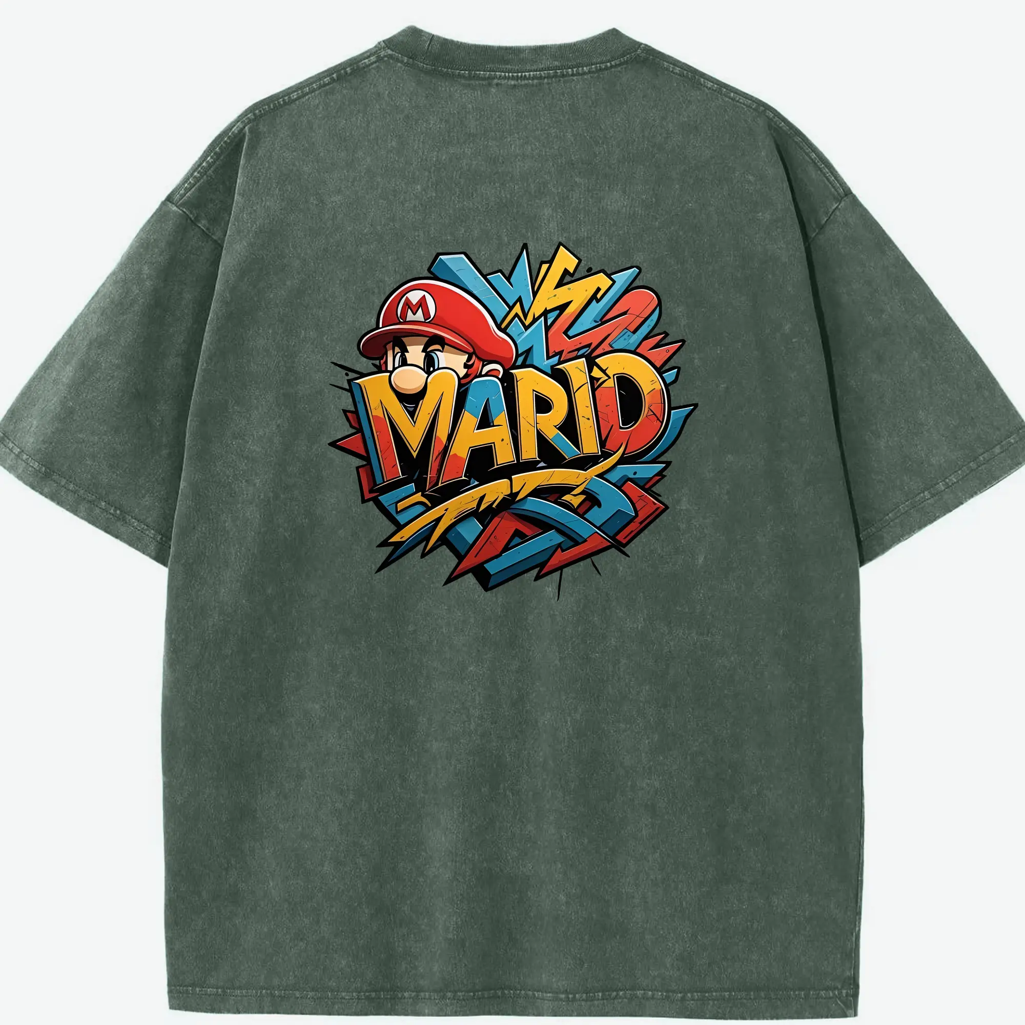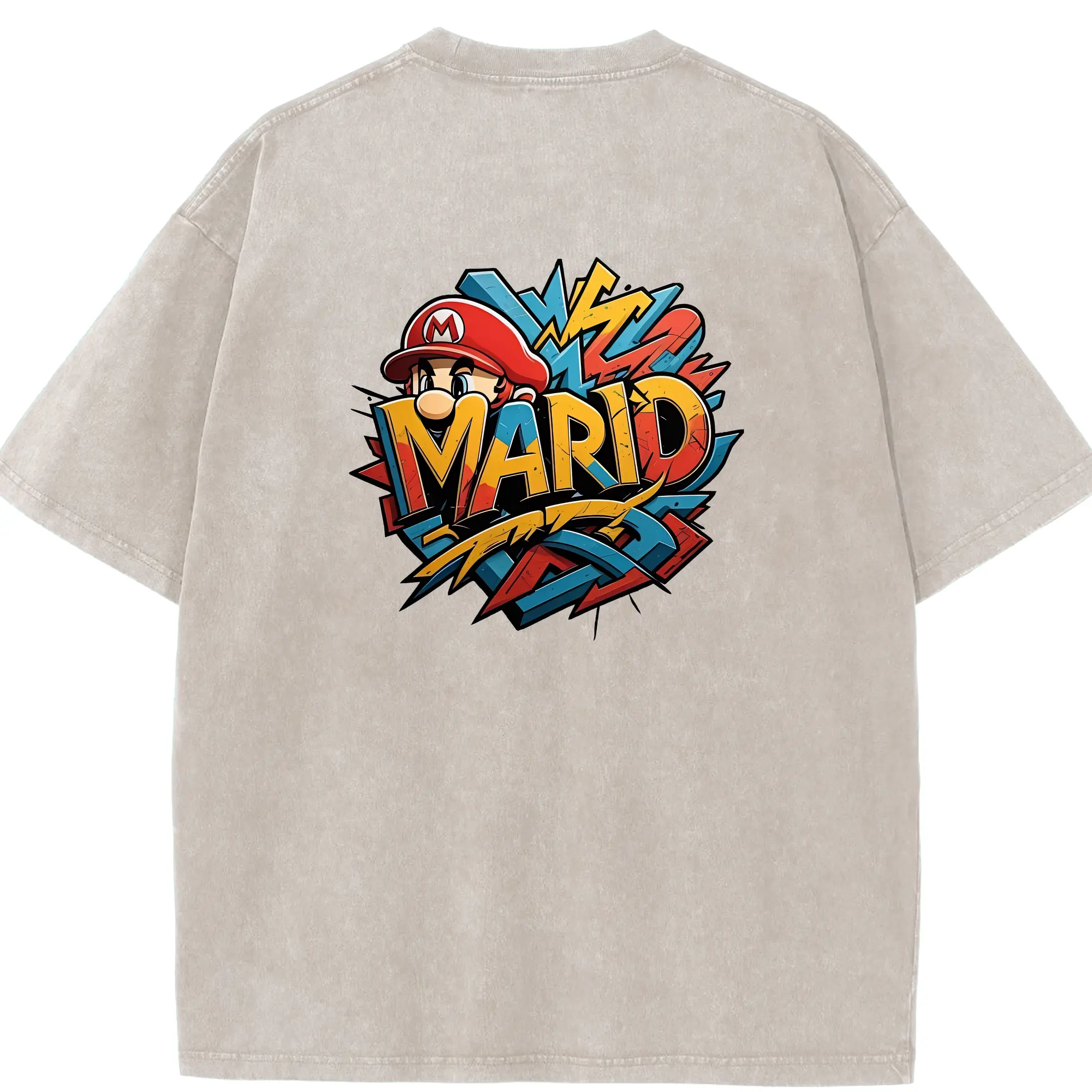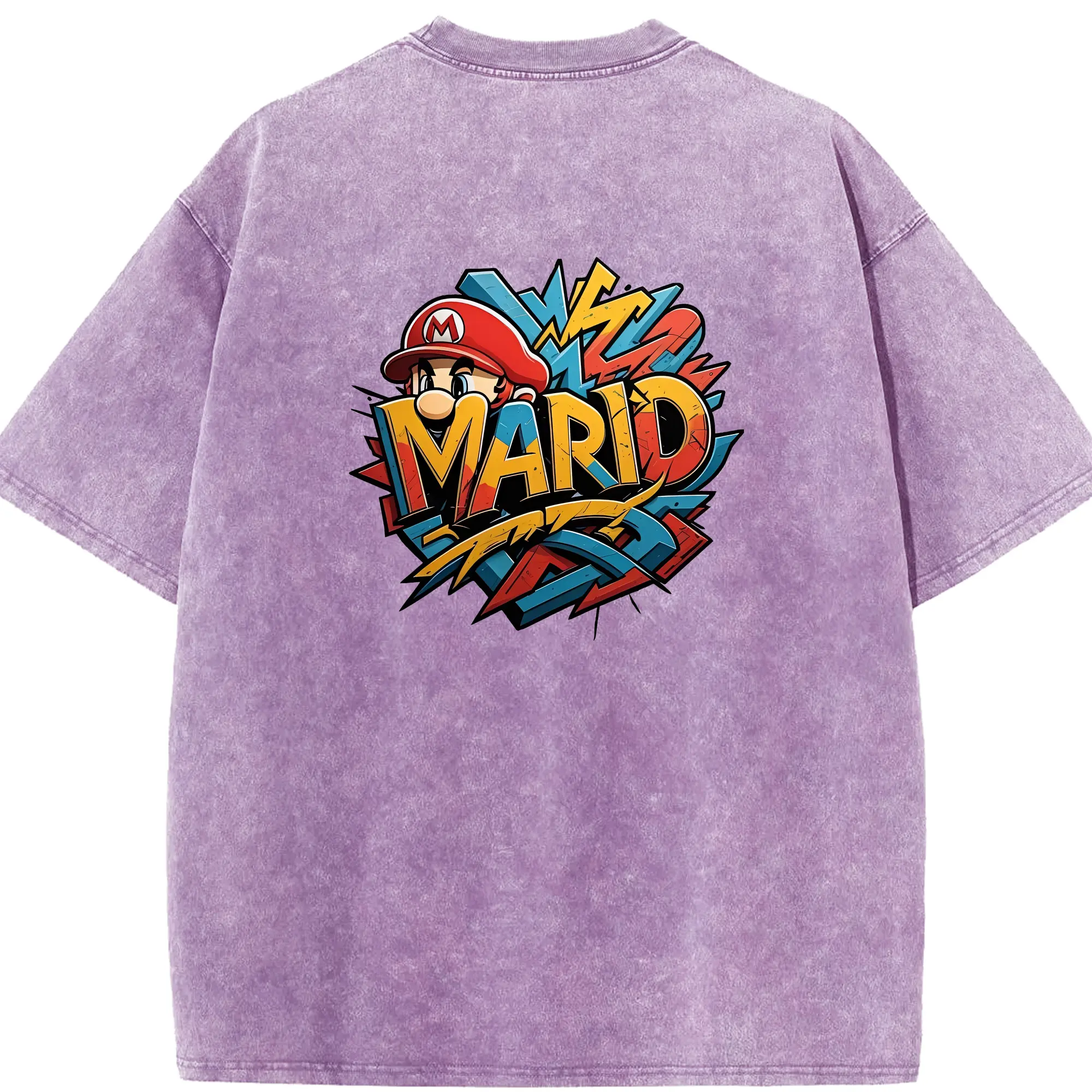 マリオ グッズ マリオ - 綿100% ヴィンテージ風 半袖Tシャツ ・ フロントプリント ・ 柔らか肌触り ・ 通気性 快適 ・ スポーツ カジュアル 外出用