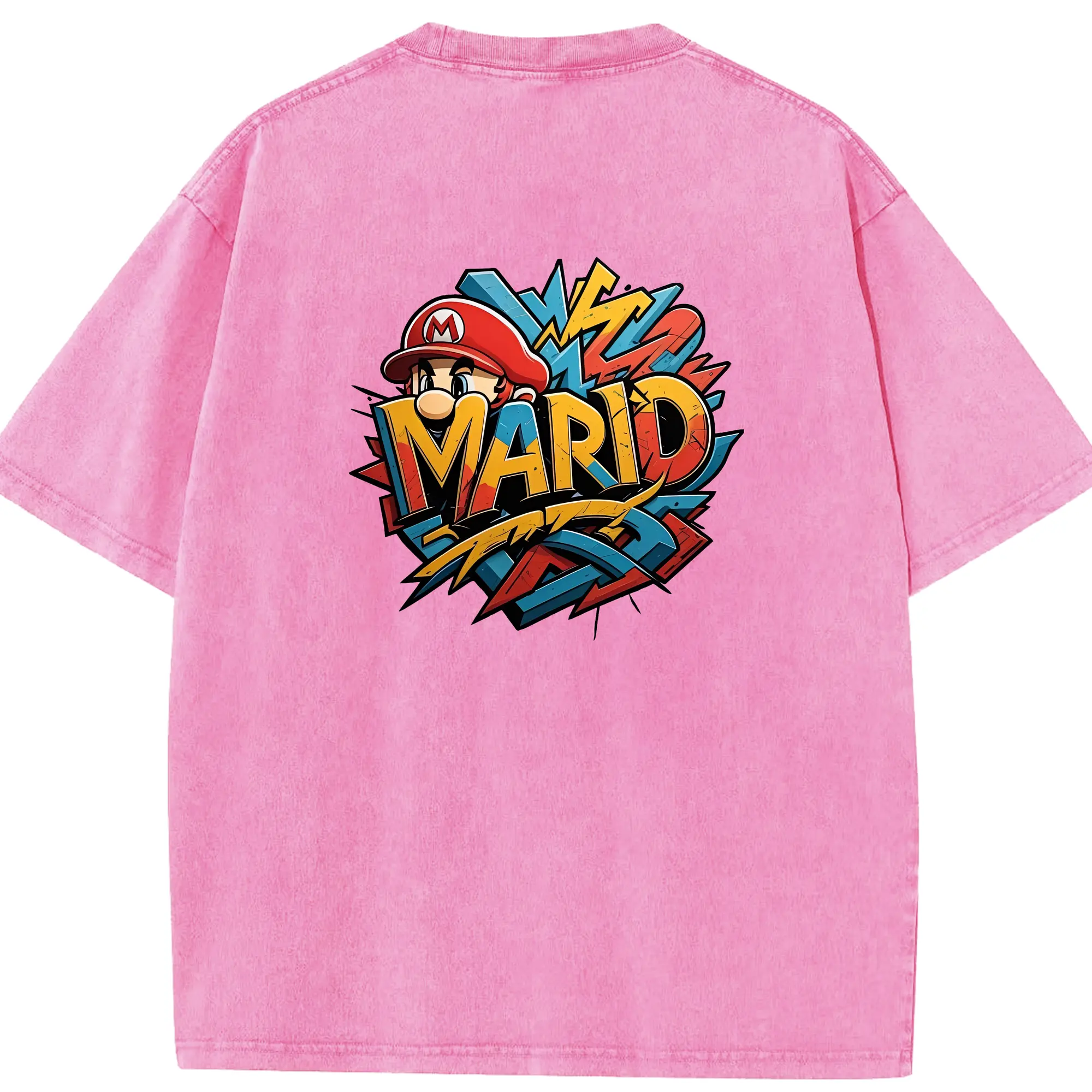 マリオ グッズ マリオ - 綿100% 半袖Tシャツ ・ バックプリント ・ 快適 通気性 ・ 日常使い 散歩 スポーツ用