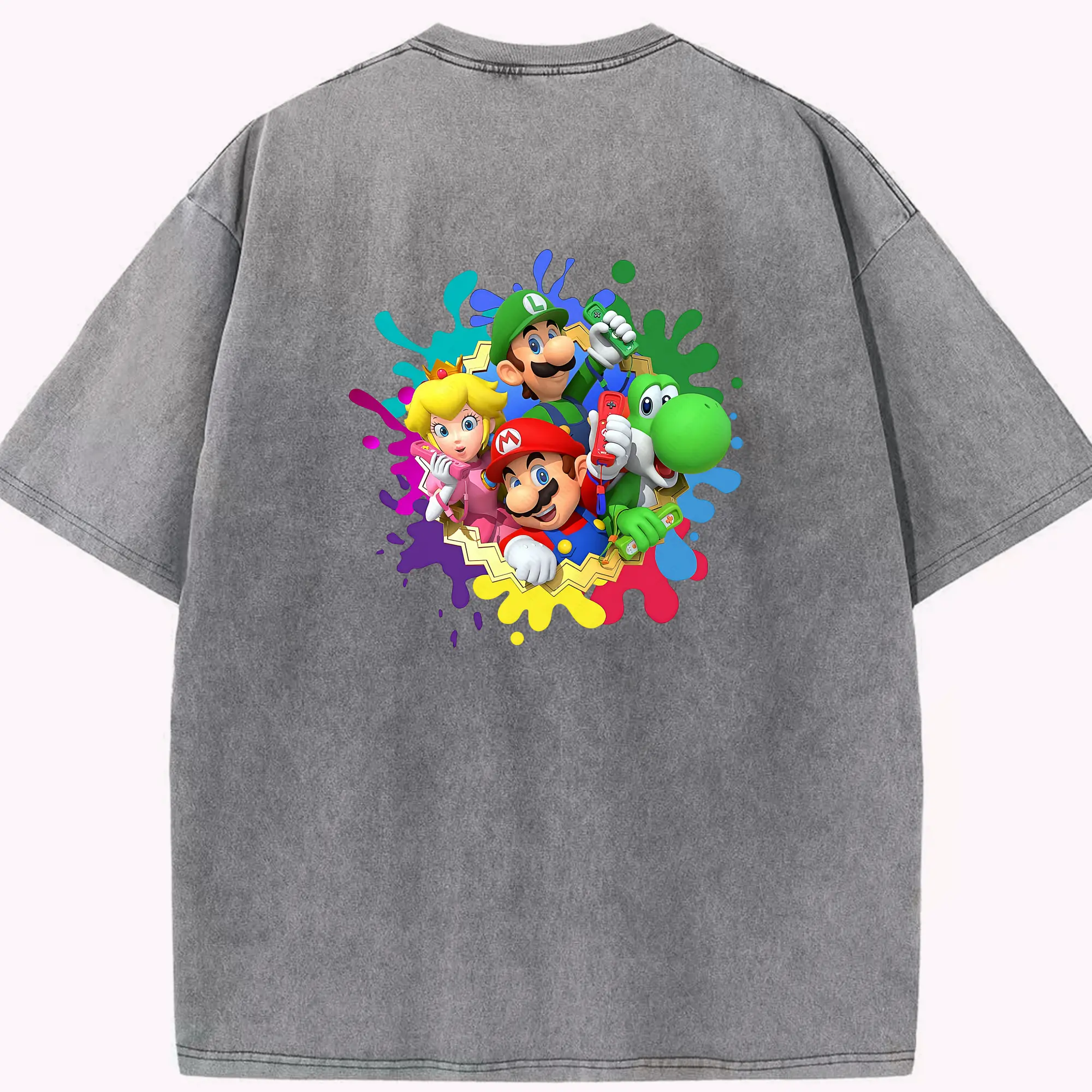マリオ グッズ マリオ - 綿100% 半袖Tシャツ ・ バックプリント ・ 快適 通気性 ・ 日常使い 散歩 スポーツ用