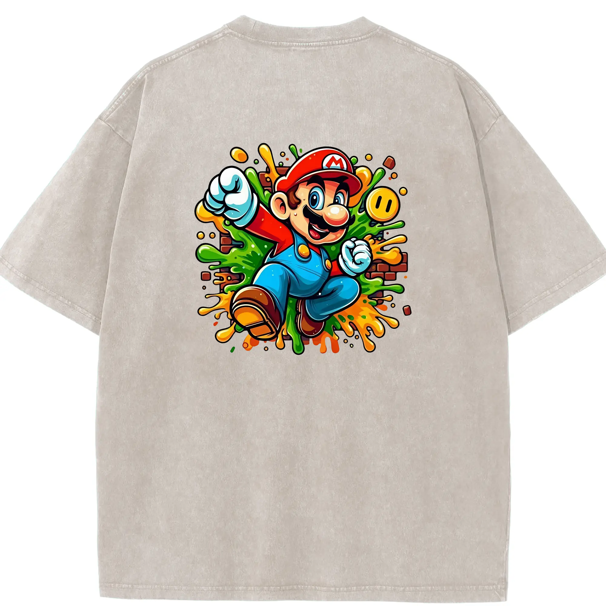 マリオ グッズ マリオ - 綿100% 半袖Tシャツ ・ バックプリント ・ 快適 通気性 ・ 日常使い 散歩 スポーツ用