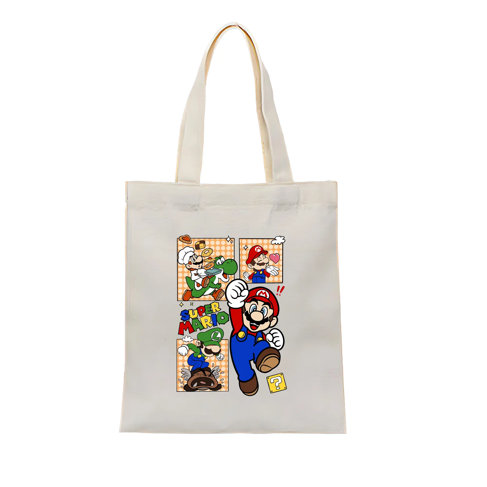 マリオ グッズ マリオ - 縦型キャンバス手提げバッグ(トートバッグ) ・ キャンバス素材 ・ ショッピング用 ・ 軽量 丈夫 お手入れ簡単
