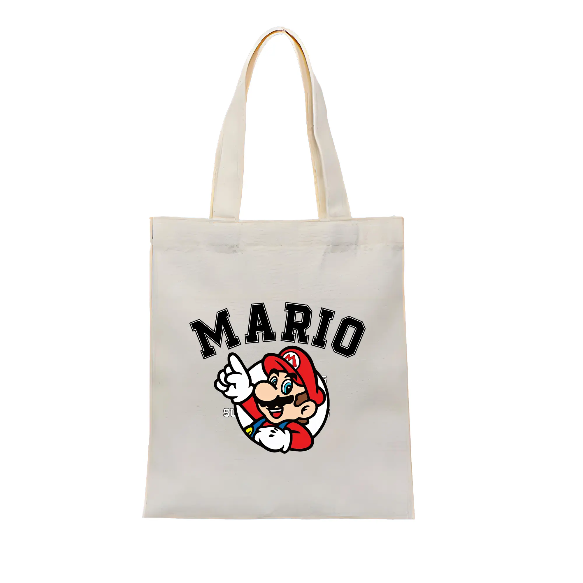 マリオ グッズ マリオ - 縦型キャンバス手提げバッグ(トートバッグ) ・ キャンバス素材 ・ ショッピング用 ・ 軽量 丈夫 お手入れ簡単