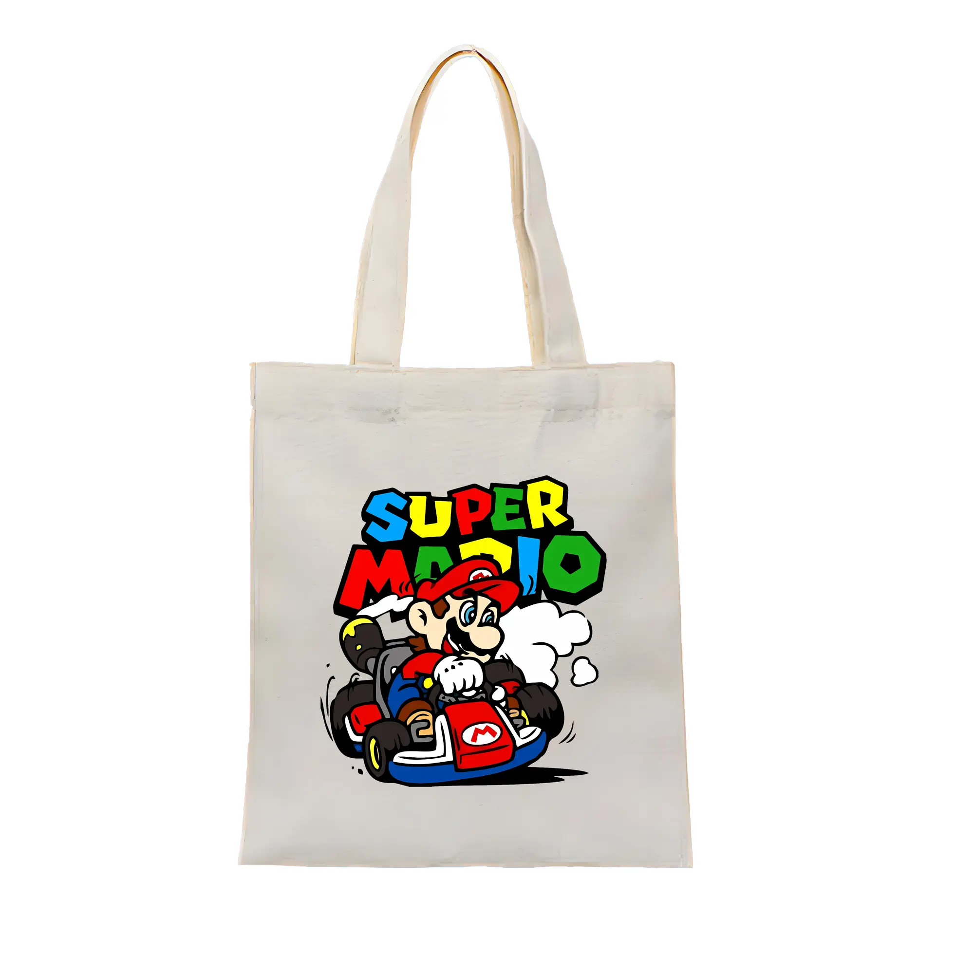 マリオ グッズ マリオ - 縦型キャンバス手提げバッグ(トートバッグ) ・ キャンバス素材 ・ ショッピング用 ・ 軽量 丈夫 お手入れ簡単