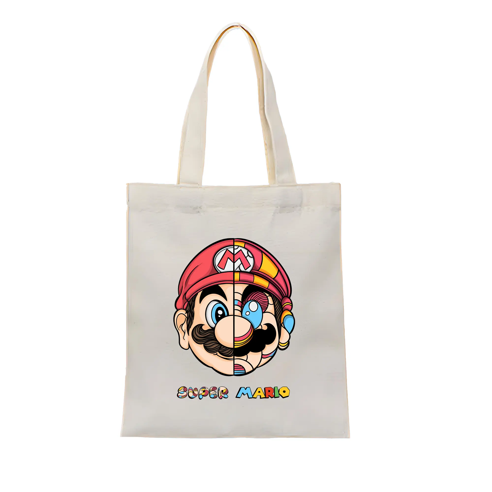 マリオ グッズ マリオ - 縦型キャンバス手提げバッグ(トートバッグ) ・ キャンバス素材 ・ ショッピング用 ・ 軽量 丈夫 お手入れ簡単