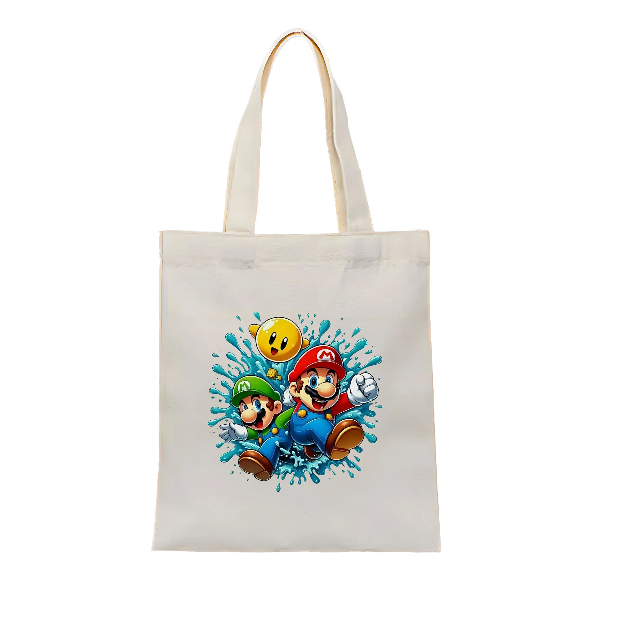 マリオ グッズ マリオ - 縦型キャンバス手提げバッグ(トートバッグ) ・ キャンバス素材 ・ ショッピング用 ・ 軽量 丈夫 お手入れ簡単