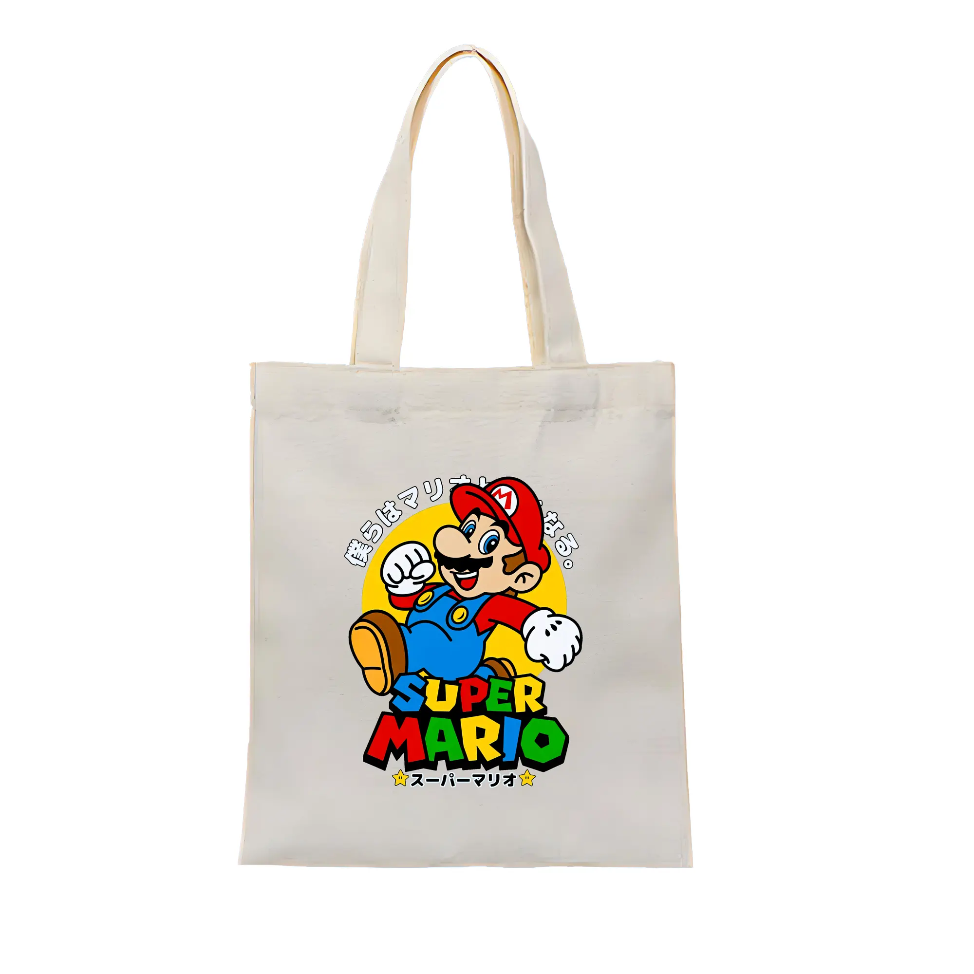 マリオ グッズ マリオ - 縦型キャンバス手提げバッグ(トートバッグ) ・ キャンバス素材 ・ ショッピング用 ・ 軽量 丈夫 お手入れ簡単
