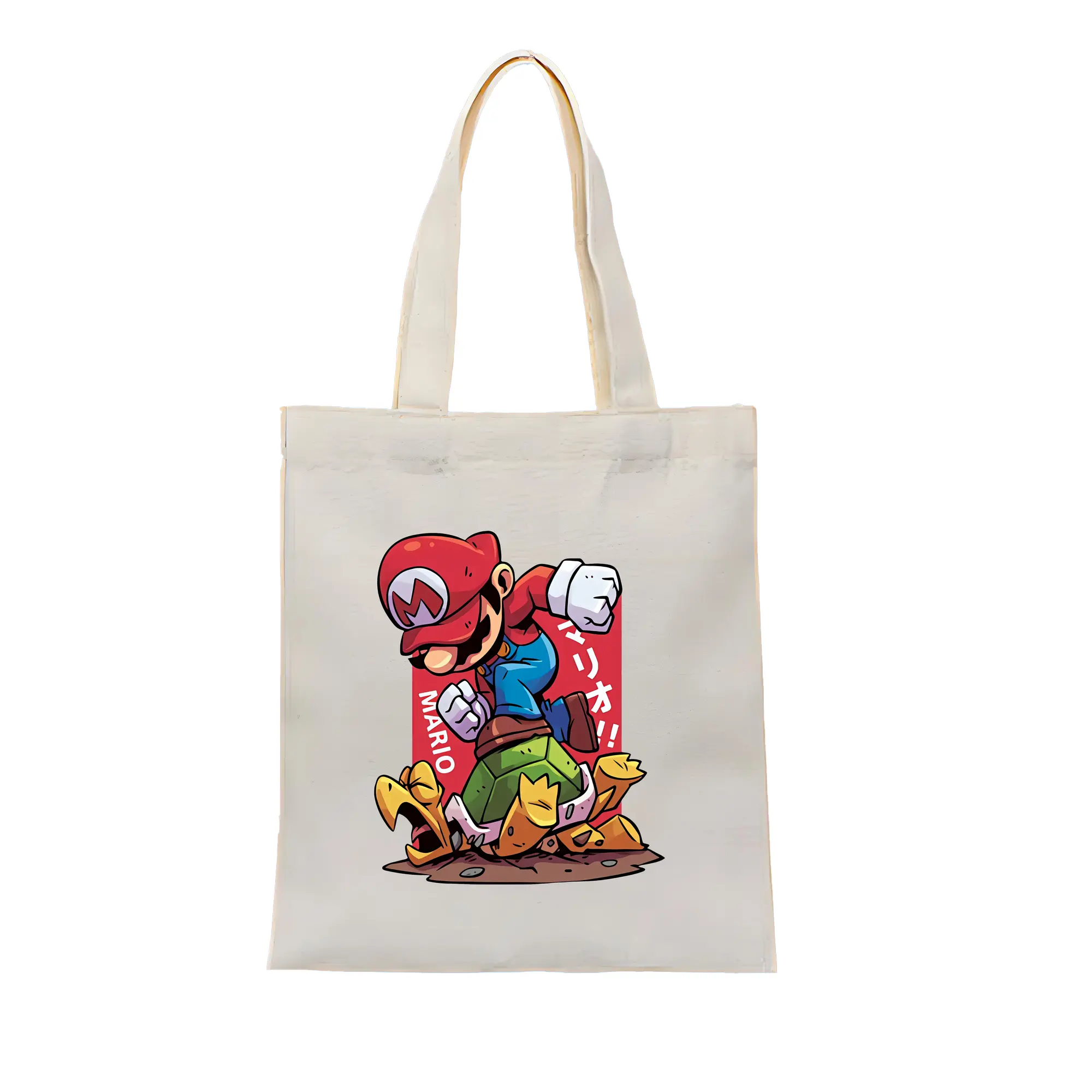 マリオ グッズ マリオ - 縦型キャンバス手提げバッグ(トートバッグ) ・ キャンバス素材 ・ ショッピング用 ・ 軽量 丈夫 お手入れ簡単