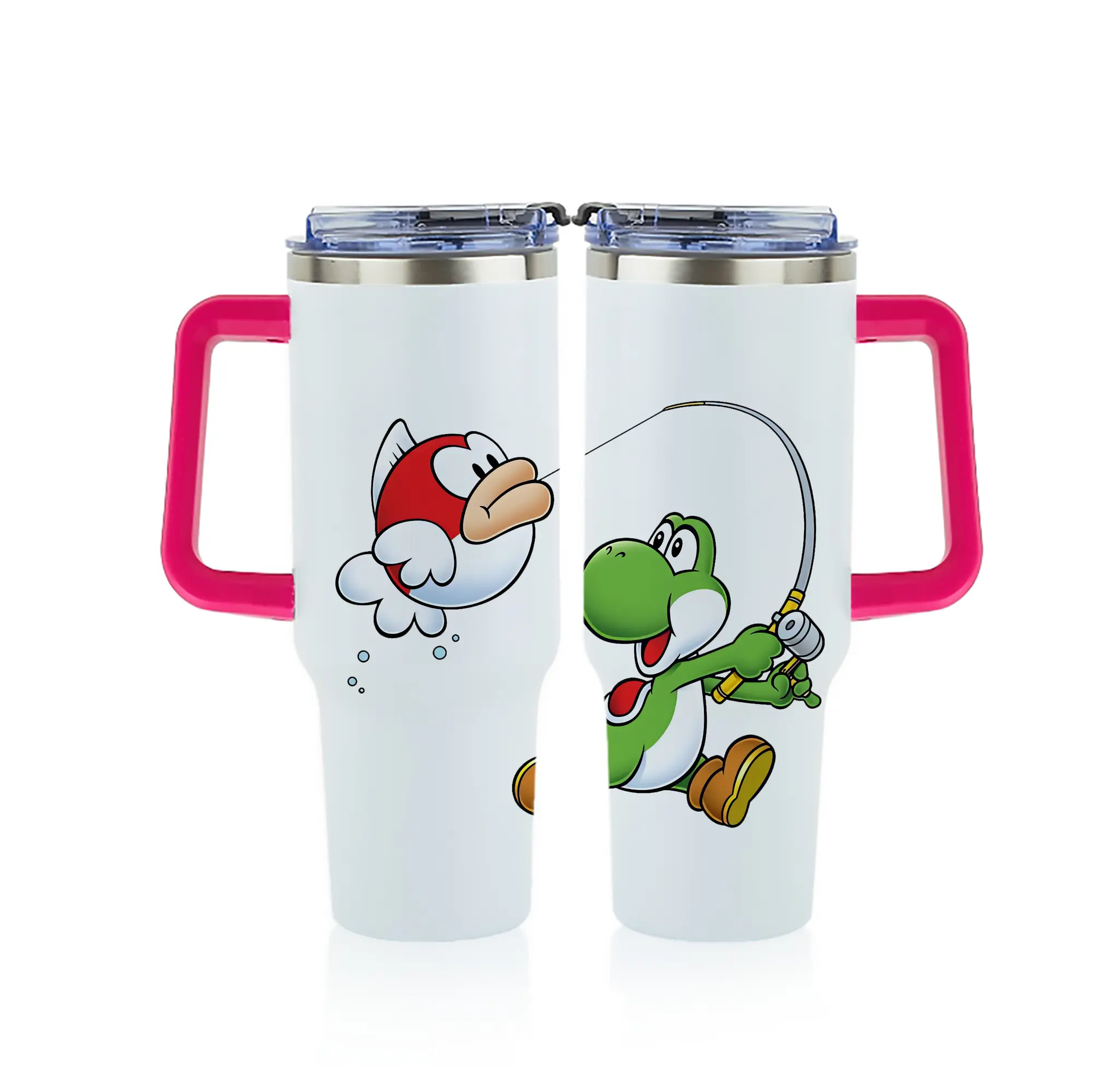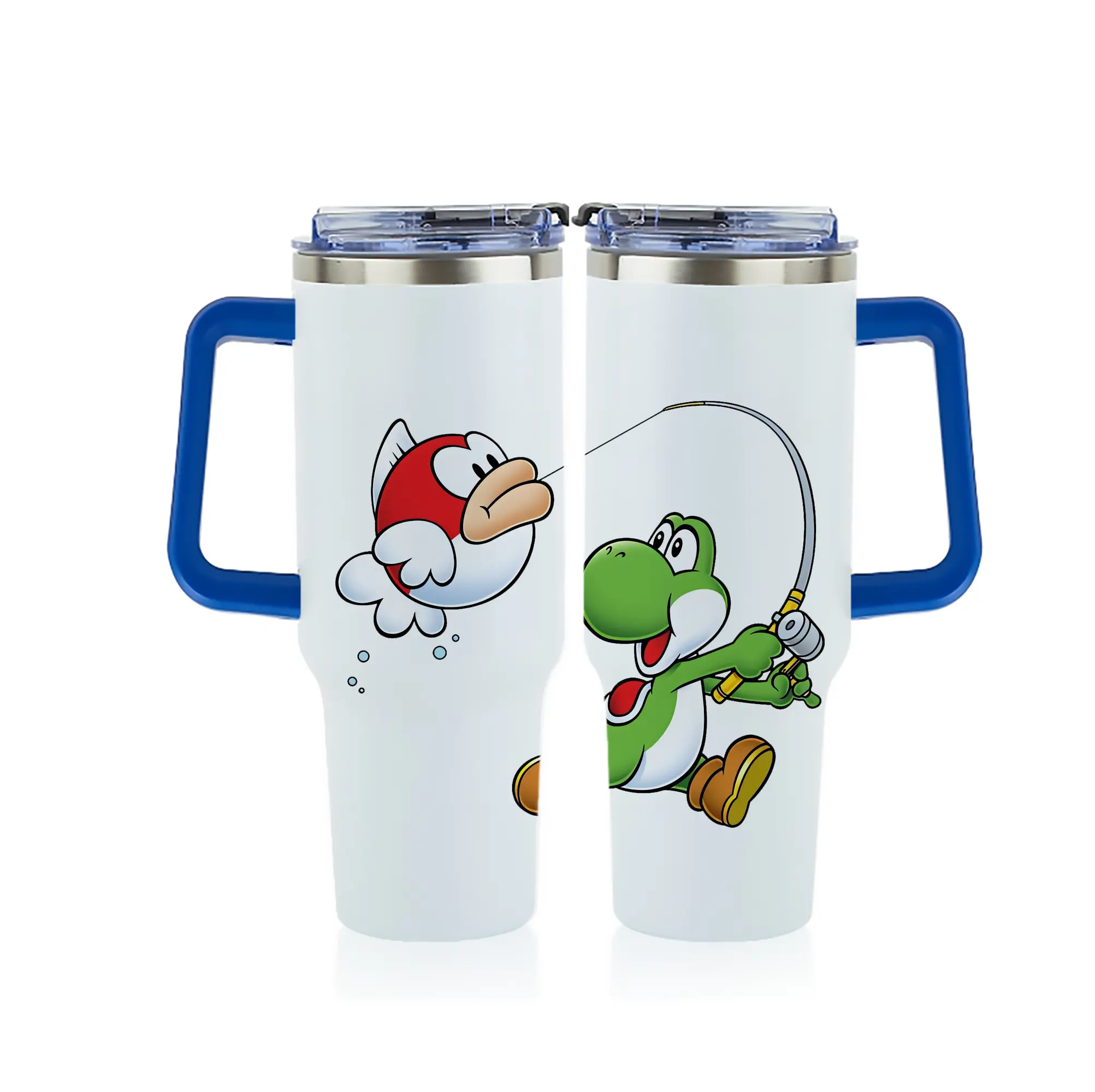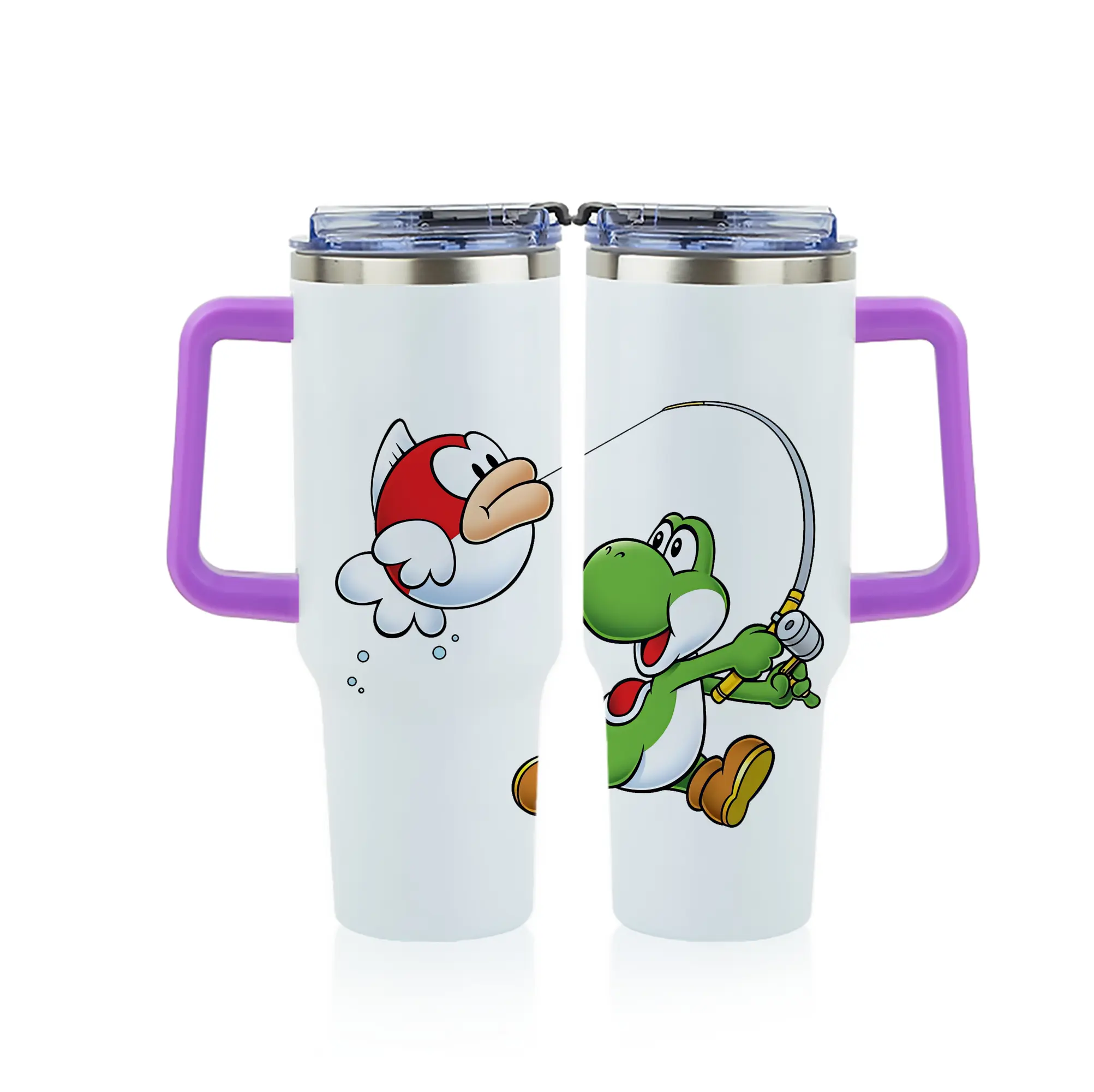 マリオ グッズ ヨッシー - 1200mL フルプリント車用タンブラー ・ 304ステンレス 内側 ・ 201ステンレス 外側 ・ 保温 保冷 ・ 通勤 ドライブ アウトドア用