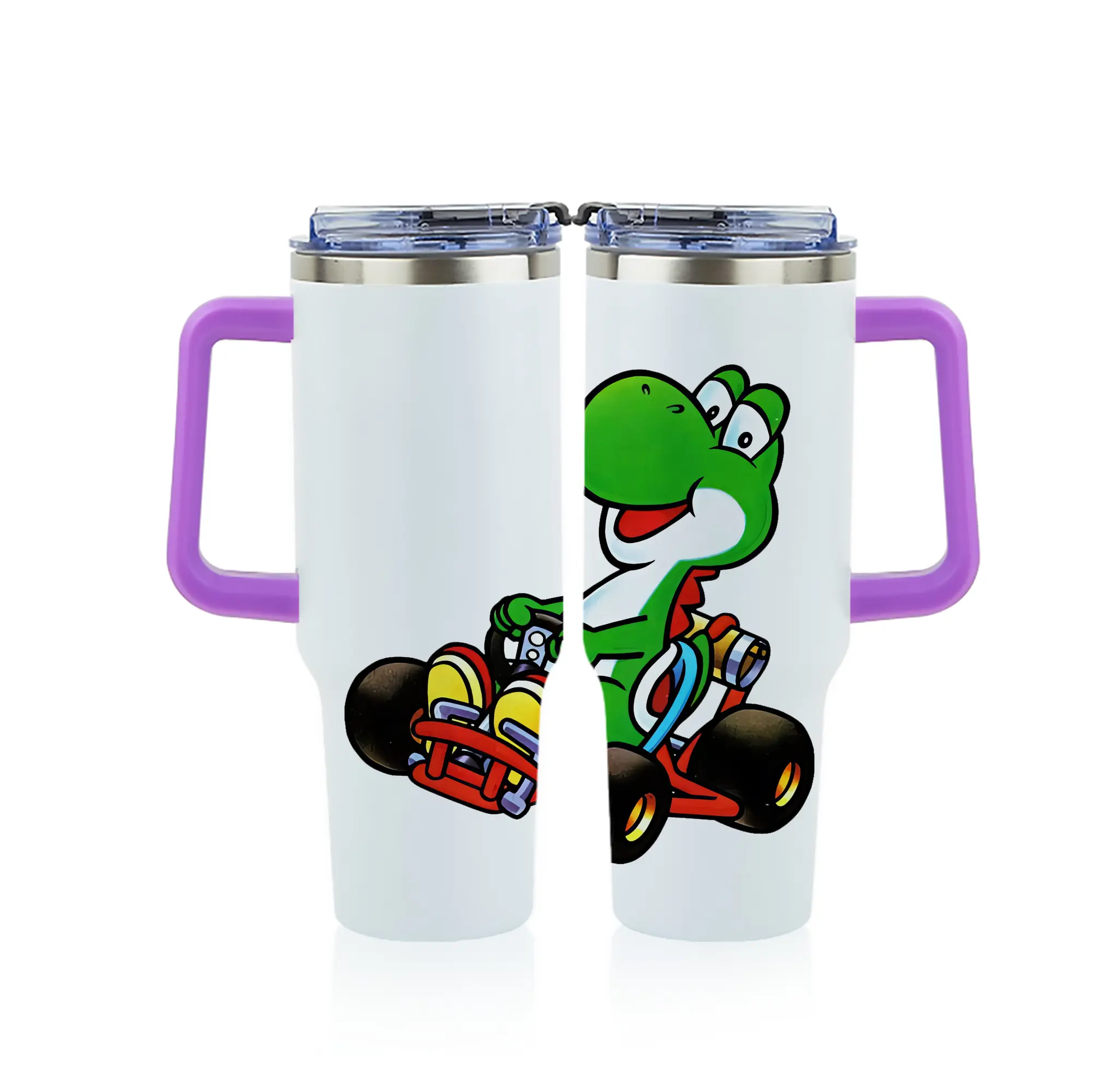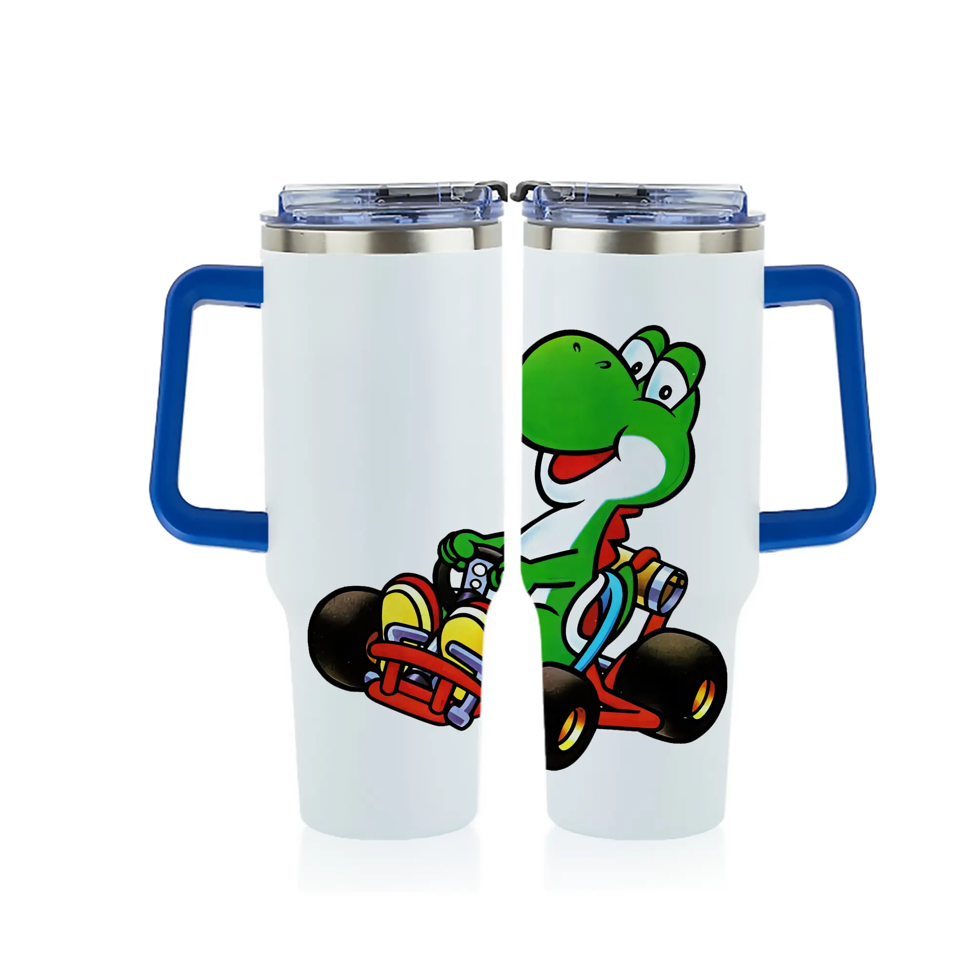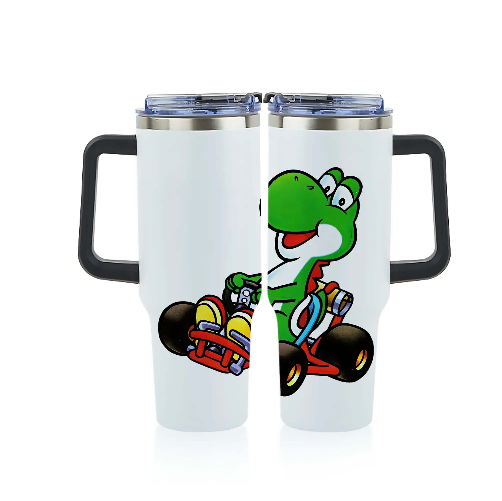 マリオ グッズ ヨッシー - 1200mL フルプリント車用タンブラー ・ 304ステンレス 内側 ・ 201ステンレス 外側 ・ 保温 保冷 ・ 通勤 ドライブ アウトドア用