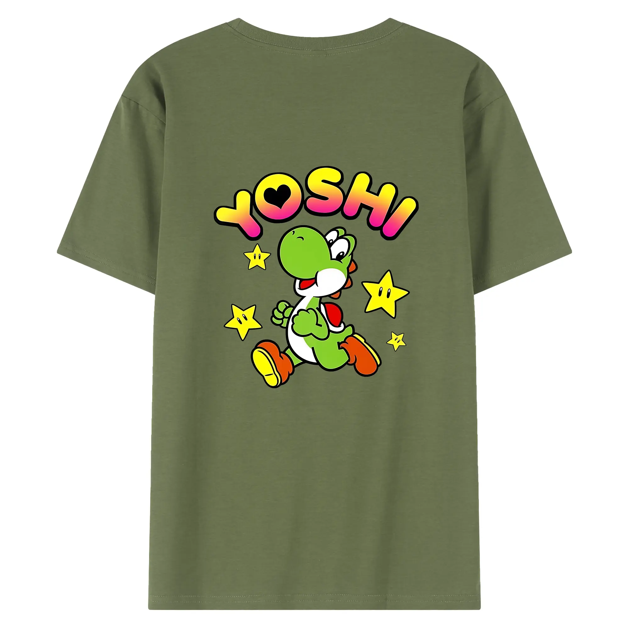 マリオ グッズ ヨッシー - 綿100% ヴィンテージ風 半袖Tシャツ ・ 背面プリント ・ 柔らか肌触り ・ 通気性 快適 ・ スポーツ カジュアル 外出用