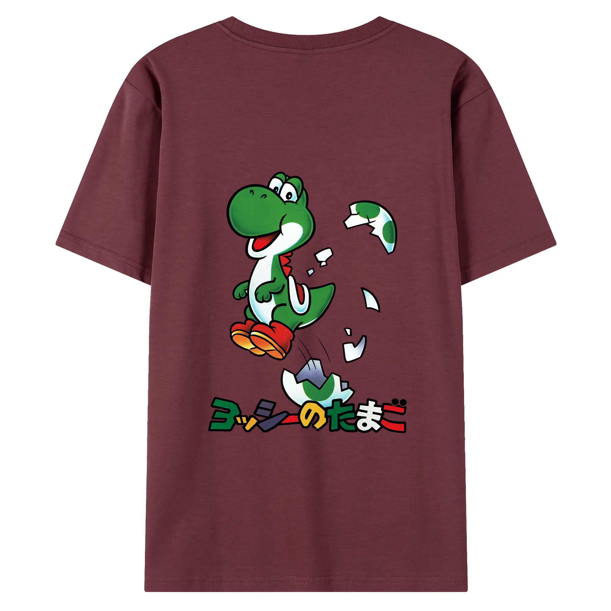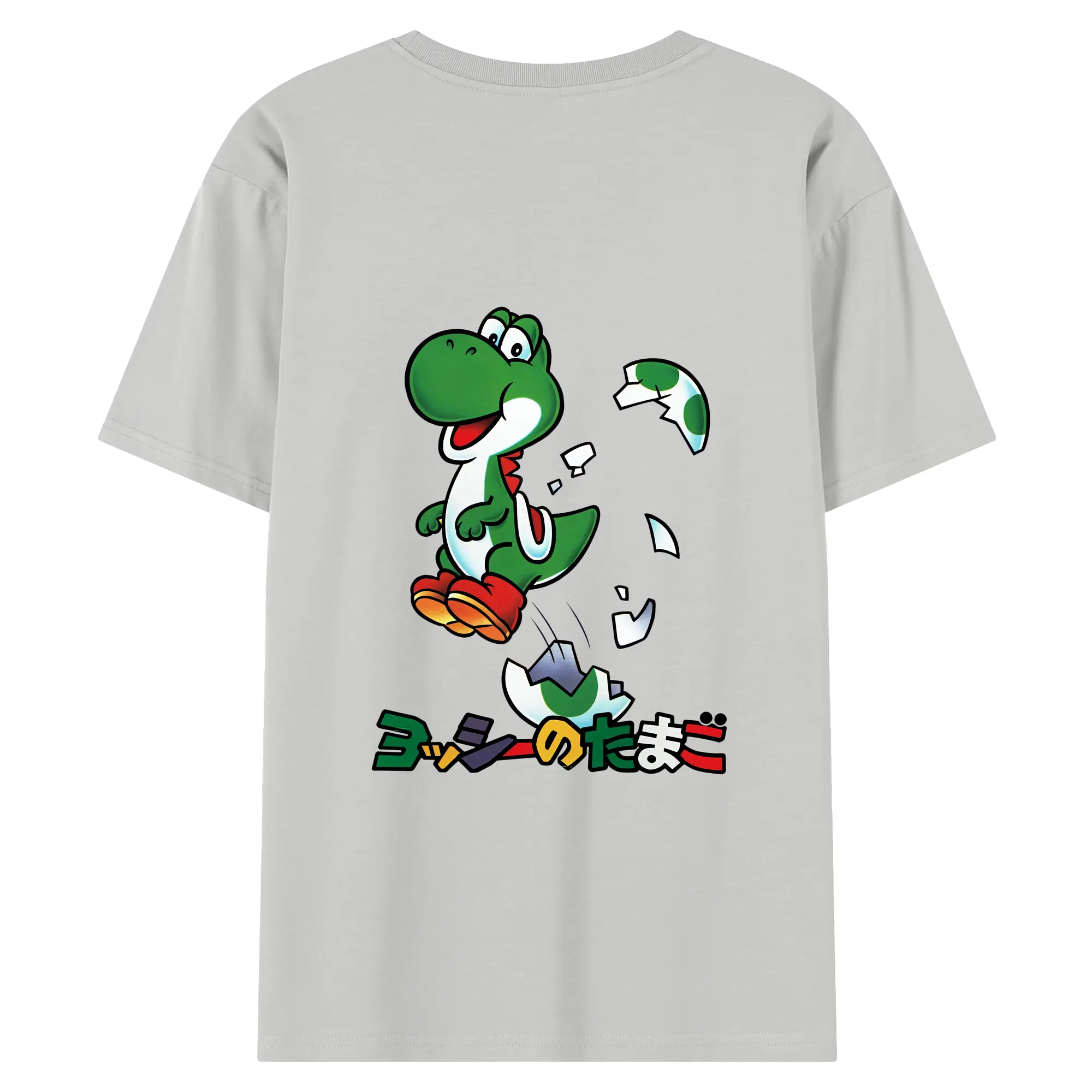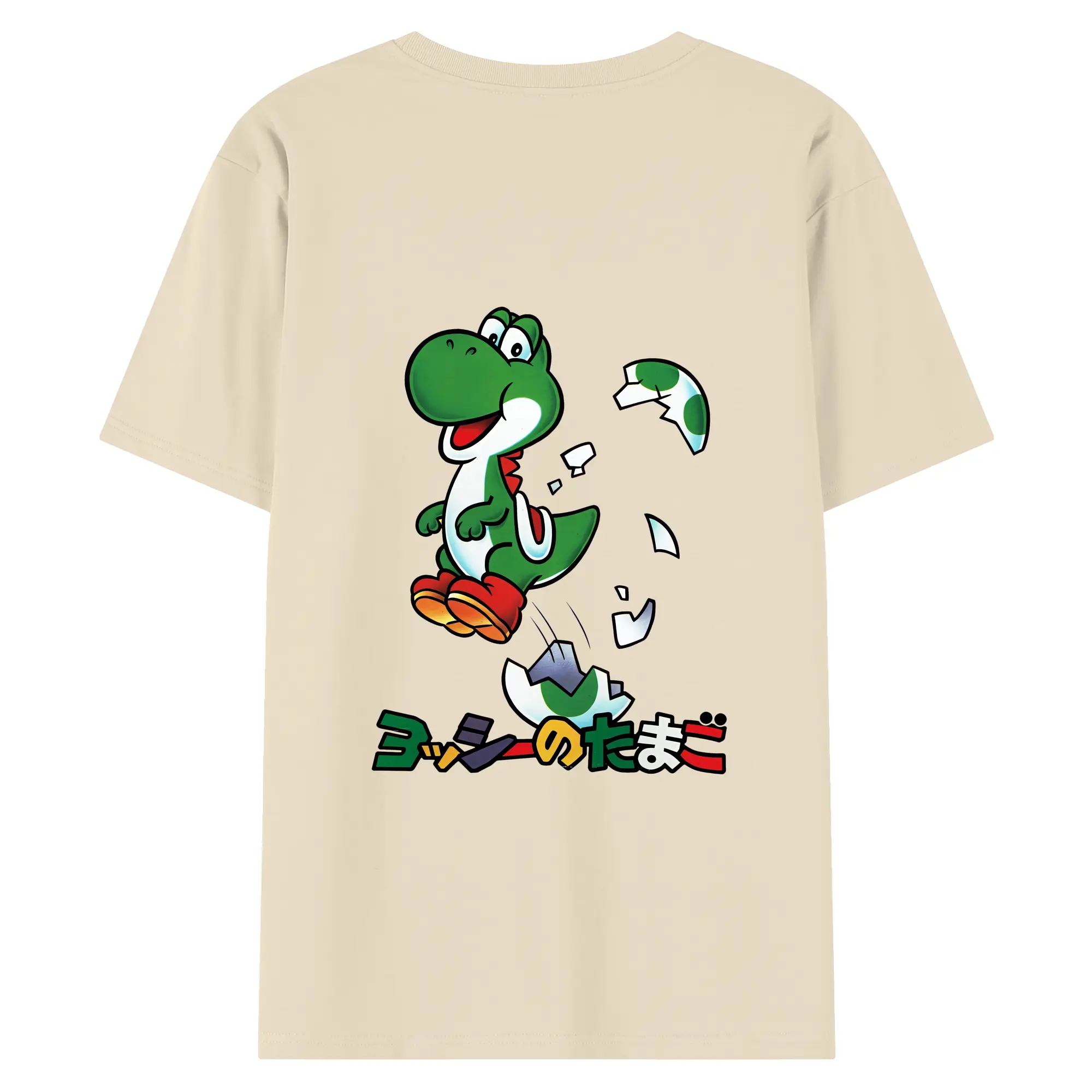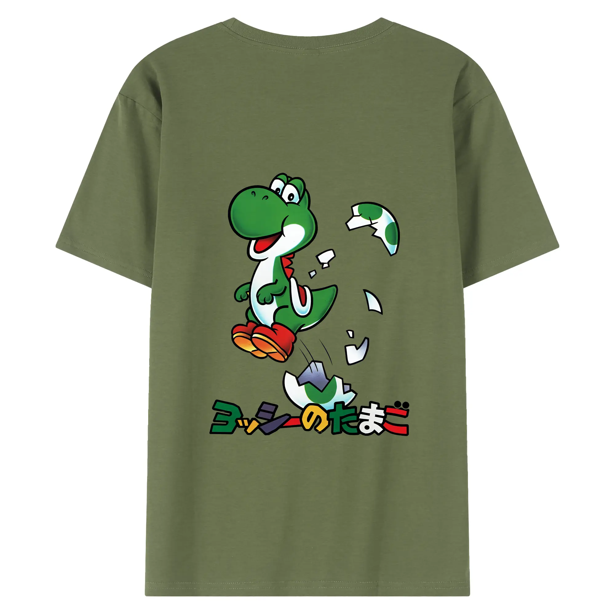 マリオ グッズ ヨッシー - 綿100% ヴィンテージ風 半袖Tシャツ ・ 背面プリント ・ 柔らか肌触り ・ 通気性 快適 ・ スポーツ カジュアル 外出用