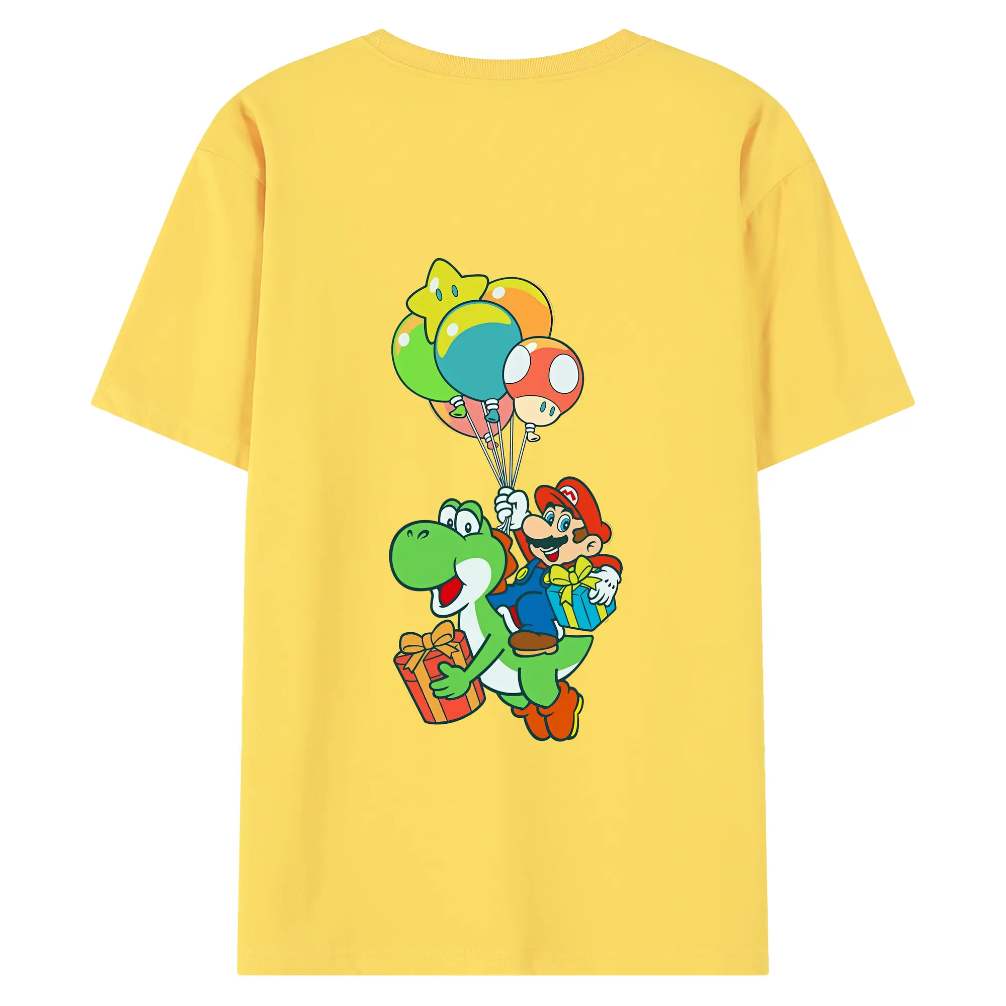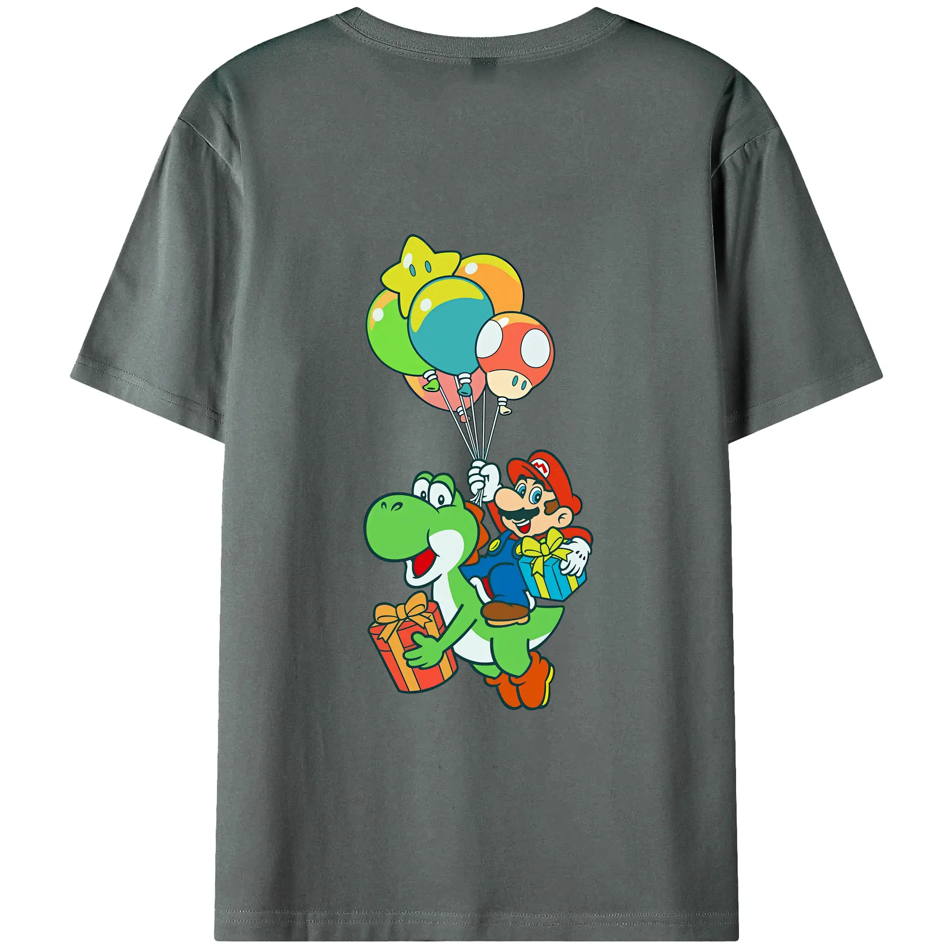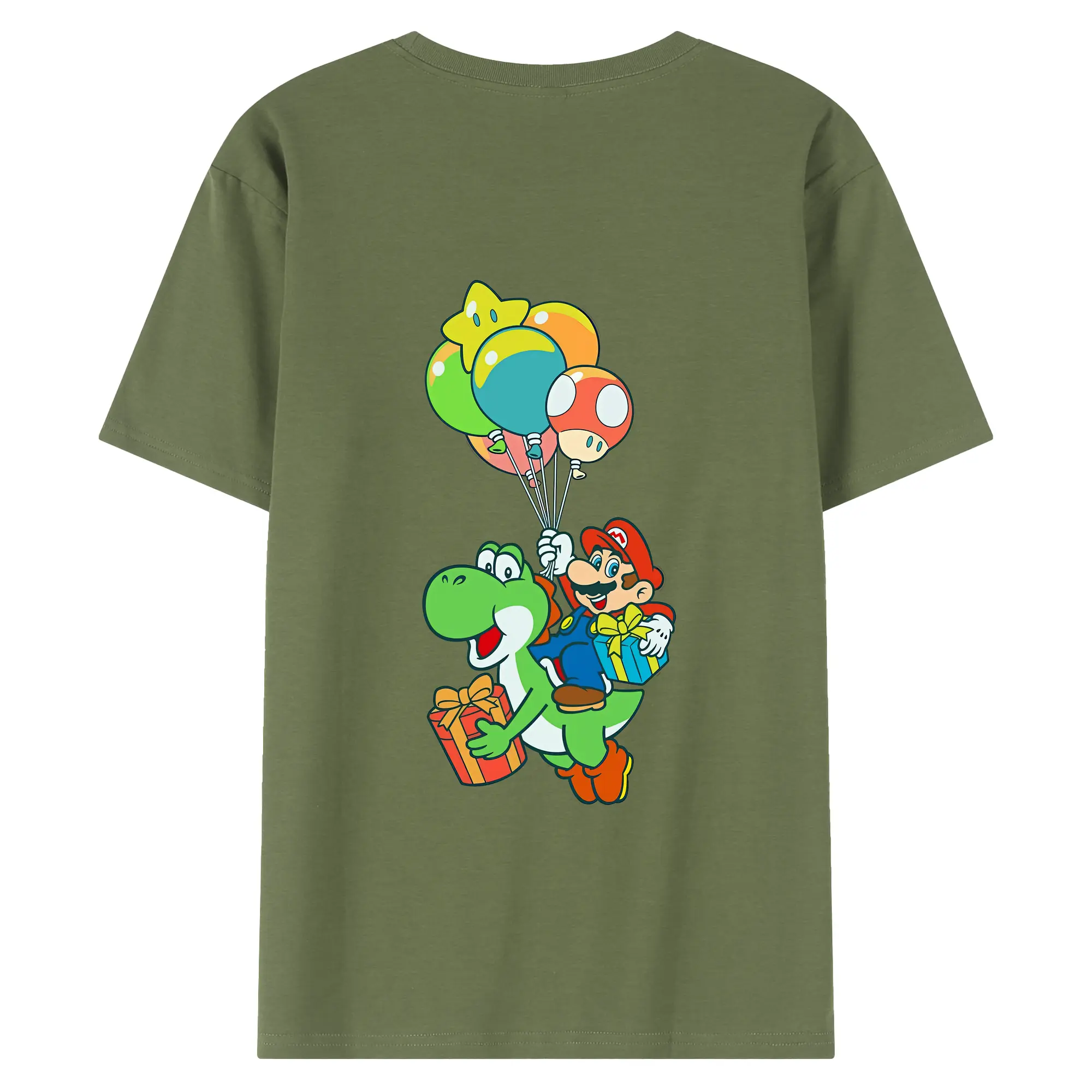 マリオ グッズ ヨッシー - 綿100% ヴィンテージ風 半袖Tシャツ ・ 背面プリント ・ 柔らか肌触り ・ 通気性 快適 ・ スポーツ カジュアル 外出用
