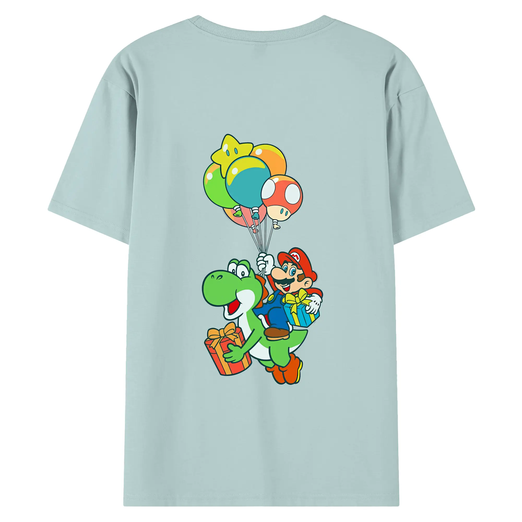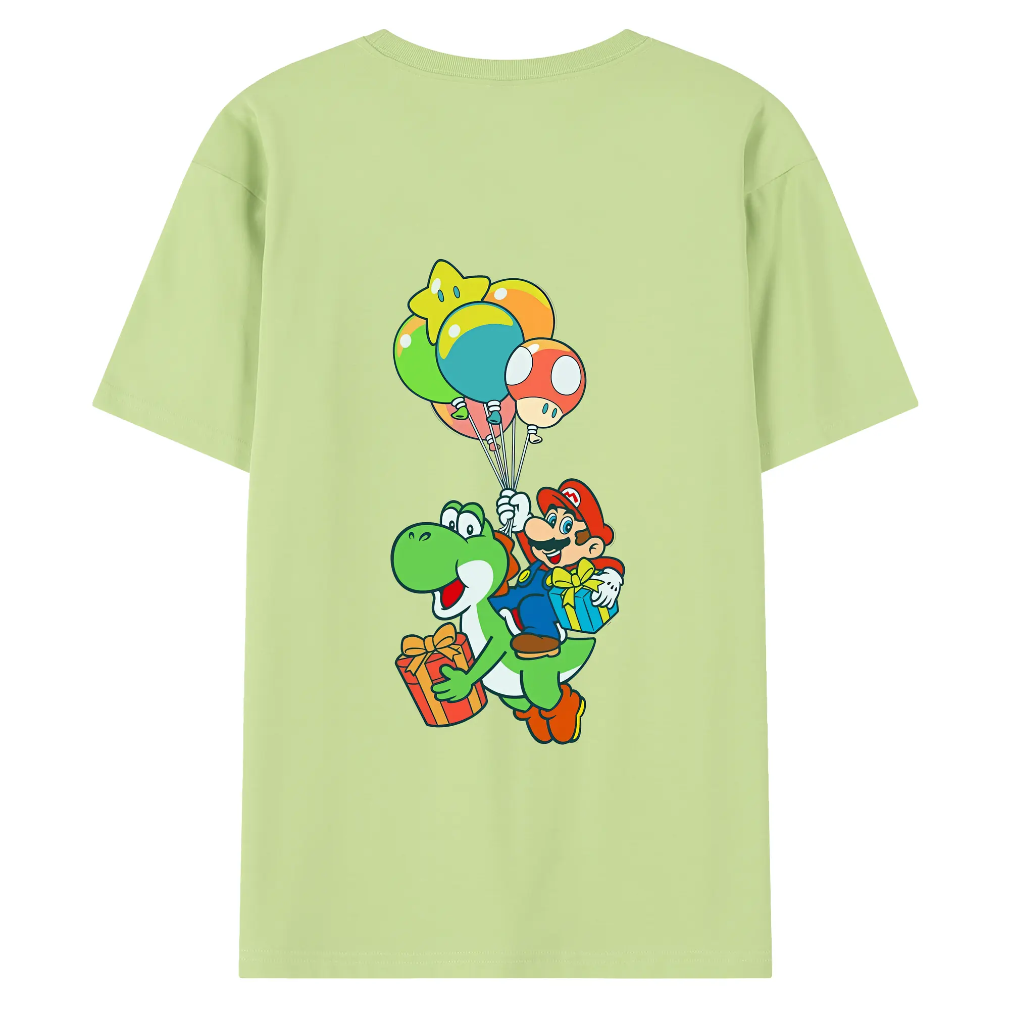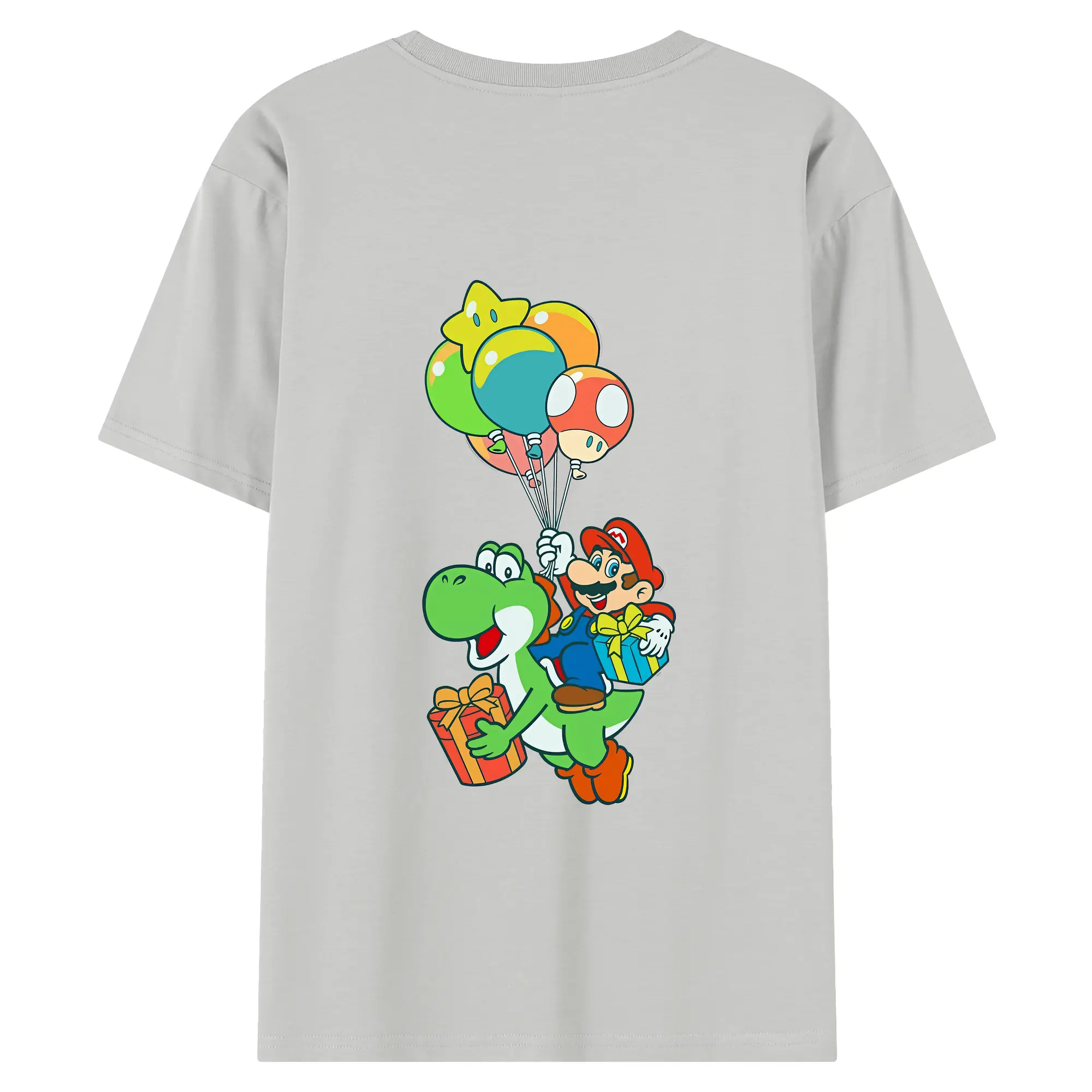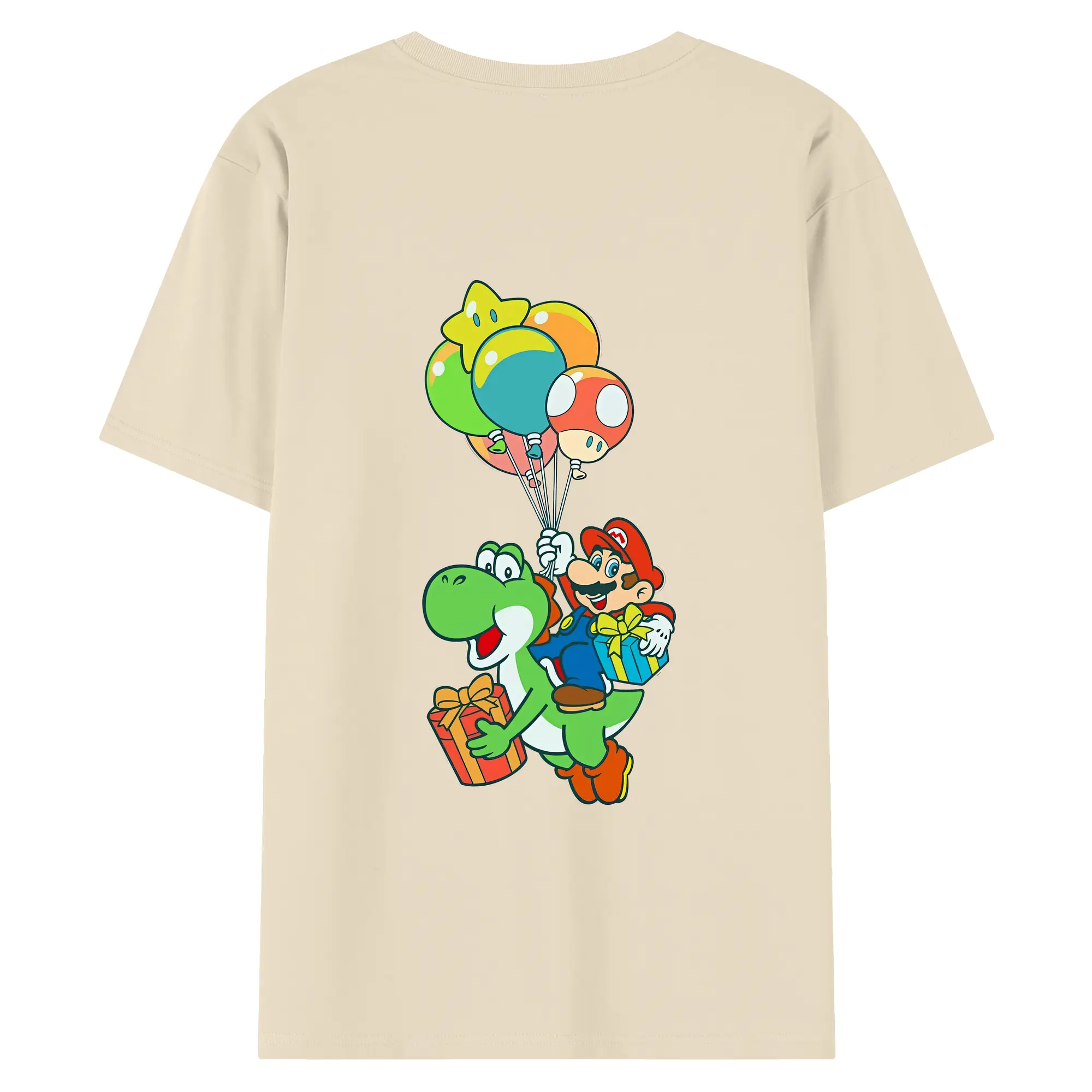 マリオ グッズ ヨッシー - 綿100% ヴィンテージ風 半袖Tシャツ ・ 背面プリント ・ 柔らか肌触り ・ 通気性 快適 ・ スポーツ カジュアル 外出用