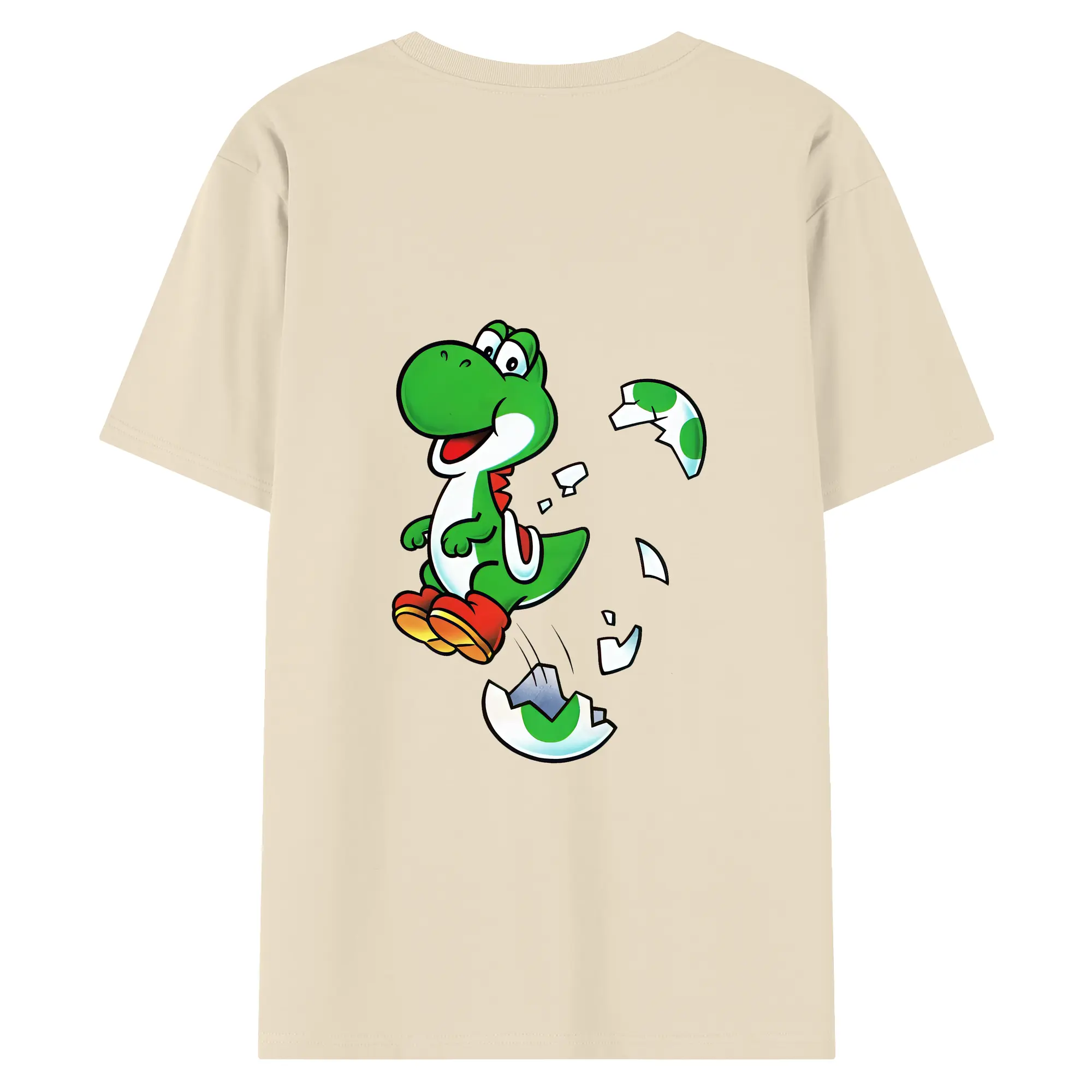 マリオ グッズ ヨッシー - 綿100% ヴィンテージ風 半袖Tシャツ ・ 背面プリント ・ 柔らか肌触り ・ 通気性 快適 ・ スポーツ カジュアル 外出用