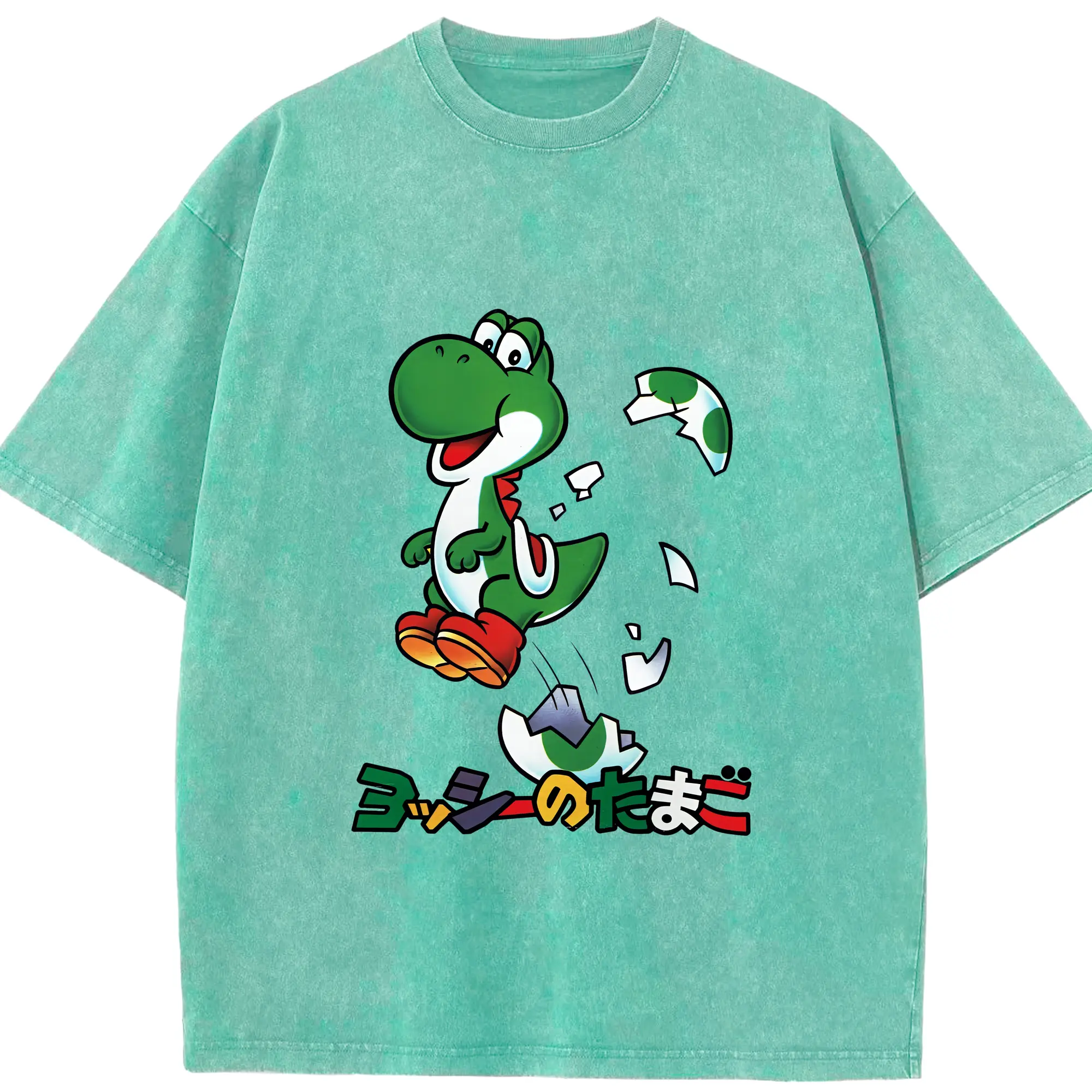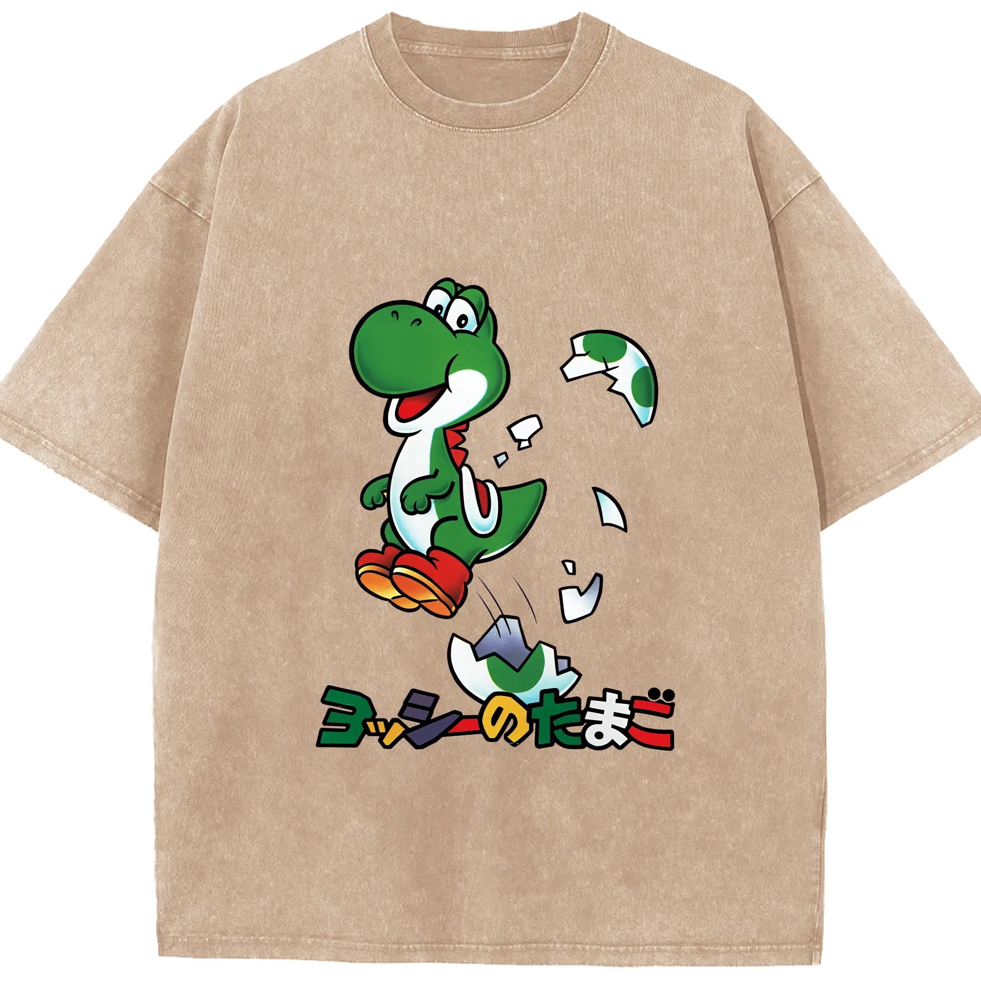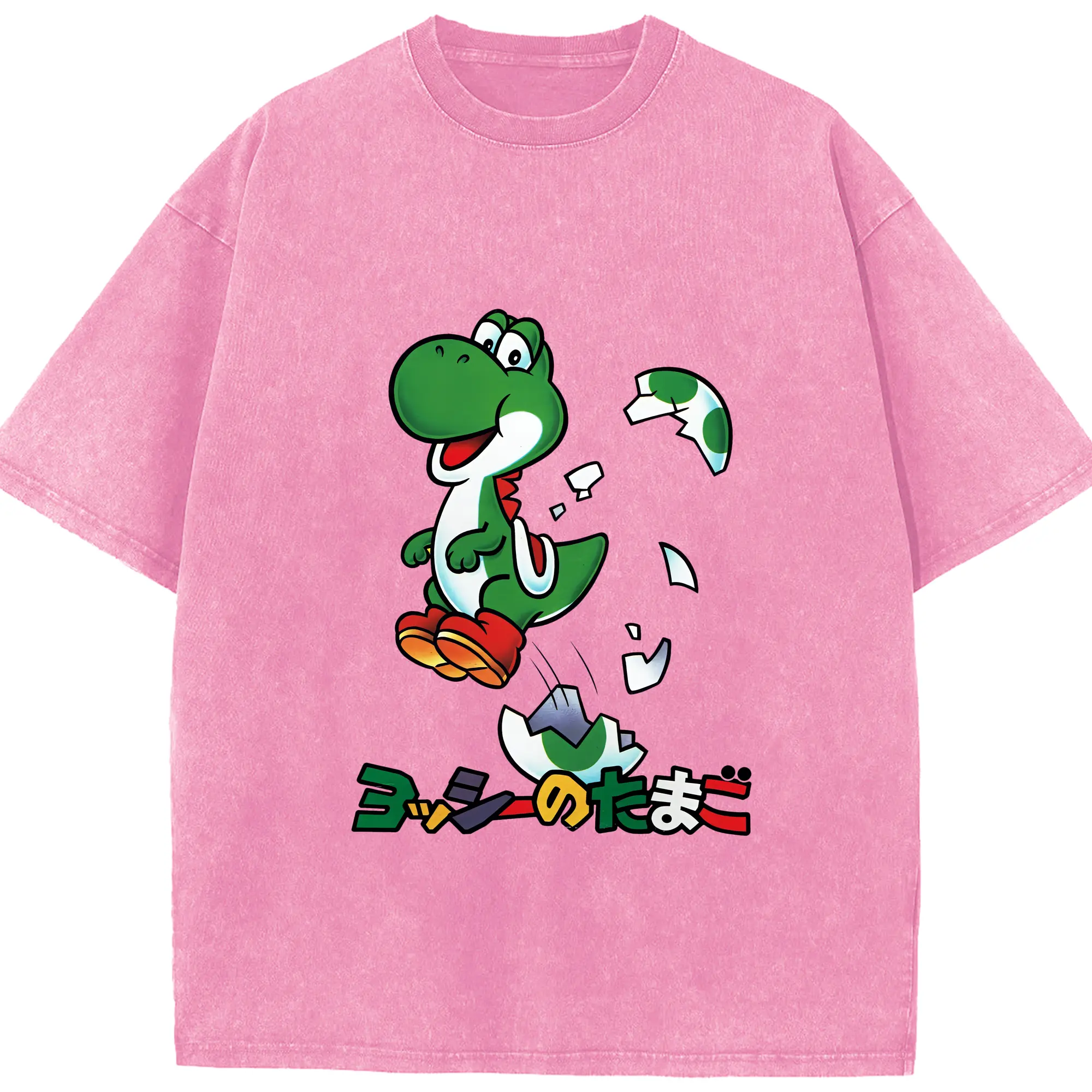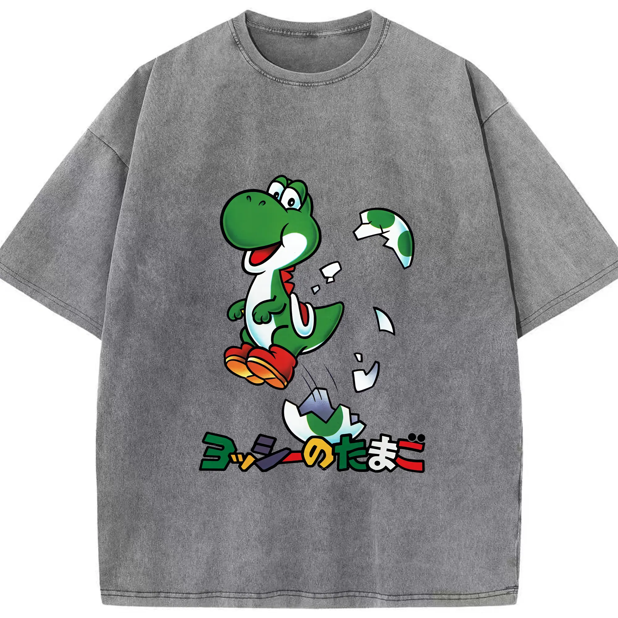 マリオ グッズ ヨッシー - 綿100% ヴィンテージ風 半袖Tシャツ ・ 背面プリント ・ 柔らか肌触り ・ 通気性 快適 ・ スポーツ カジュアル 外出用
