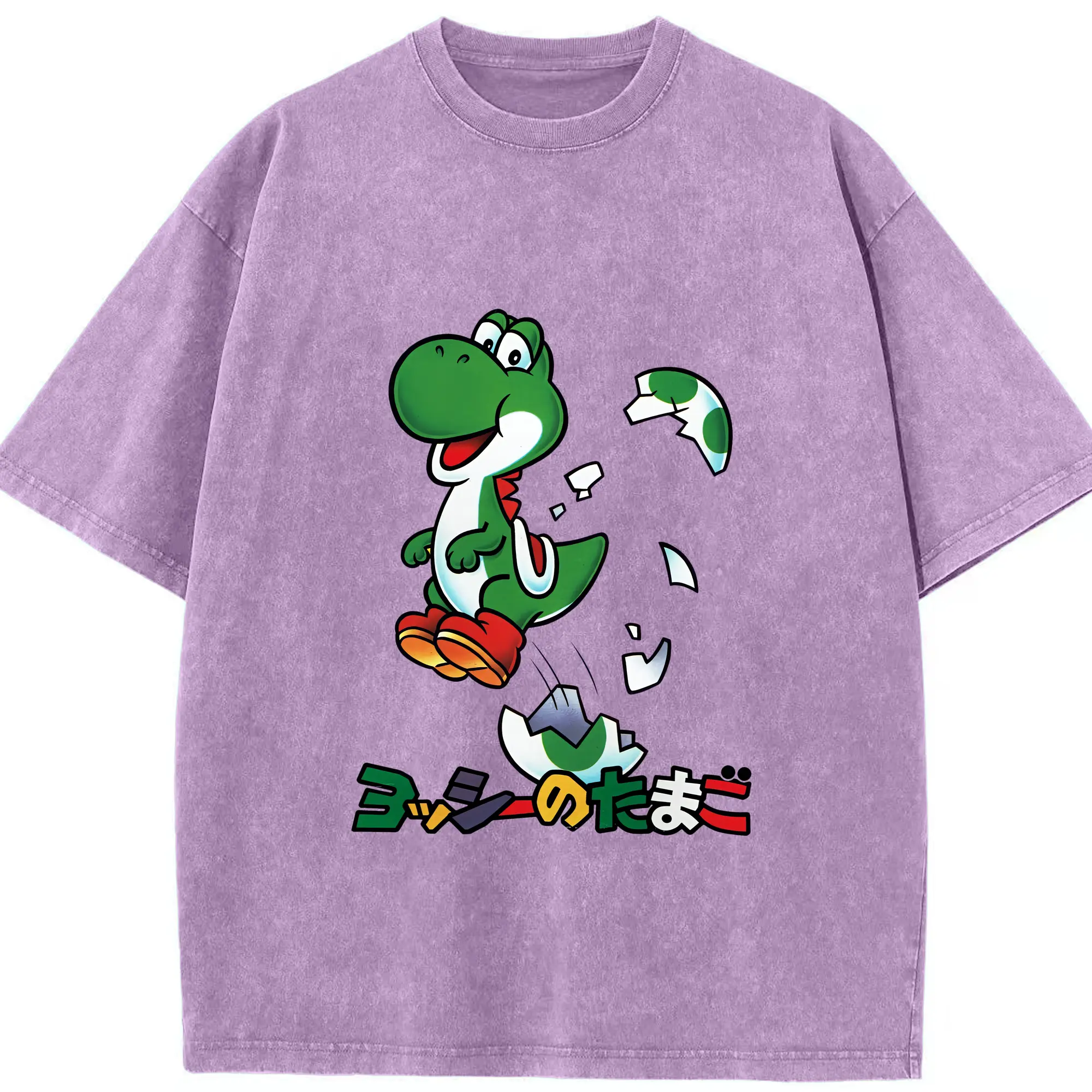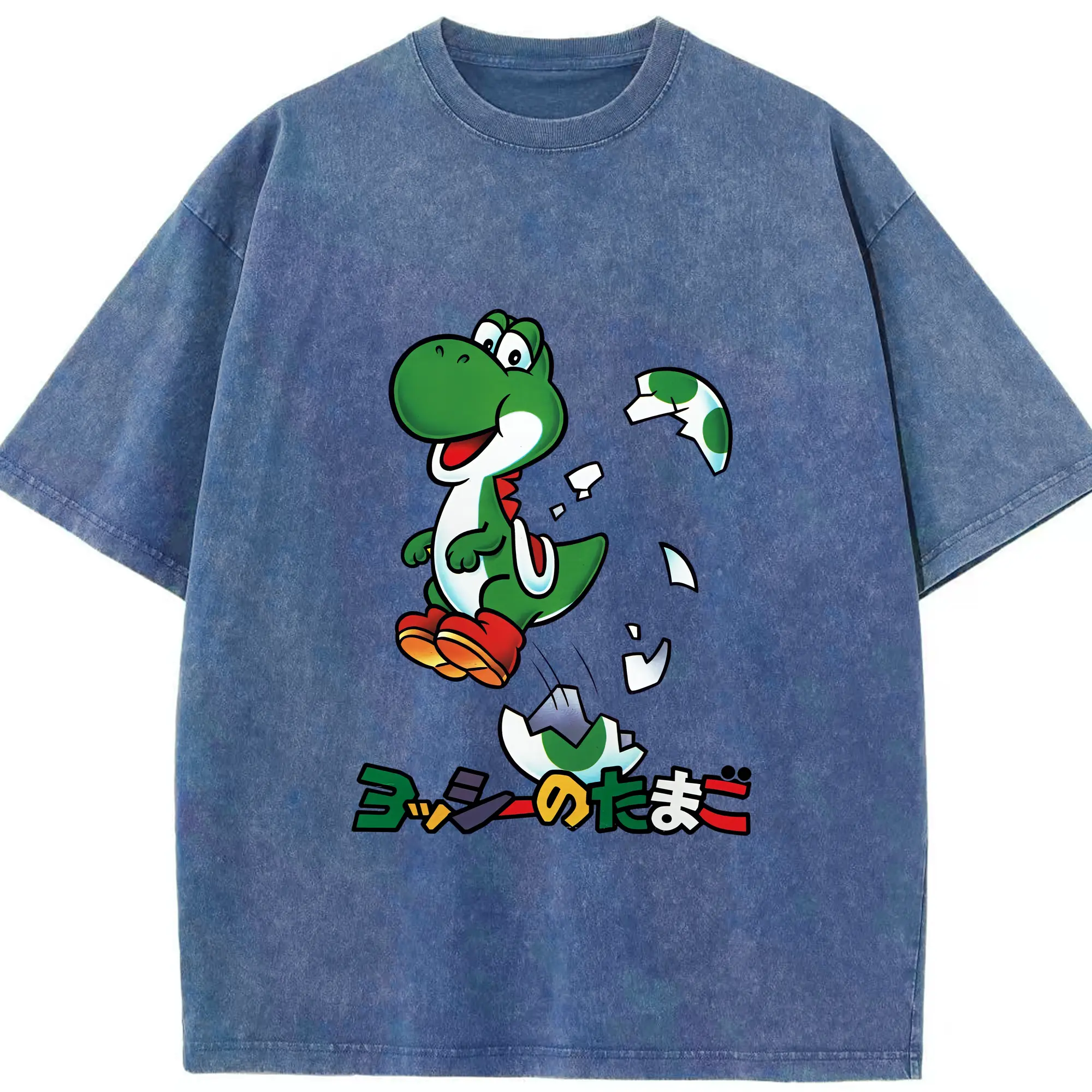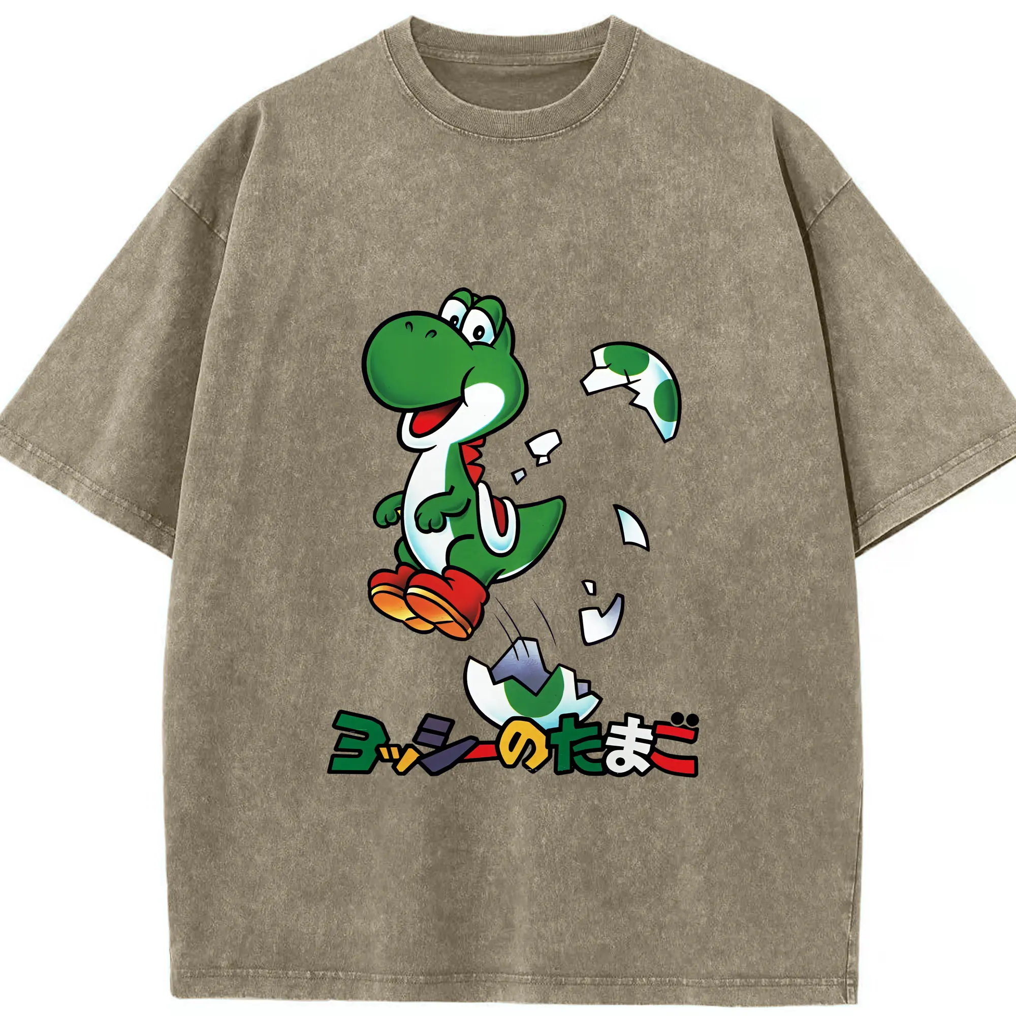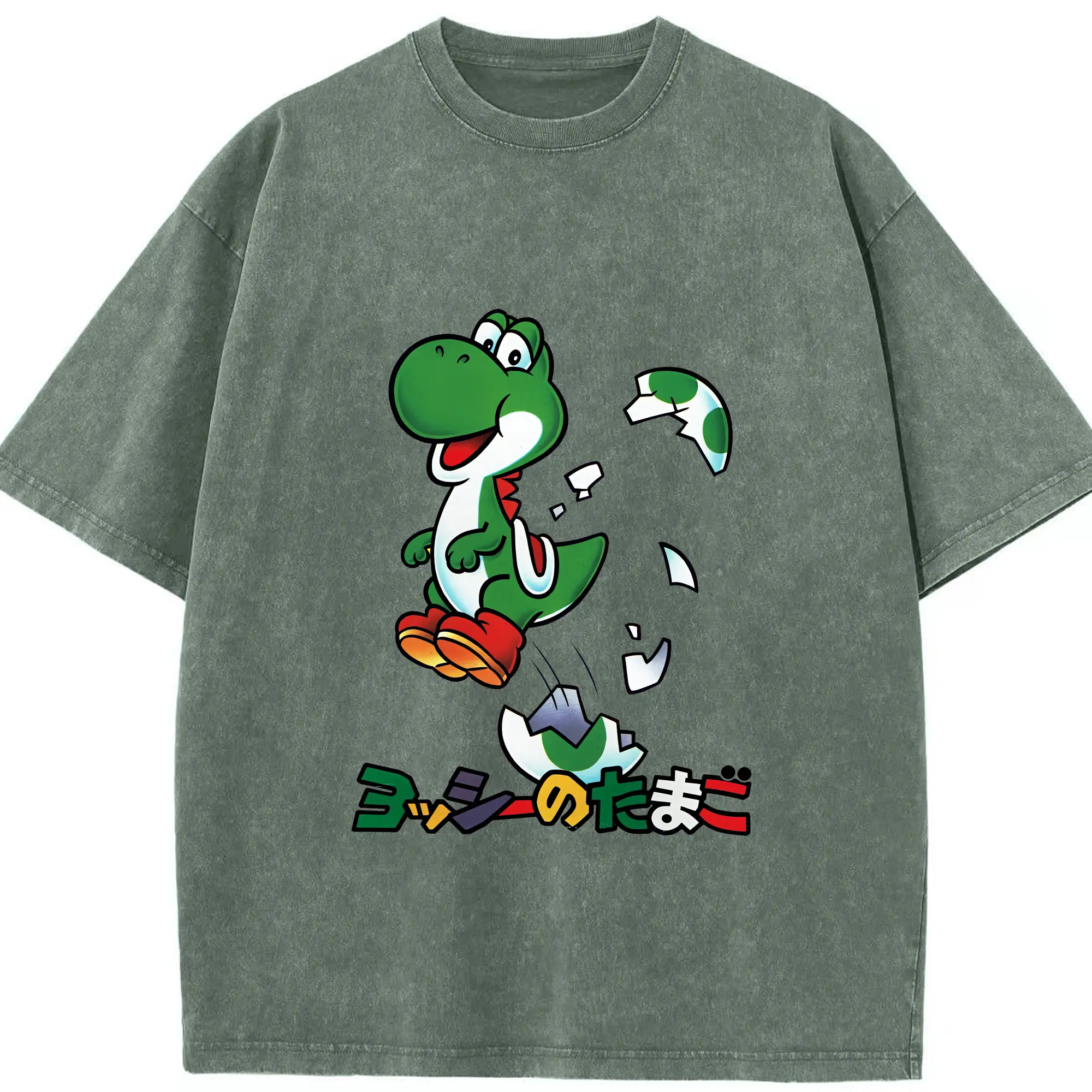 マリオ グッズ ヨッシー - 綿100% ヴィンテージ風 半袖Tシャツ ・ 背面プリント ・ 柔らか肌触り ・ 通気性 快適 ・ スポーツ カジュアル 外出用