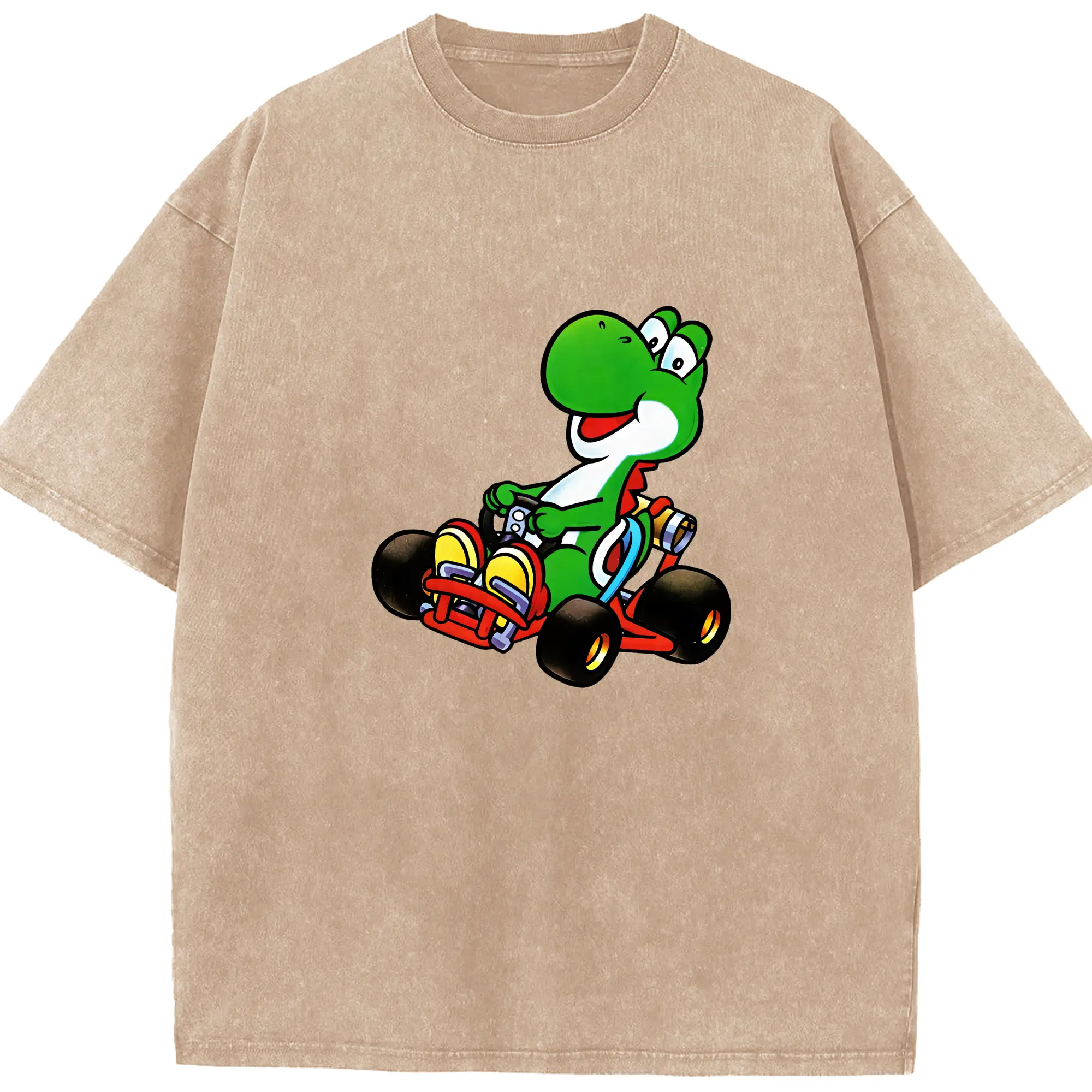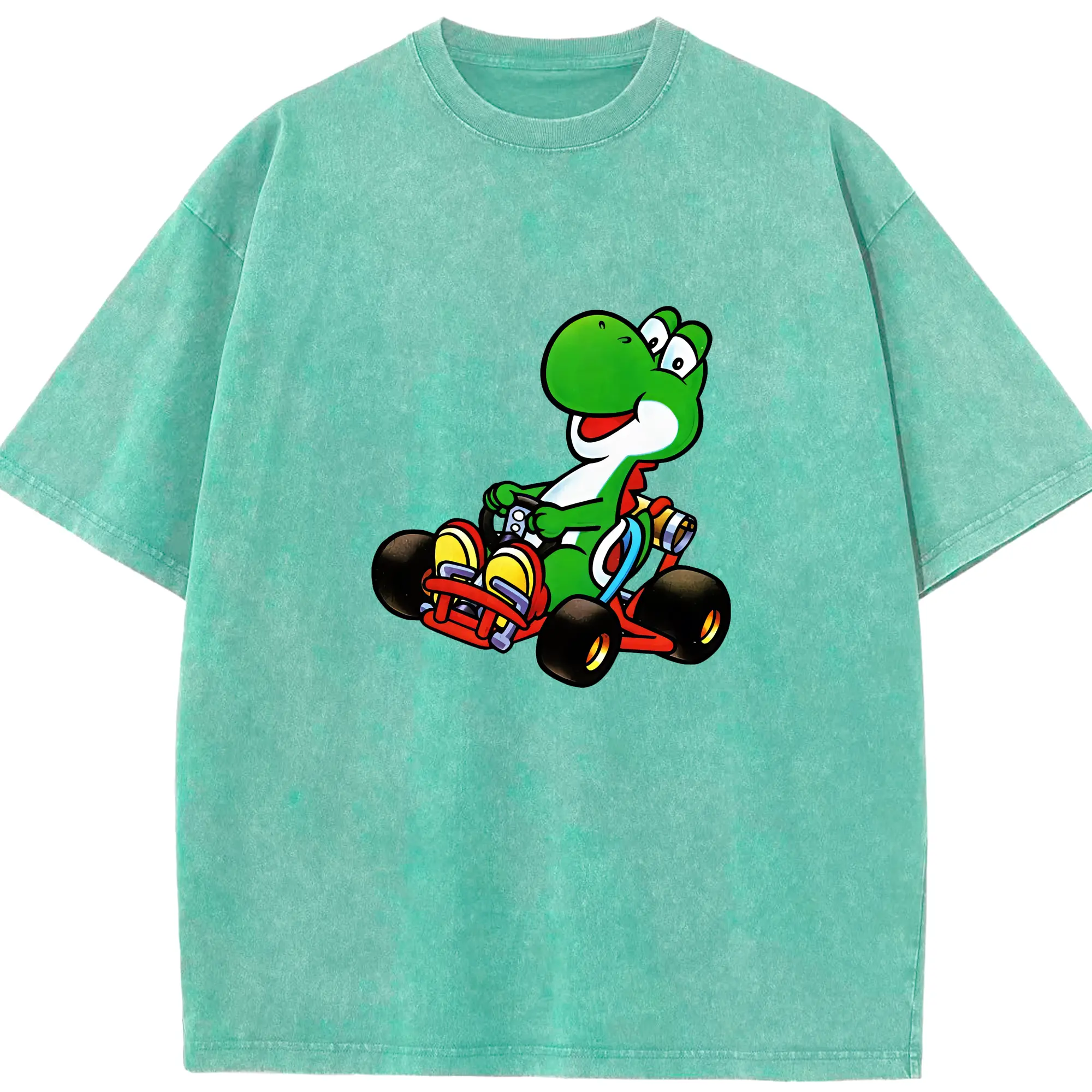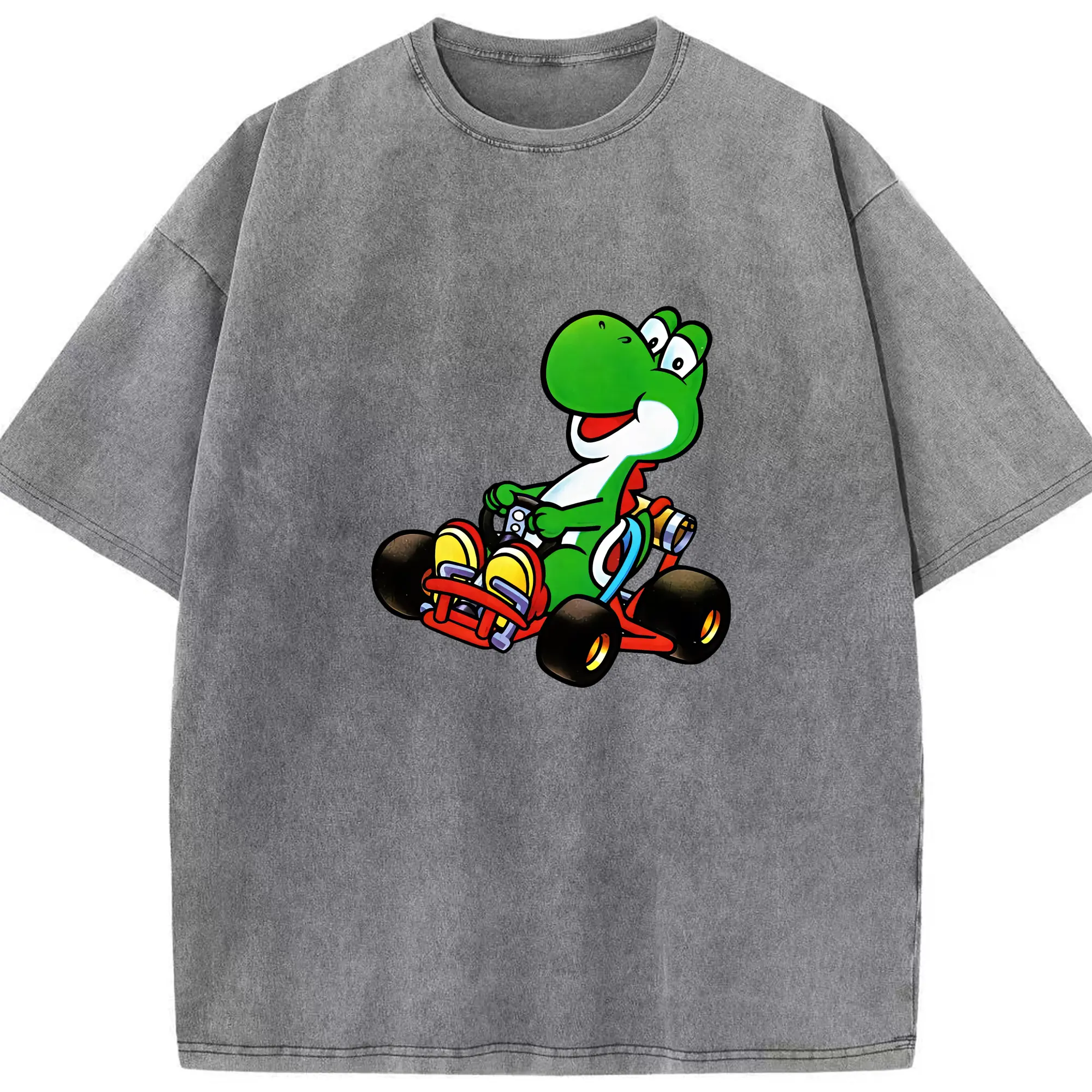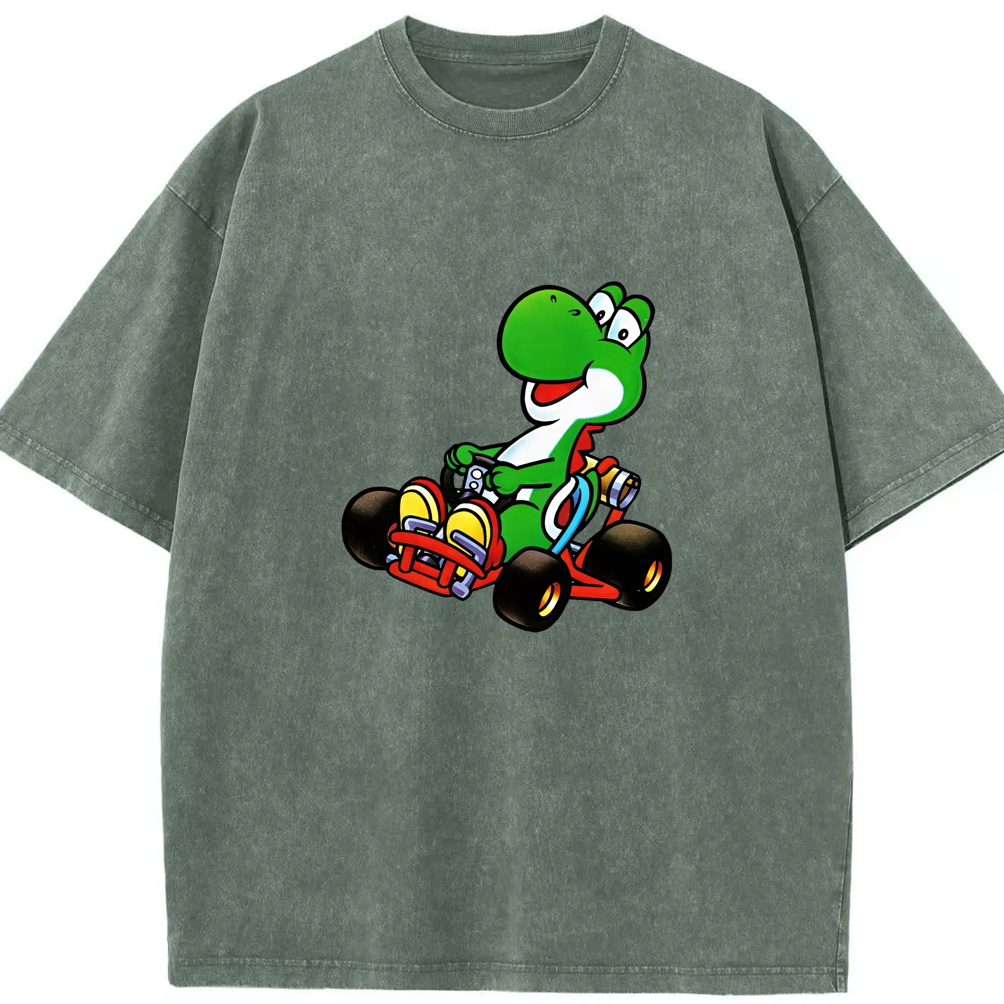 マリオ グッズ ヨッシー - 綿100% ヴィンテージ風 半袖Tシャツ ・ 背面プリント ・ 柔らか肌触り ・ 通気性 快適 ・ スポーツ カジュアル 外出用
