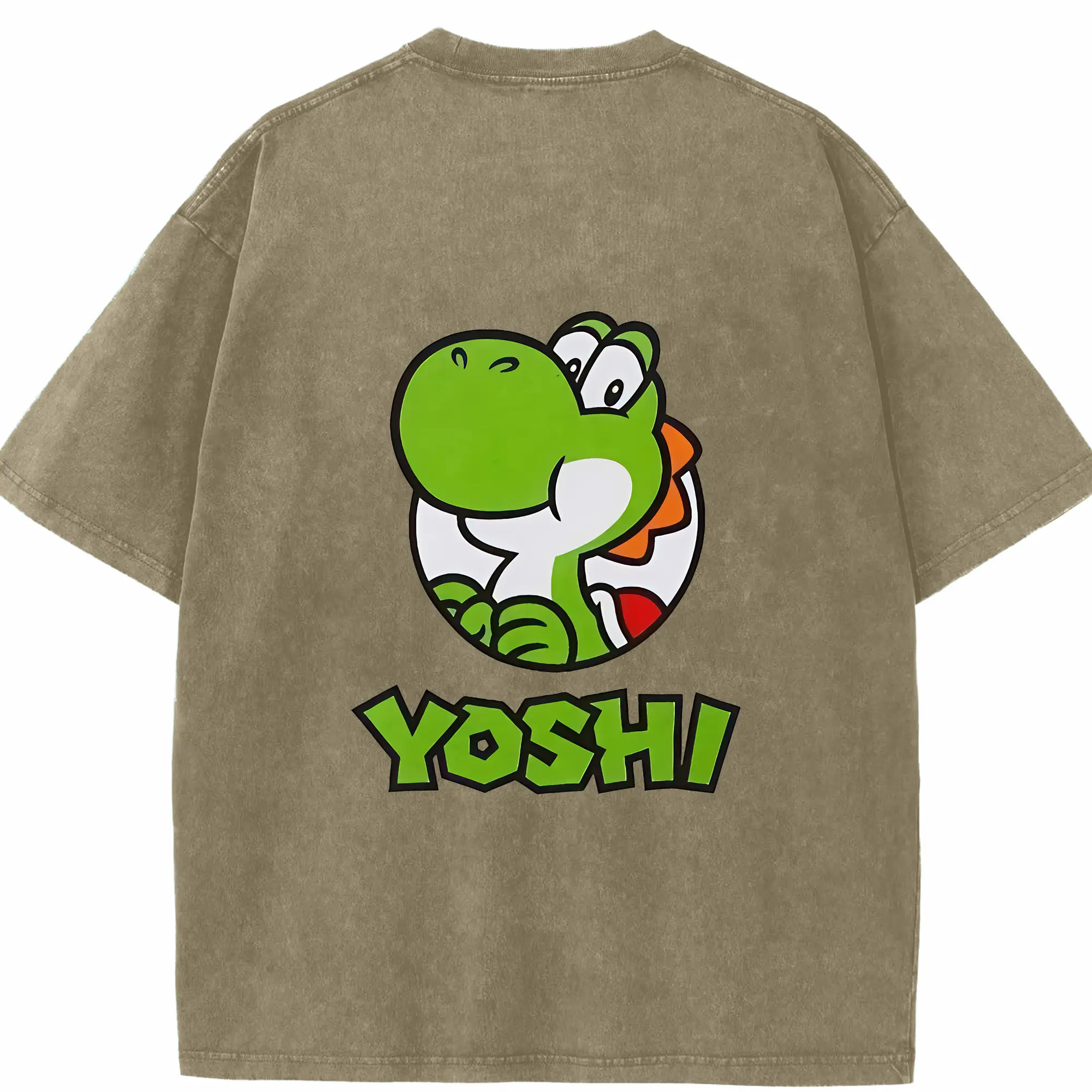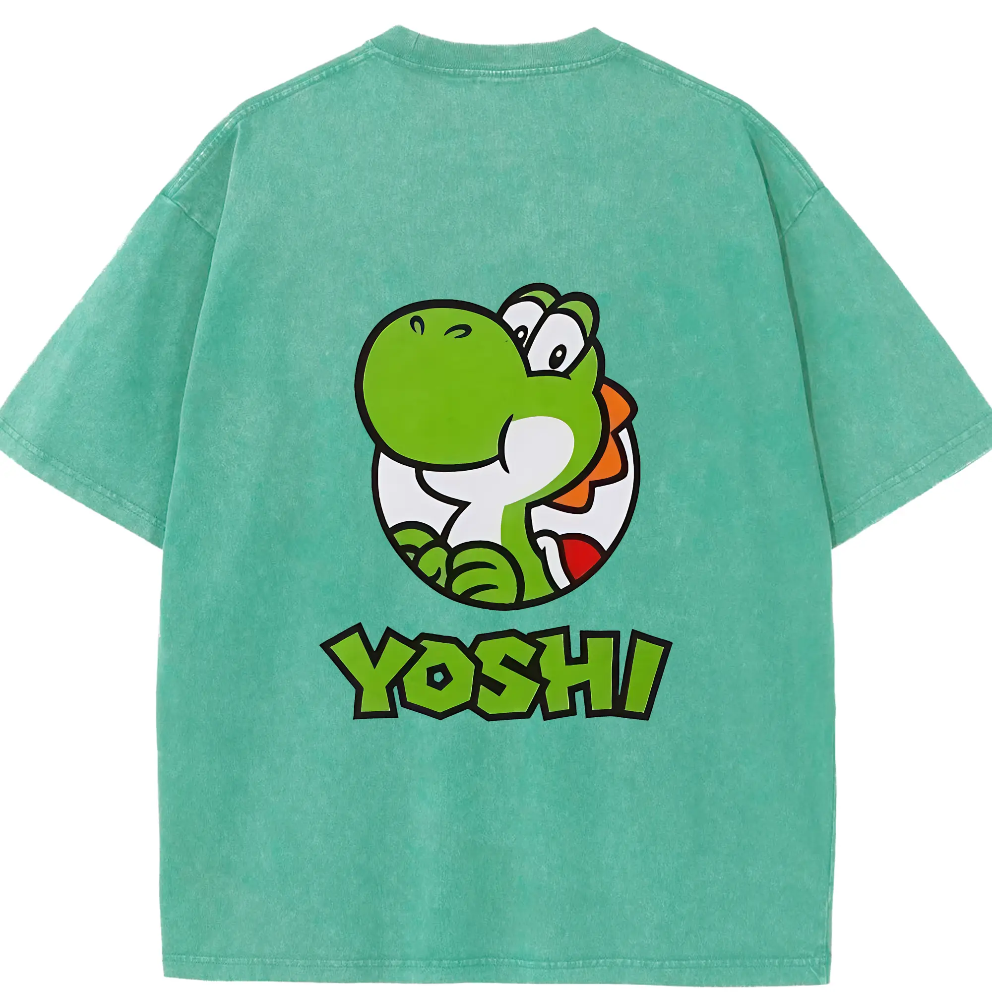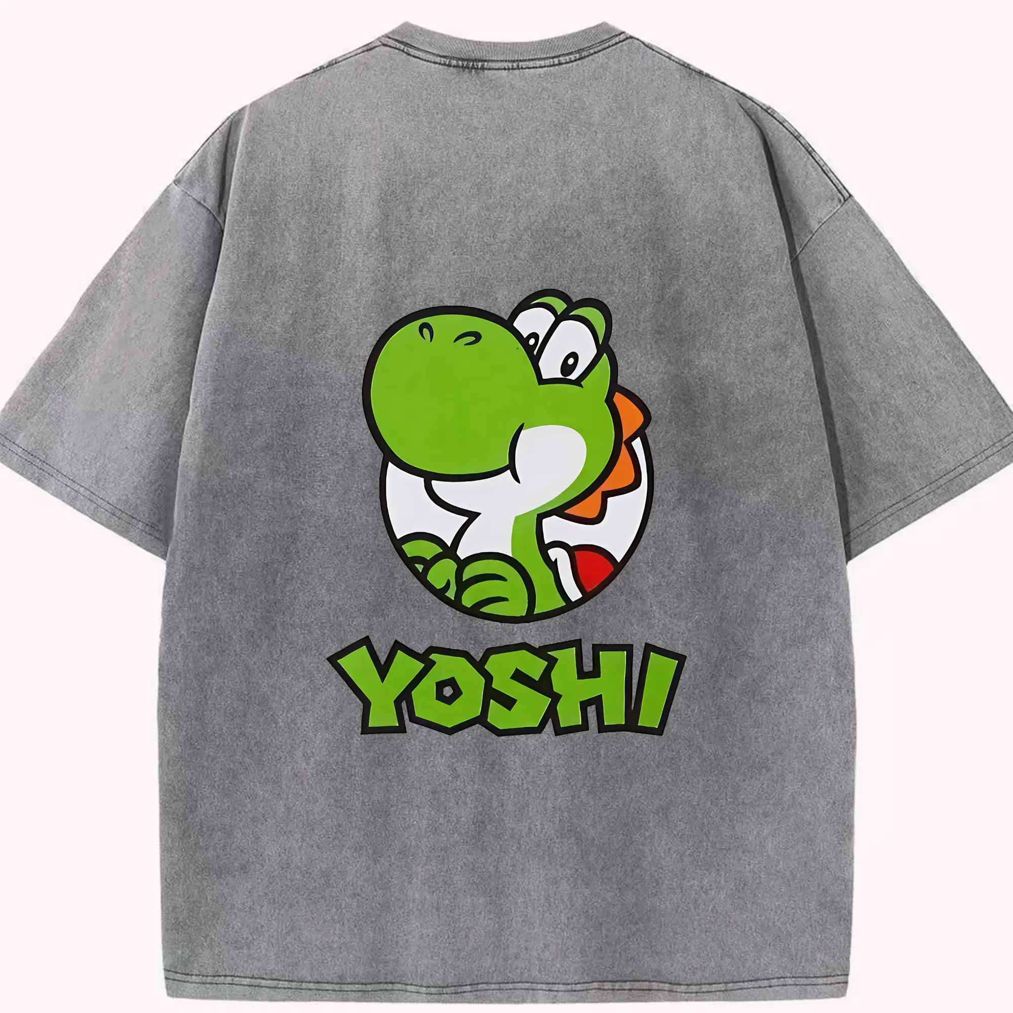 マリオ グッズ ヨッシー - 綿100% ヴィンテージ風 半袖Tシャツ ・ フロントプリント ・ 柔らか肌触り ・ 通気性 快適 ・ スポーツ カジュアル 外出用