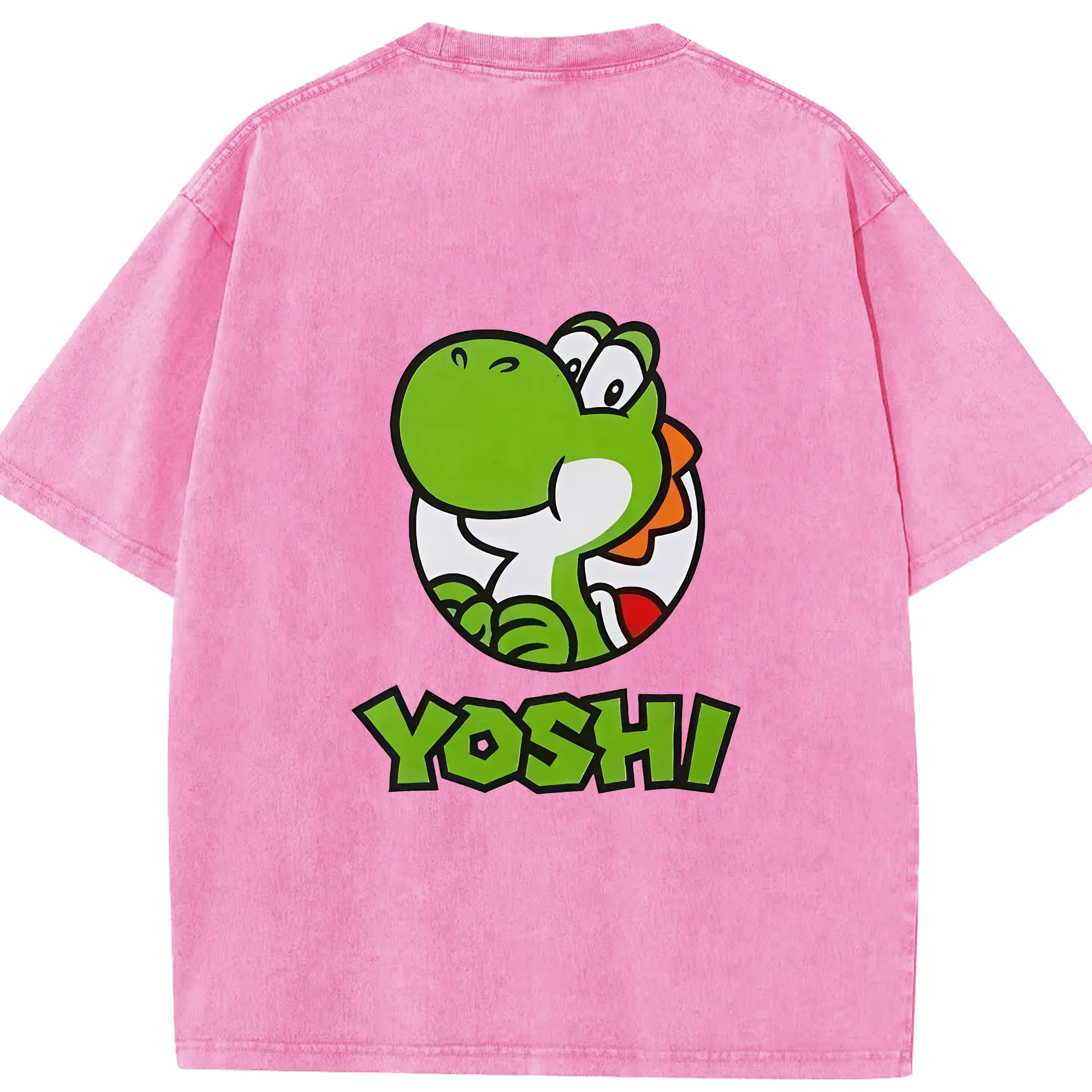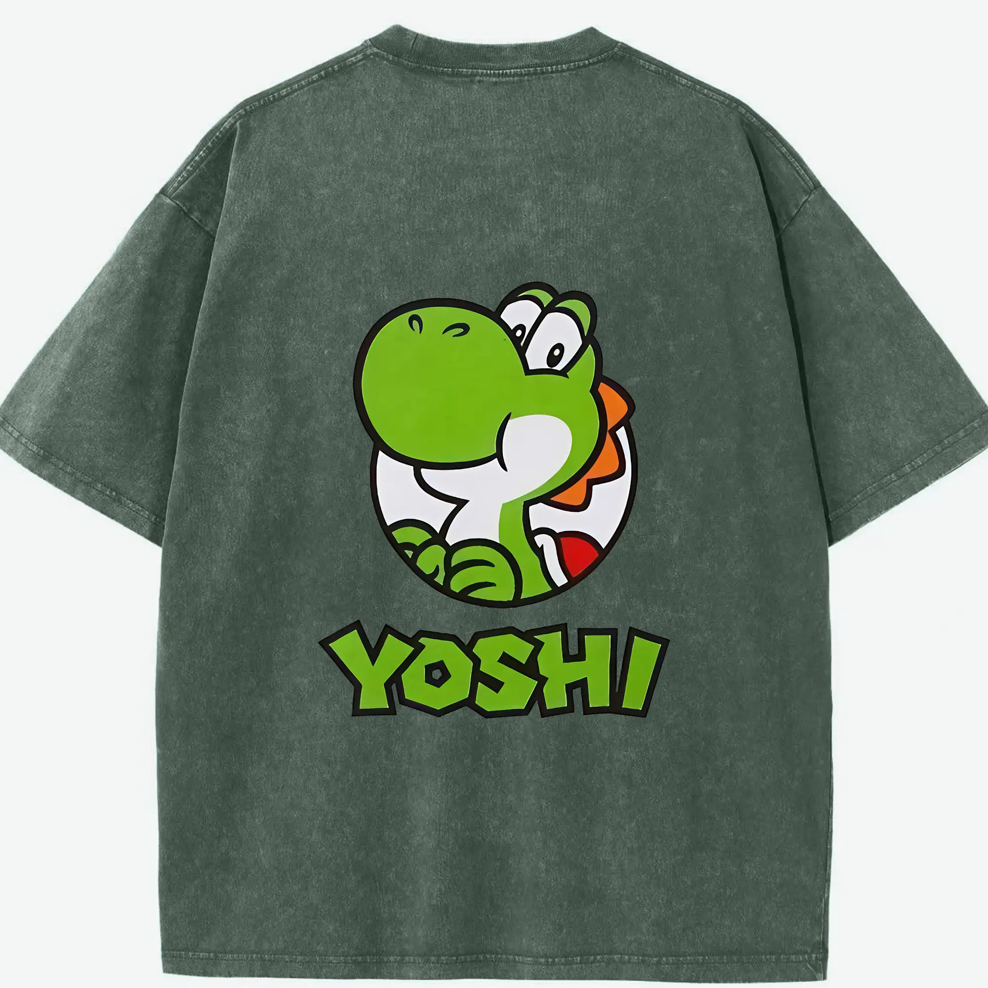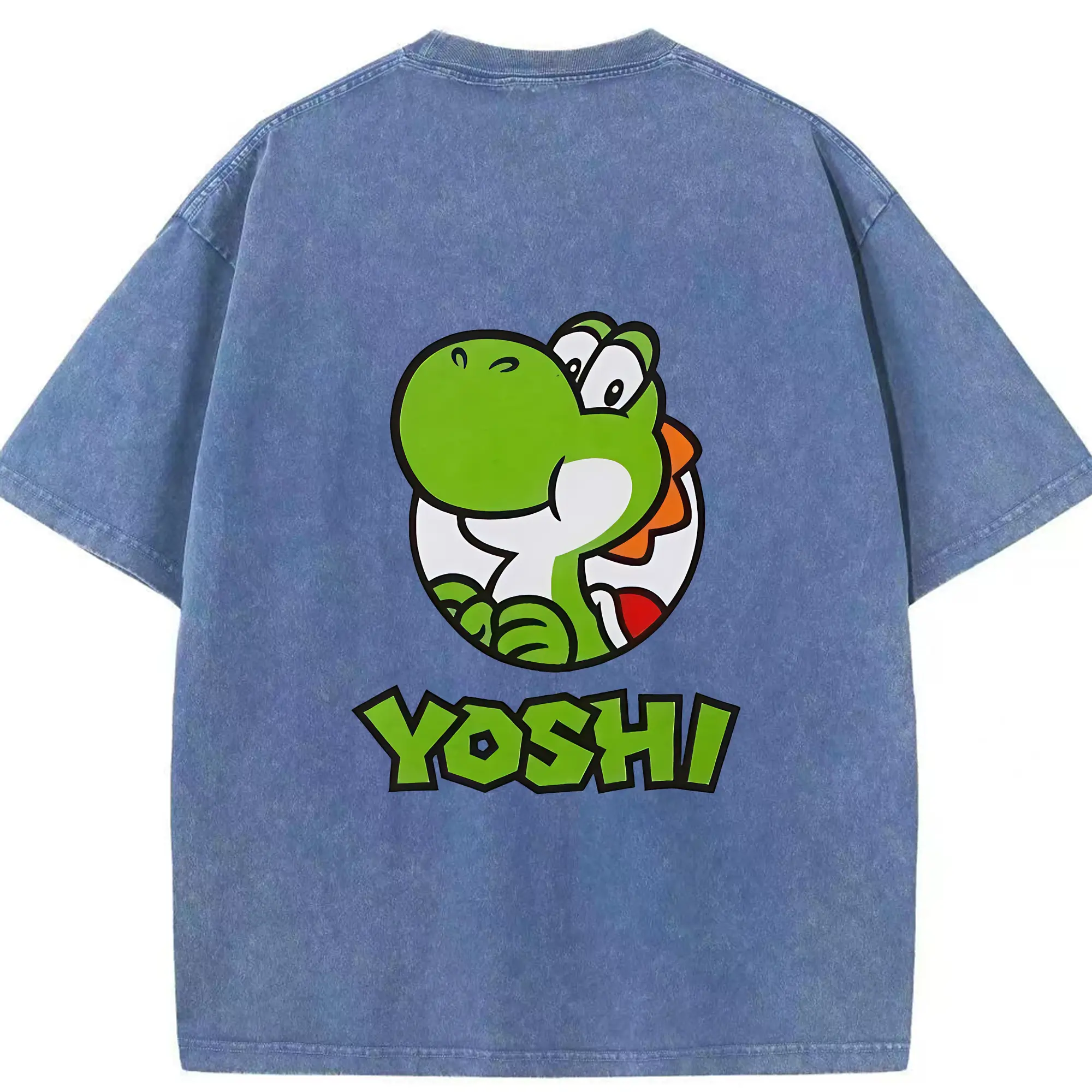 マリオ グッズ ヨッシー - 綿100% ヴィンテージ風 半袖Tシャツ ・ フロントプリント ・ 柔らか肌触り ・ 通気性 快適 ・ スポーツ カジュアル 外出用
