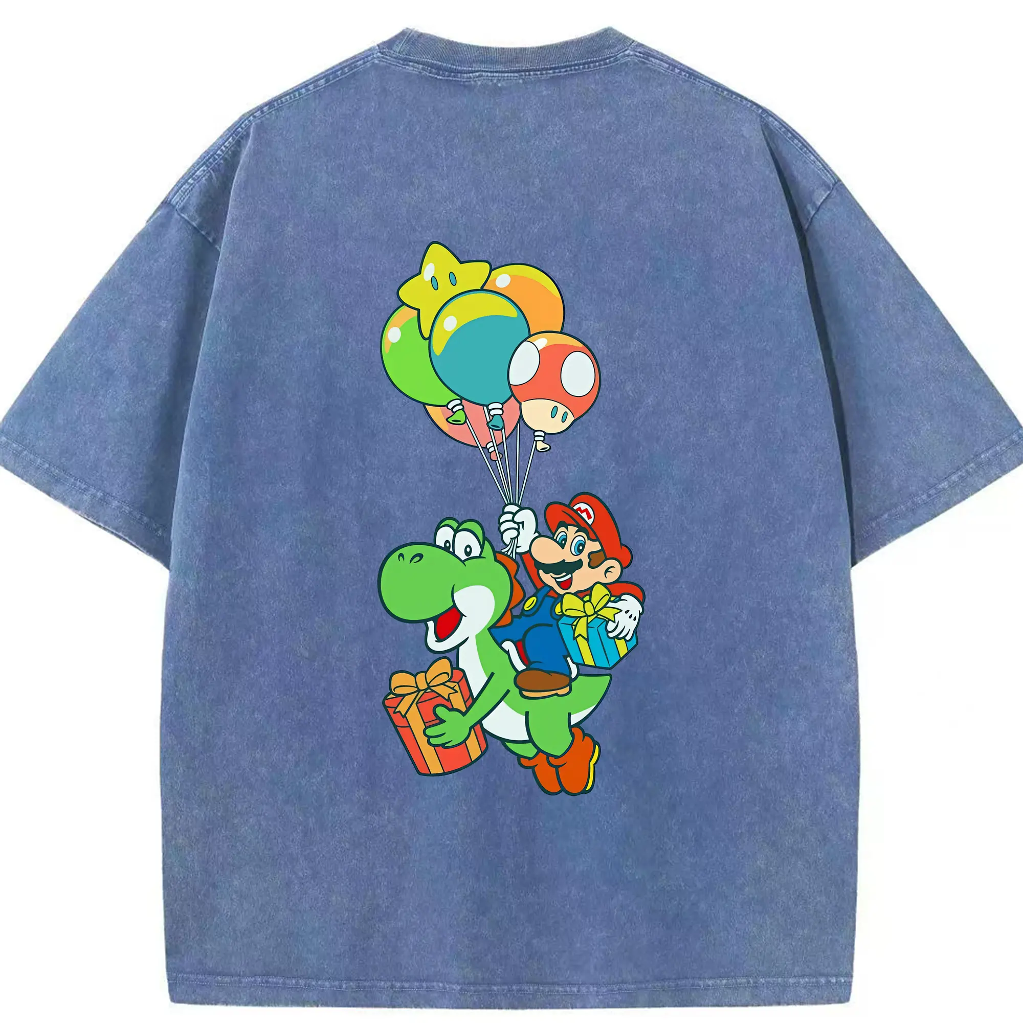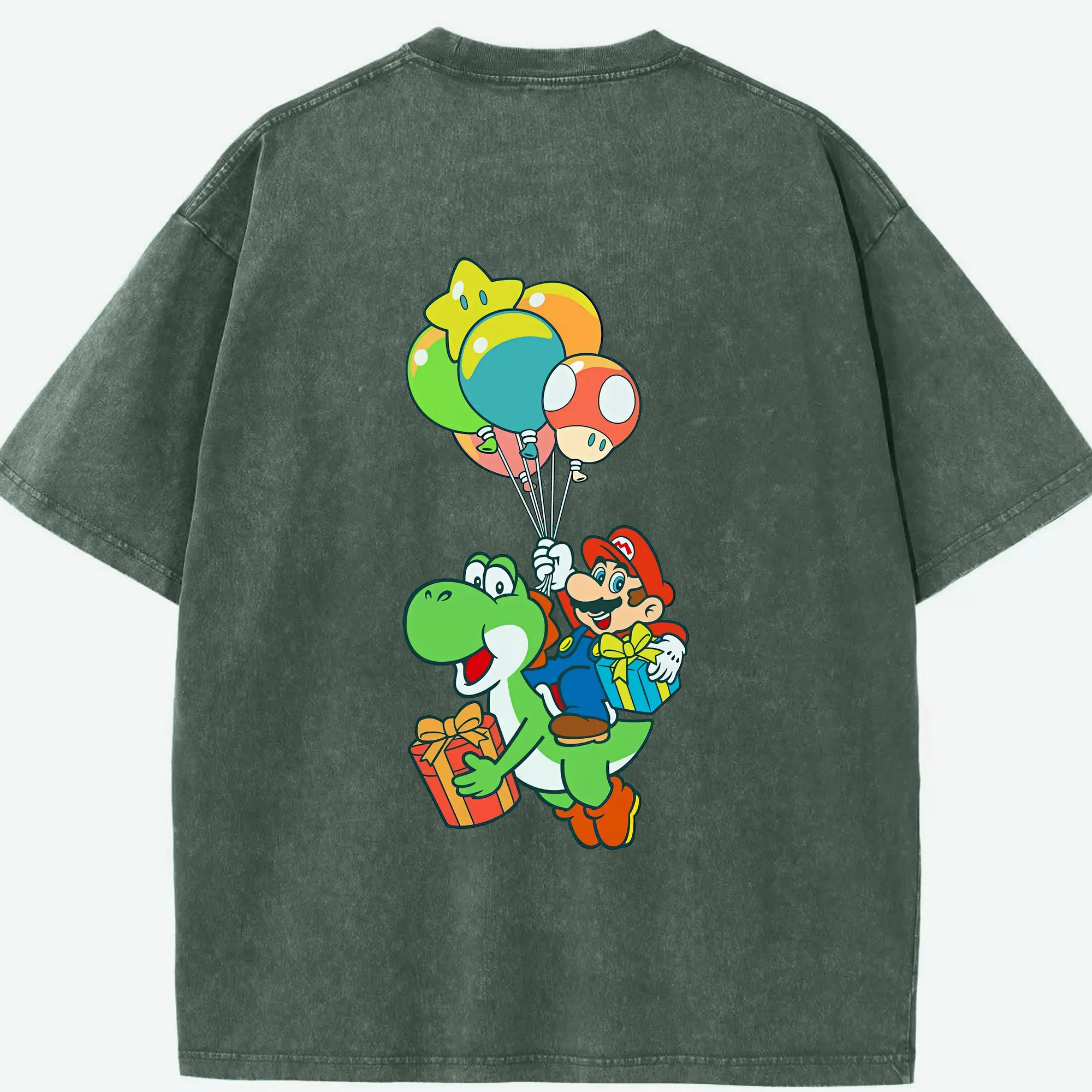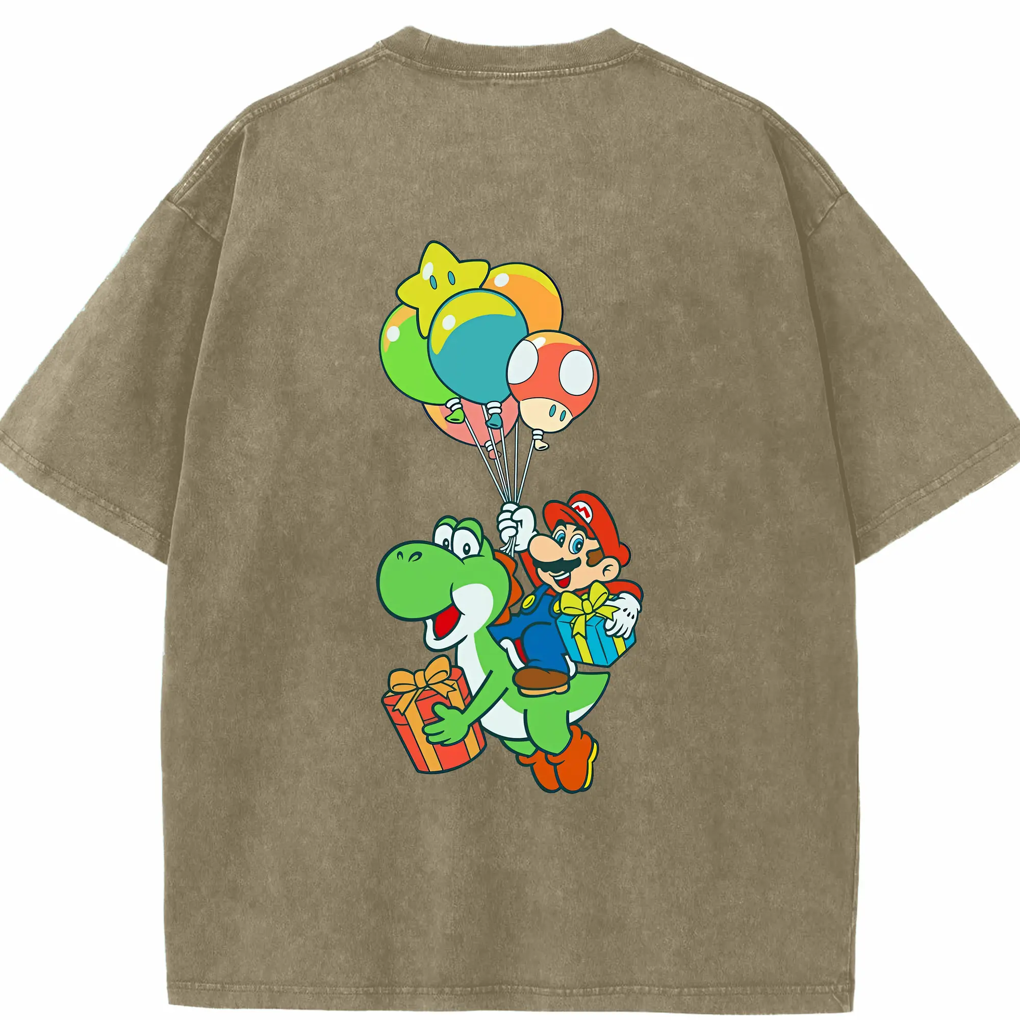マリオ グッズ ヨッシー - 綿100% ヴィンテージ風 半袖Tシャツ ・ フロントプリント ・ 柔らか肌触り ・ 通気性 快適 ・ スポーツ カジュアル 外出用