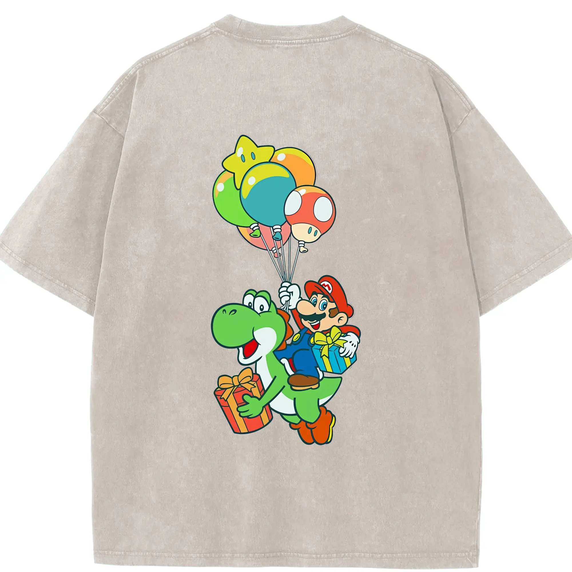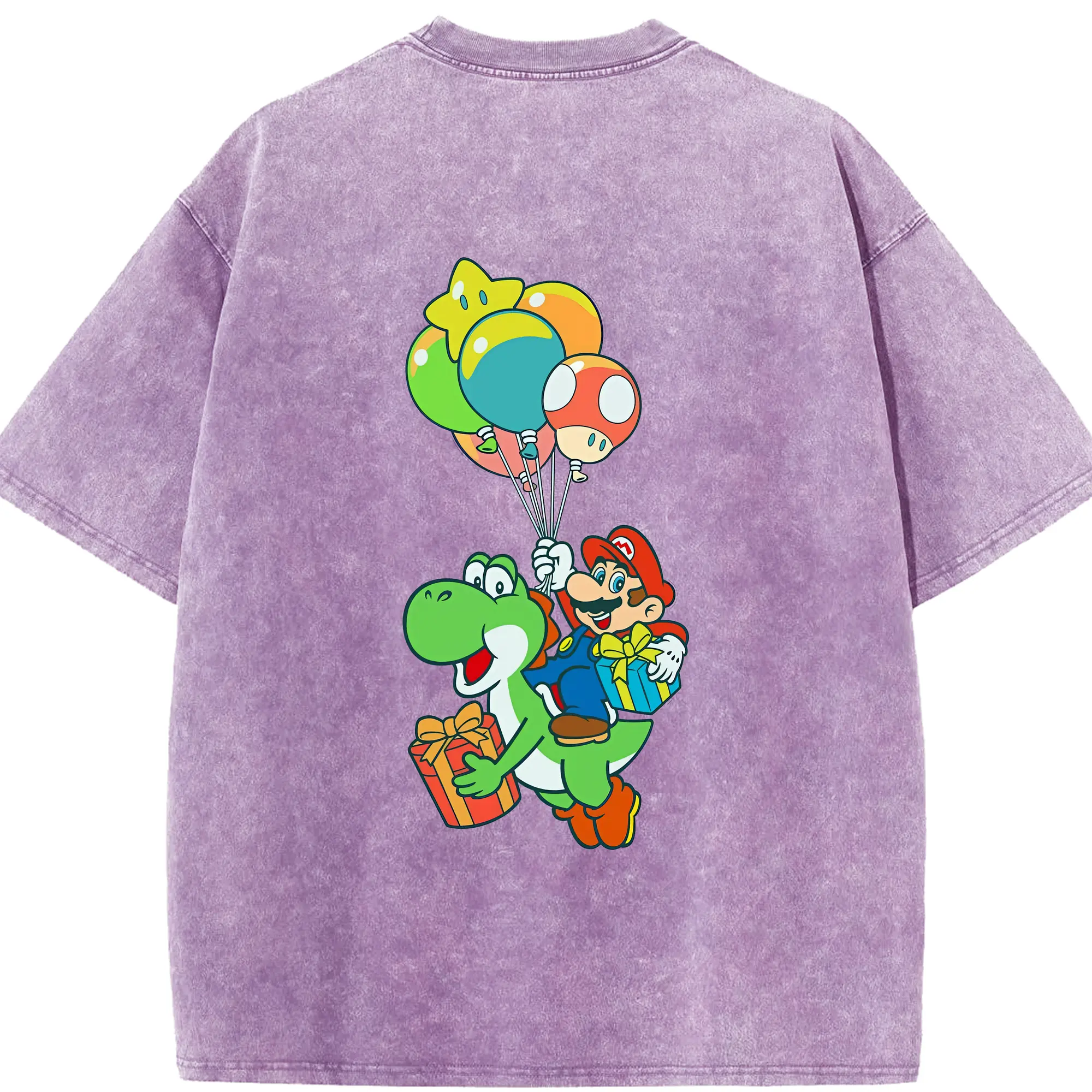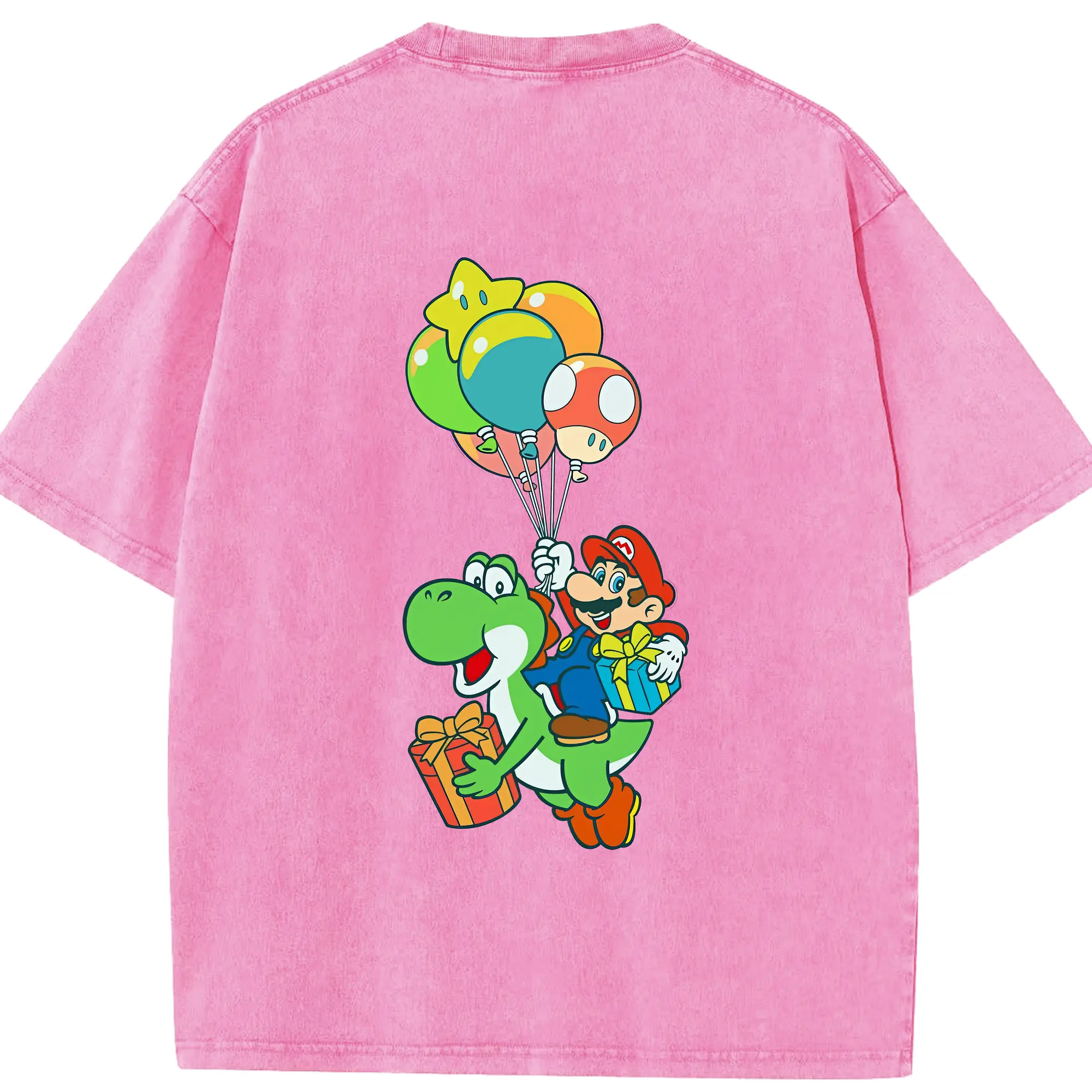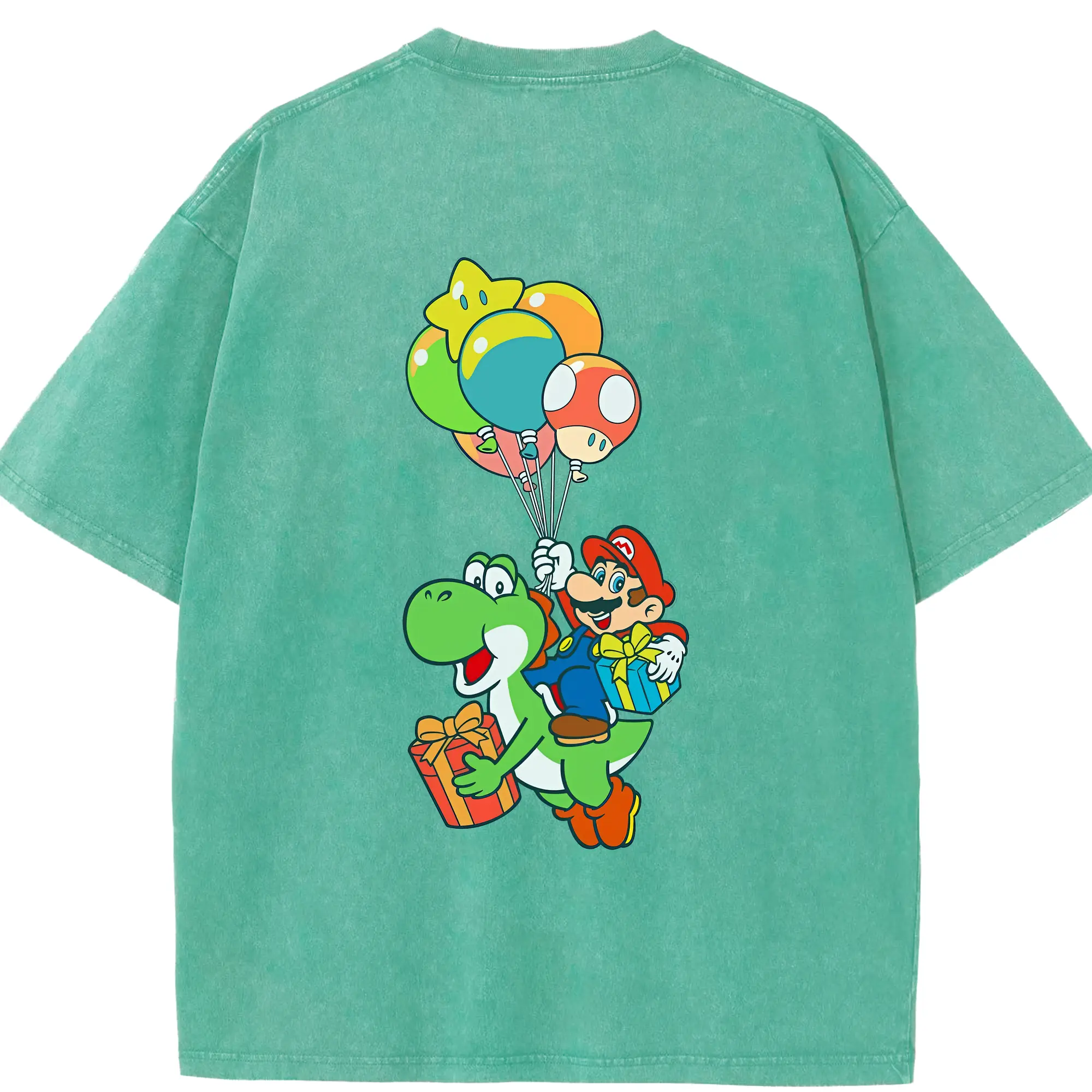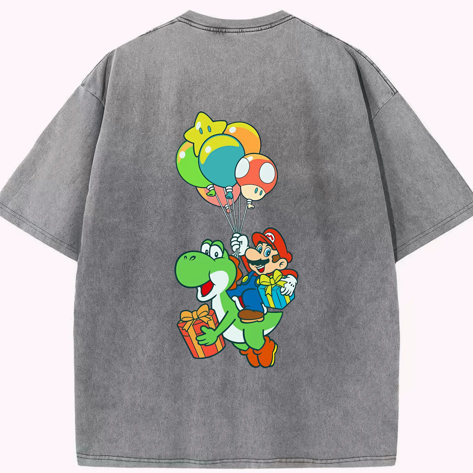 マリオ グッズ ヨッシー - 綿100% 半袖Tシャツ ・ バックプリント ・ 快適 通気性 ・ 日常使い 散歩 スポーツ用