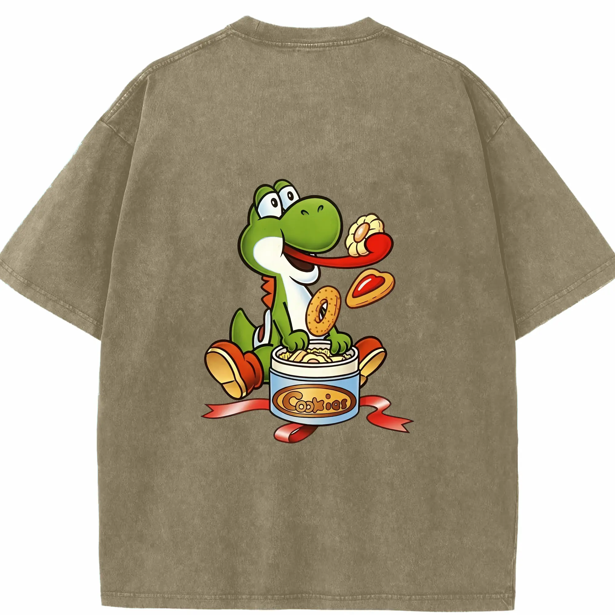マリオ グッズ ヨッシー - 綿100% ヴィンテージ風 半袖Tシャツ ・ フロントプリント ・ 柔らか肌触り ・ 通気性 快適 ・ スポーツ カジュアル 外出用