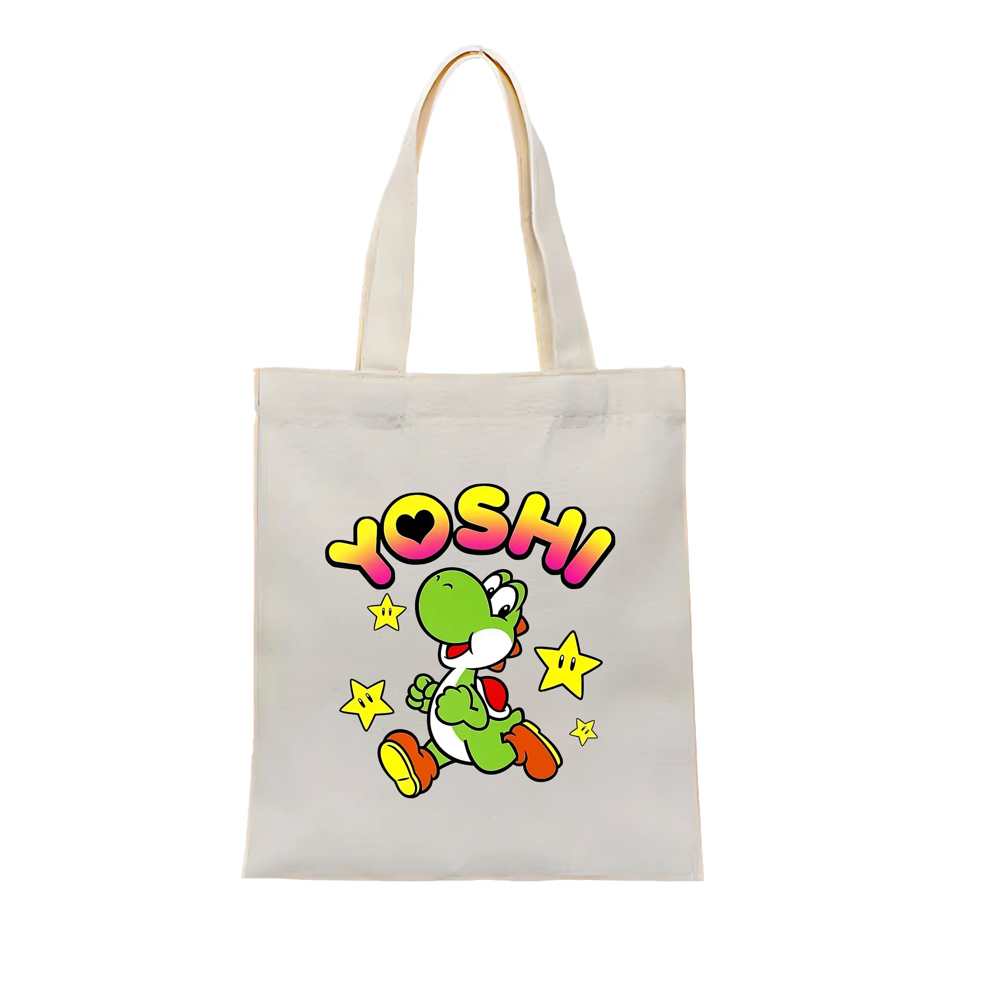 マリオ グッズ ヨッシー - 縦型キャンバス手提げバッグ(トートバッグ) ・ キャンバス素材 ・ ショッピング用 ・ 軽量 丈夫 お手入れ簡単