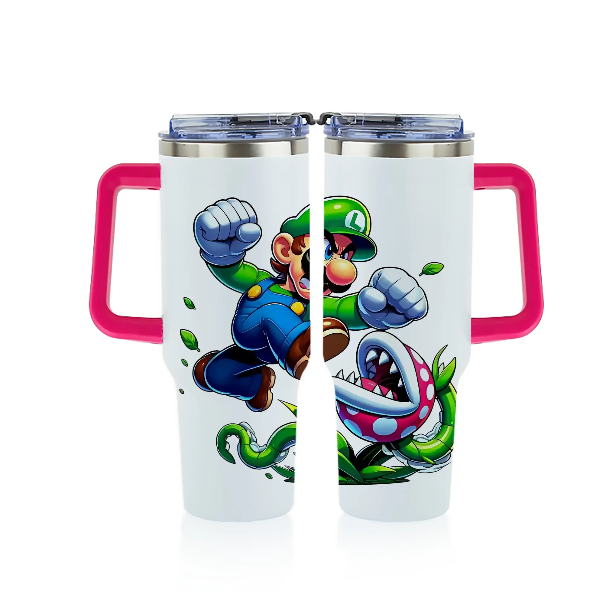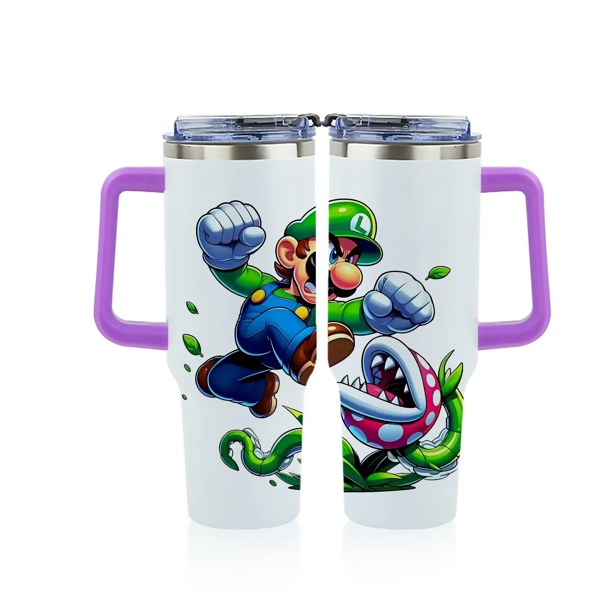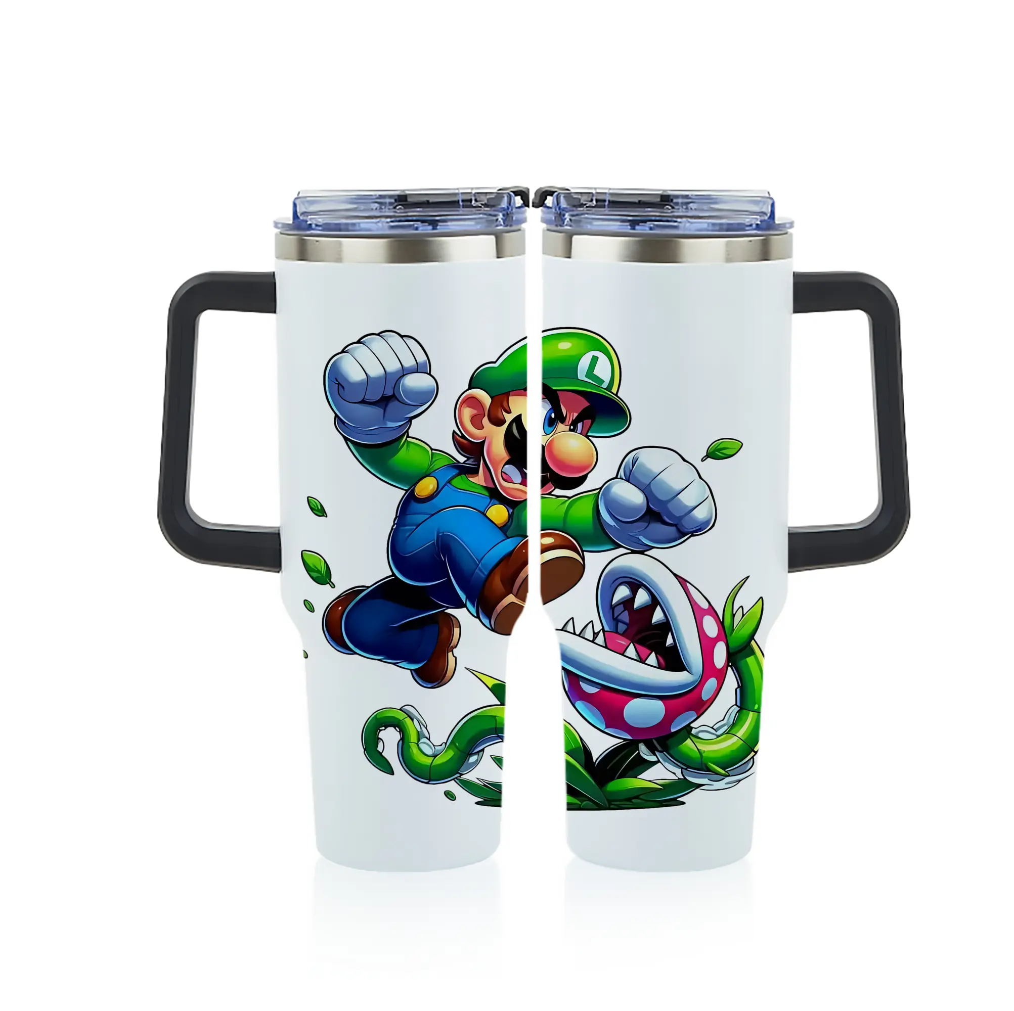 マリオ グッズ ルイージ - 1200mL フルプリント車用タンブラー ・ 304ステンレス 内側 ・ 201ステンレス 外側 ・ 保温 保冷 ・ 通勤 ドライブ アウトドア用