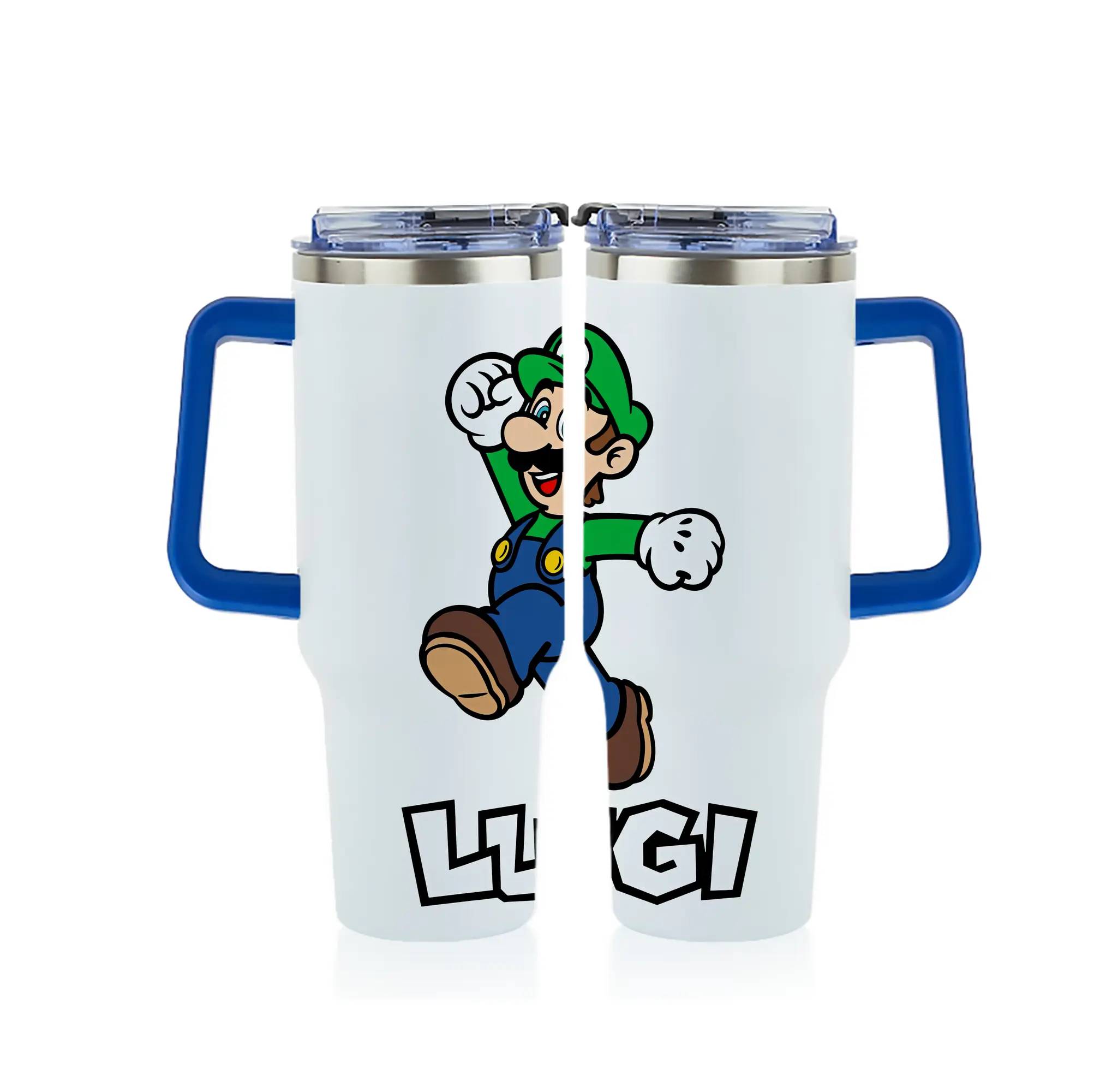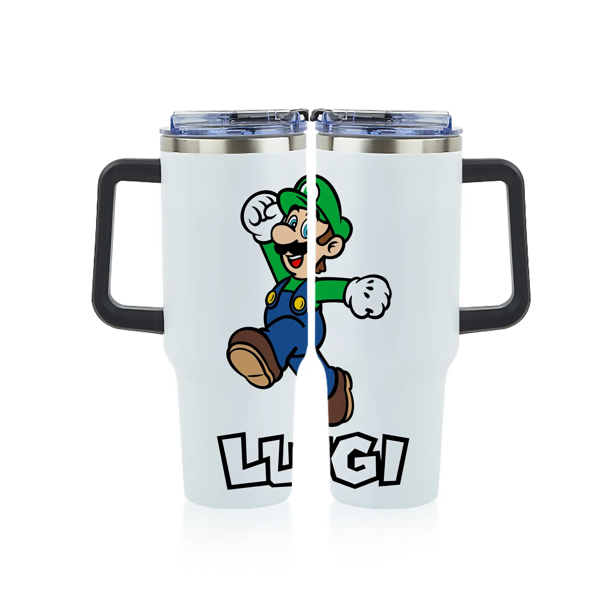 マリオ グッズ ルイージ - 1200mL フルプリント車用タンブラー ・ 304ステンレス 内側 ・ 201ステンレス 外側 ・ 保温 保冷 ・ 通勤 ドライブ アウトドア用