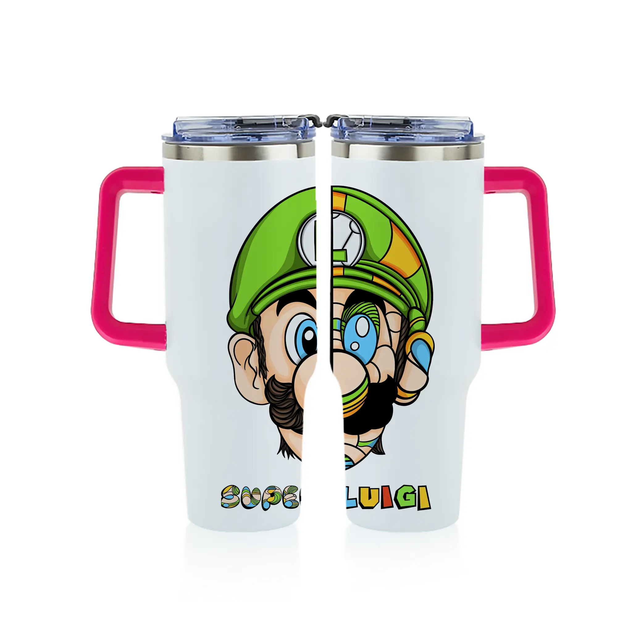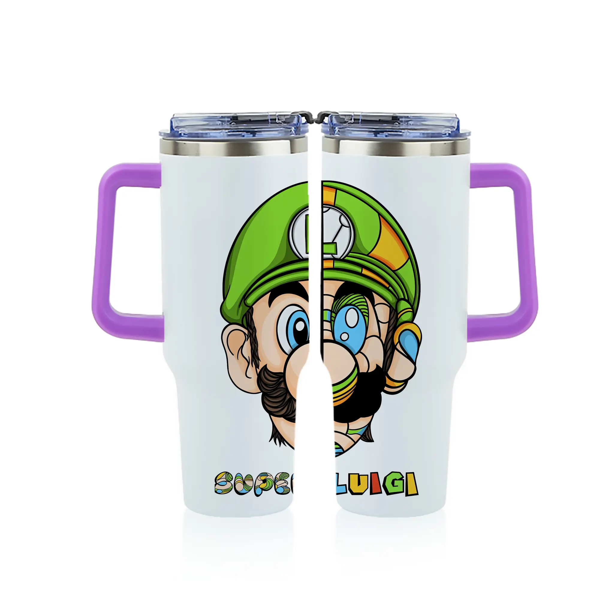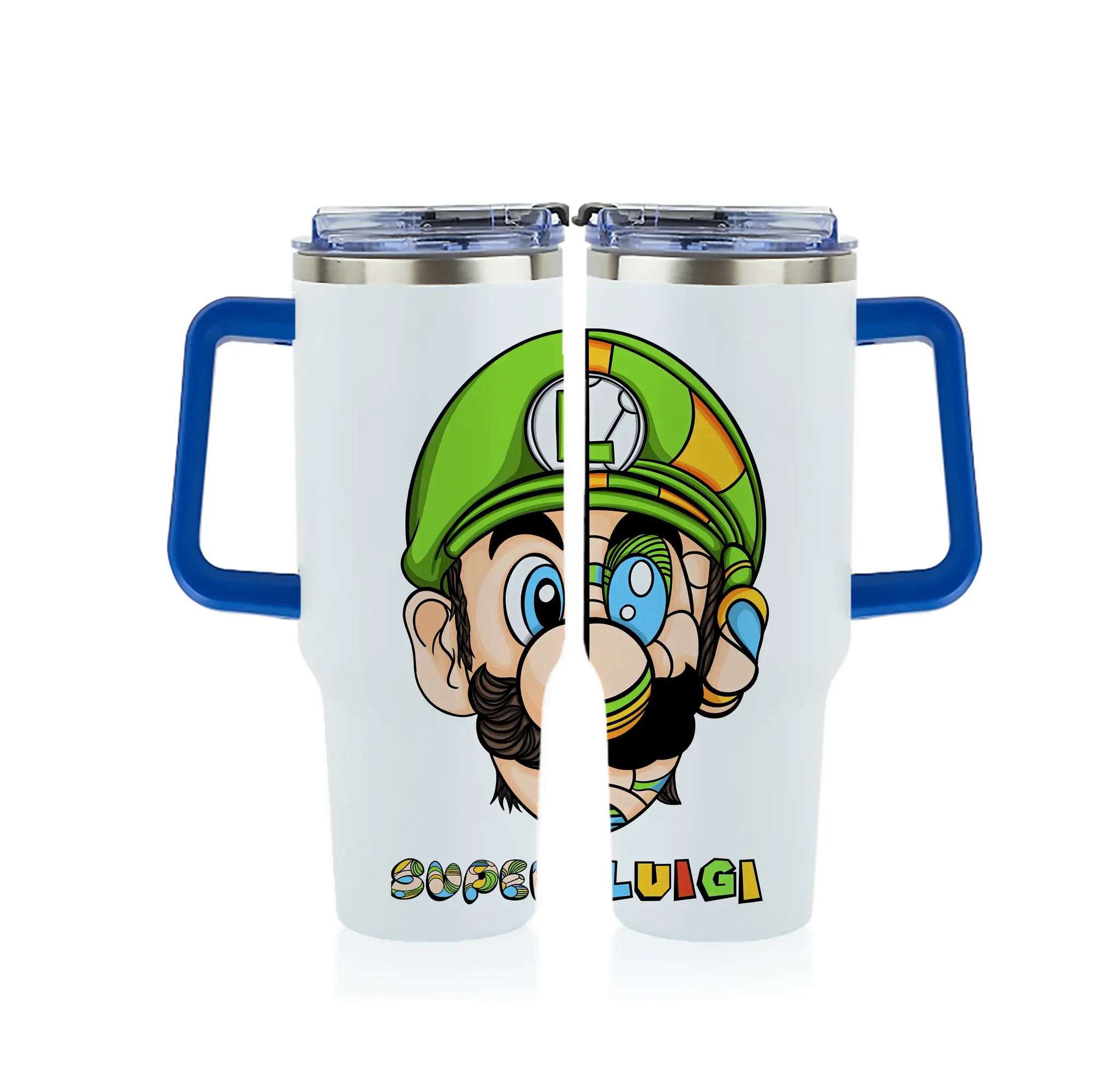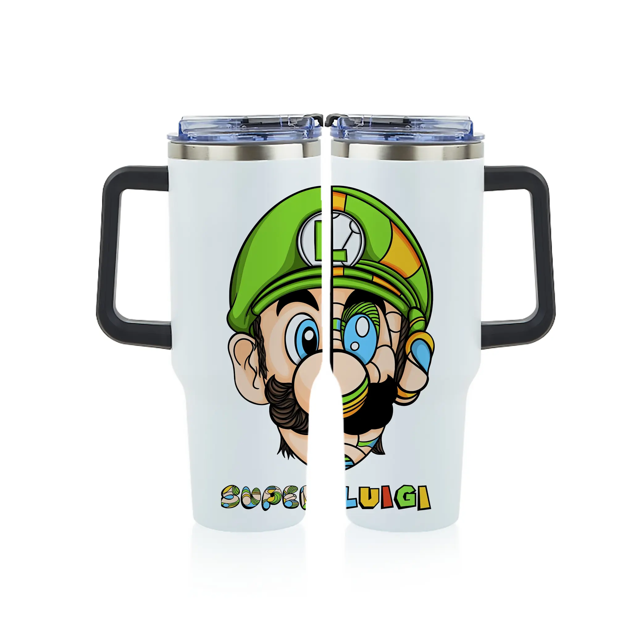 マリオ グッズ ルイージ - 1200mL フルプリント車用タンブラー ・ 304ステンレス 内側 ・ 201ステンレス 外側 ・ 保温 保冷 ・ 通勤 ドライブ アウトドア用
