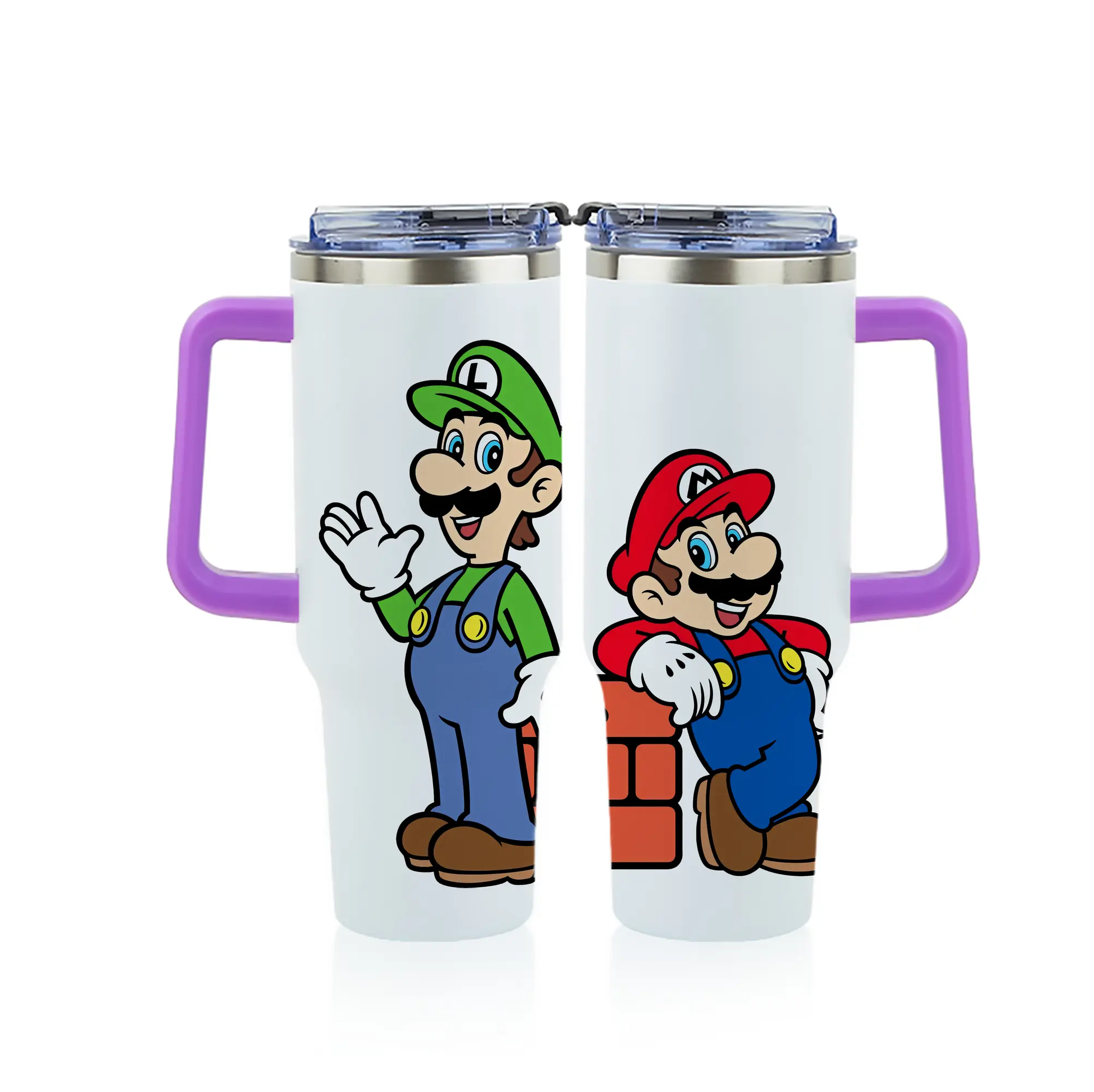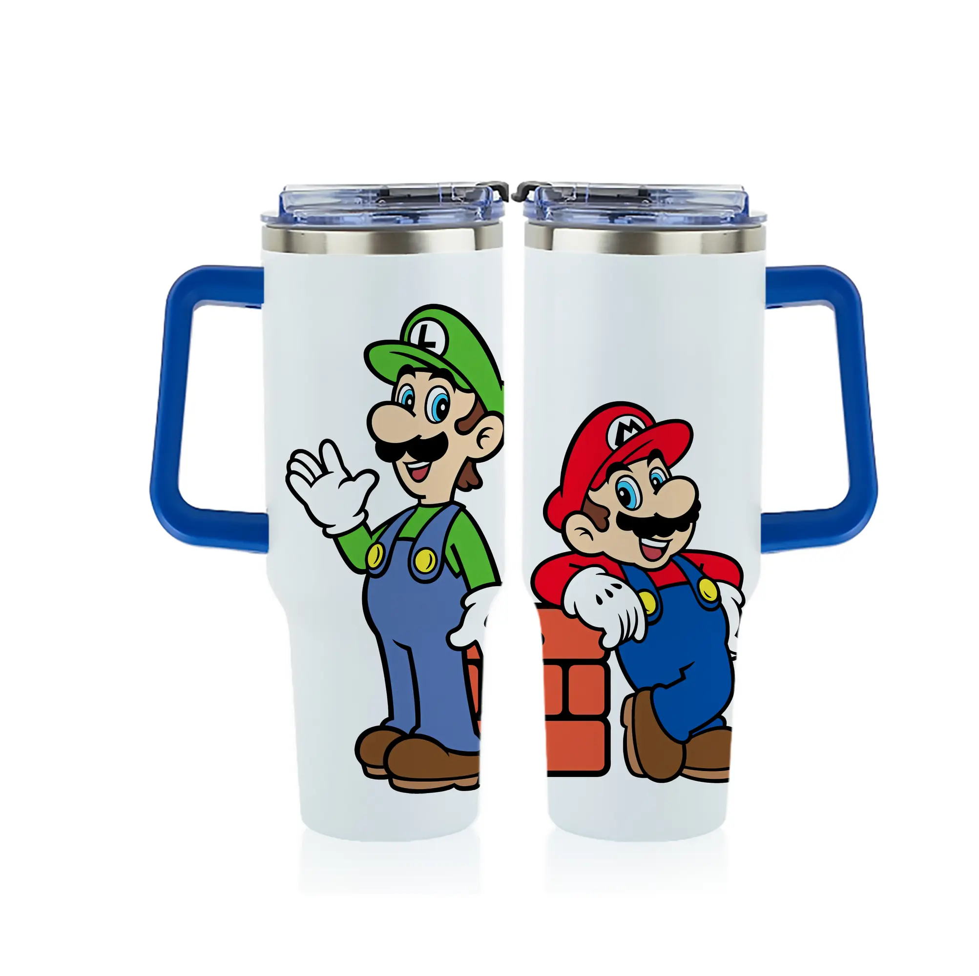マリオ グッズ ルイージ - 1200mL フルプリント車用タンブラー ・ 304ステンレス 内側 ・ 201ステンレス 外側 ・ 保温 保冷 ・ 通勤 ドライブ アウトドア用