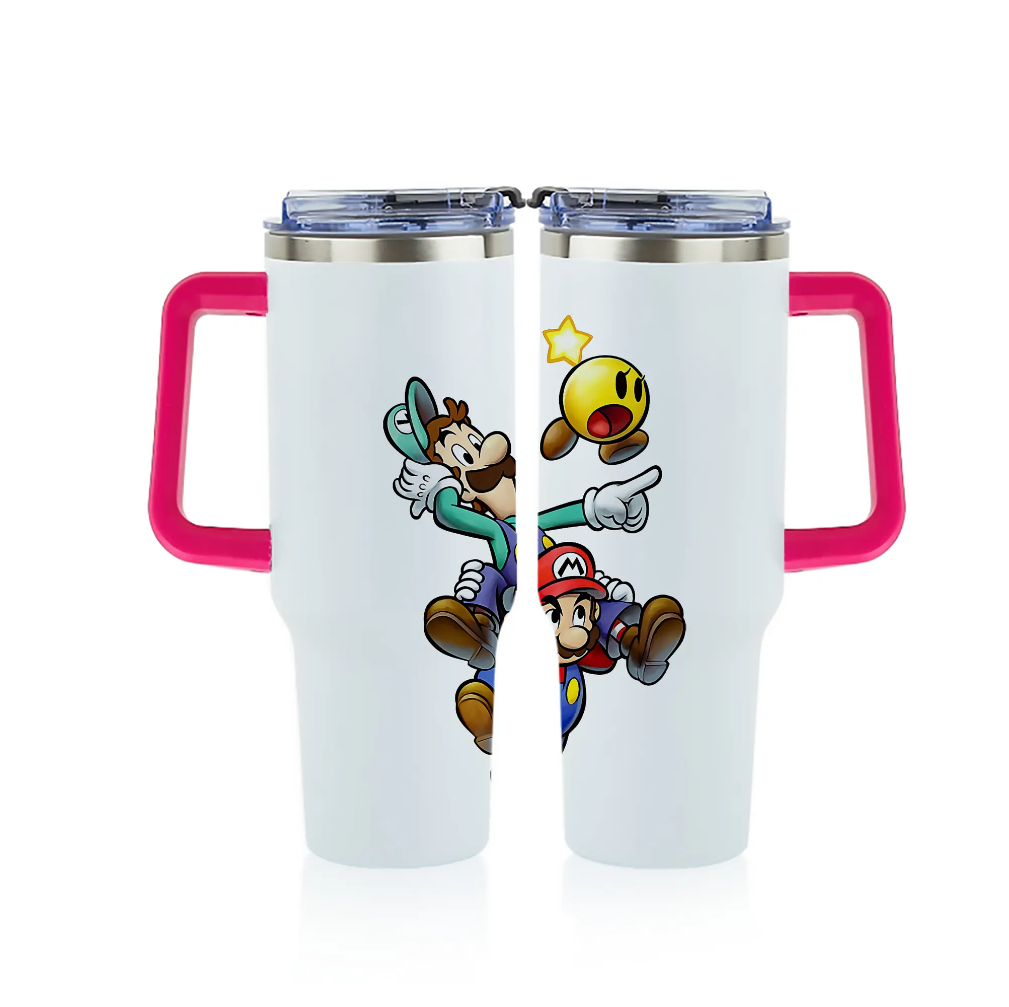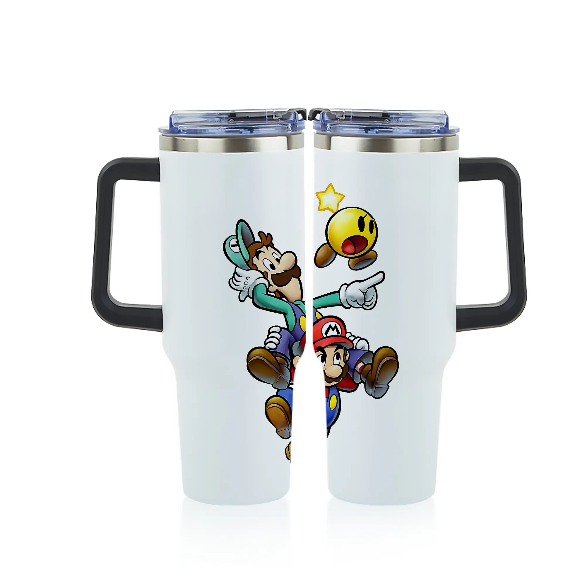 マリオ グッズ ルイージ - 1200mL フルプリント車用タンブラー ・ 304ステンレス 内側 ・ 201ステンレス 外側 ・ 保温 保冷 ・ 通勤 ドライブ アウトドア用