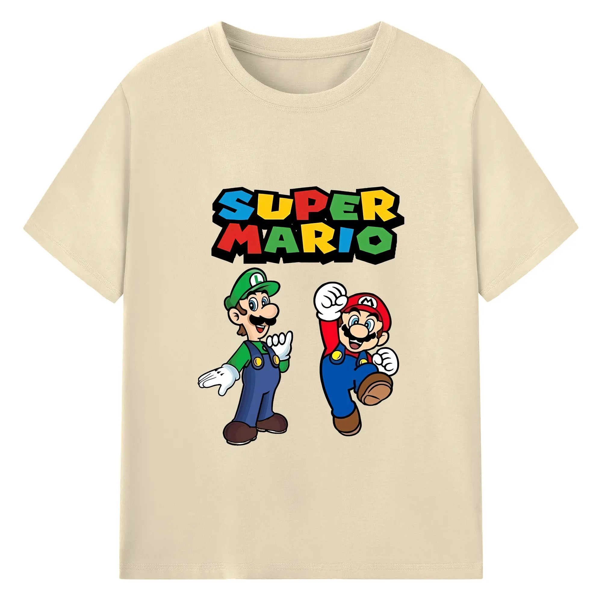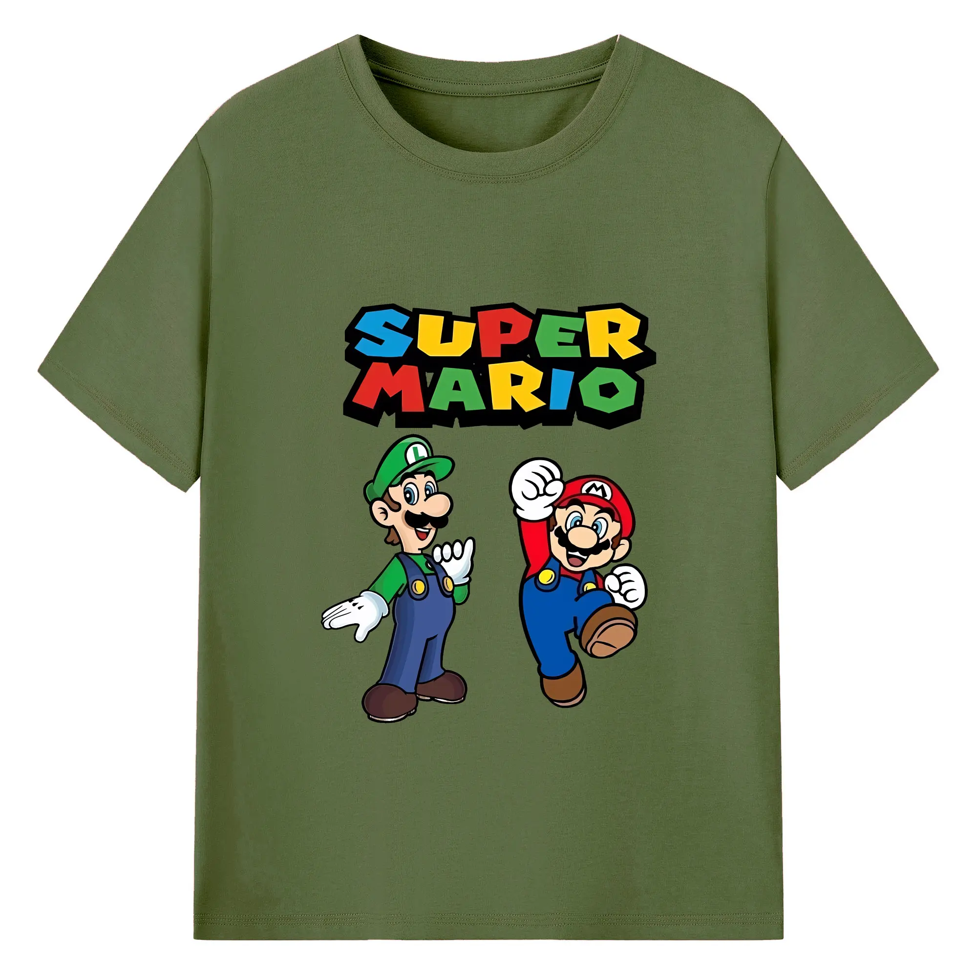 マリオ グッズ ルイージ - 綿100% ヴィンテージ風 半袖Tシャツ ・ フロントプリント ・ 柔らか肌触り ・ 通気性 快適 ・ スポーツ カジュアル 外出用