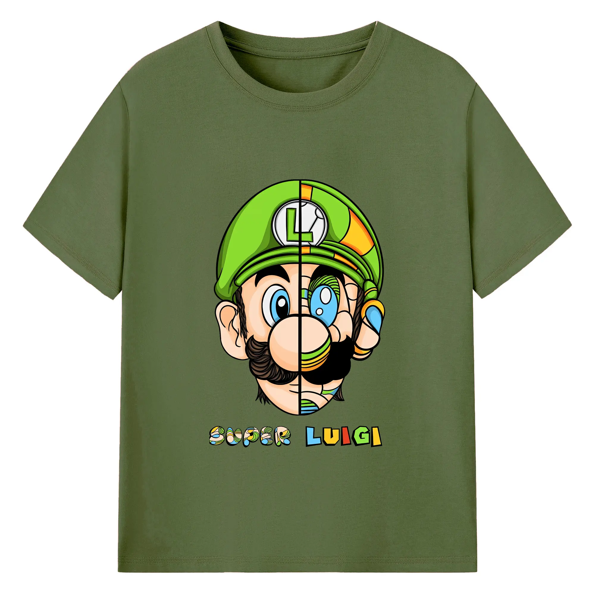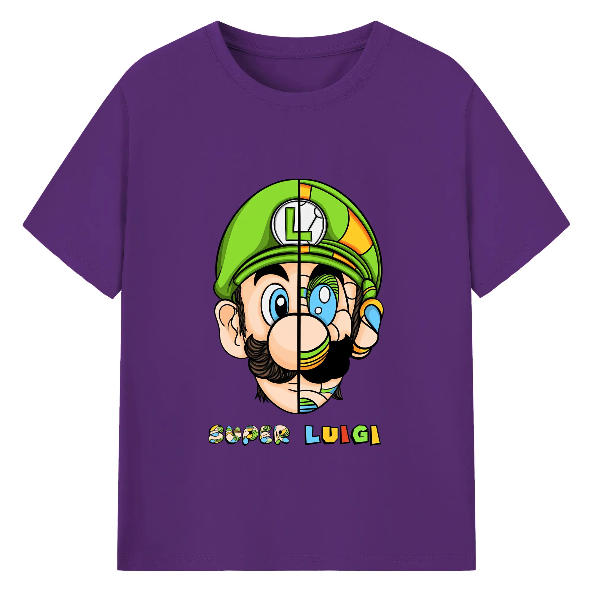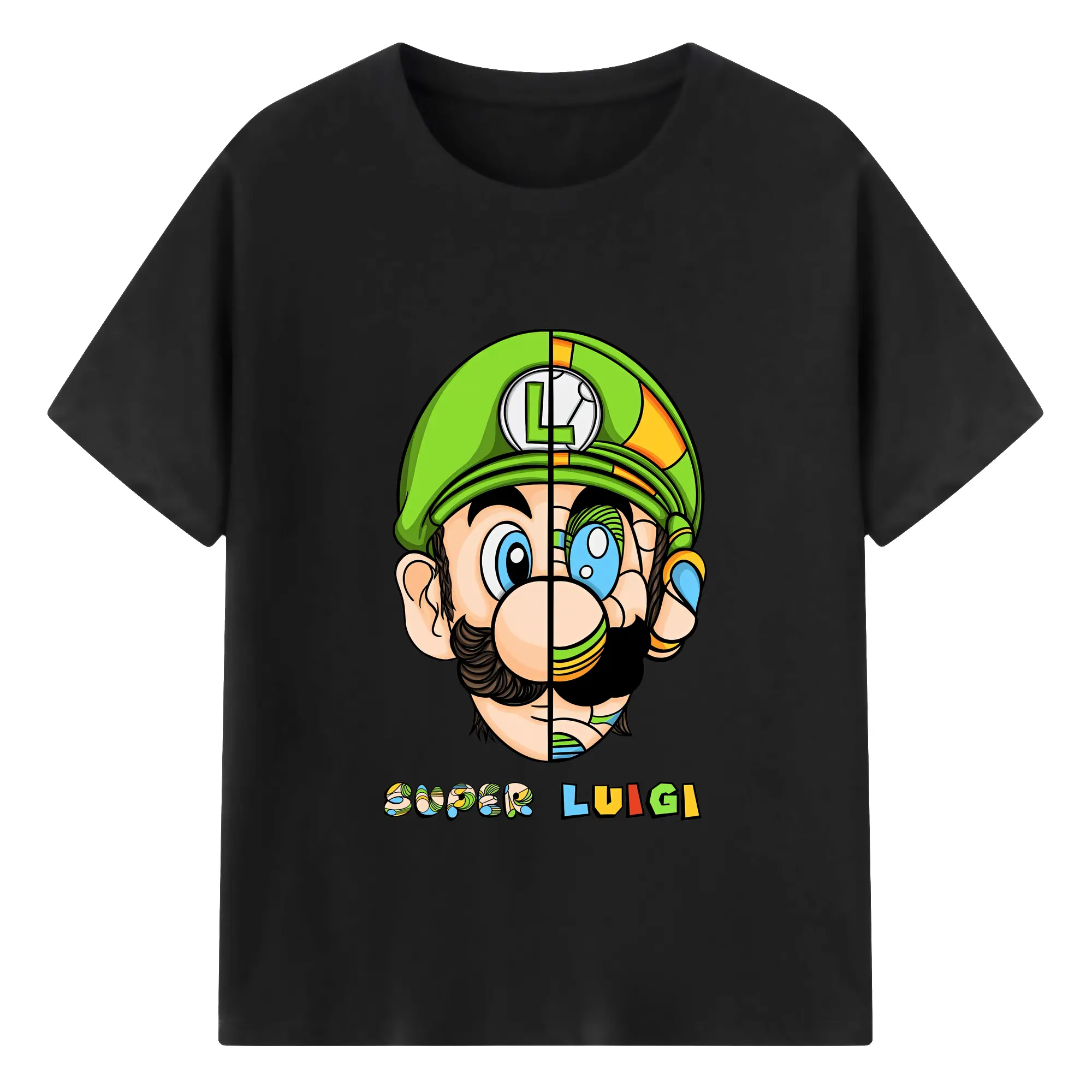 マリオ グッズ ルイージ - 綿100% 半袖Tシャツ ・ バックプリント ・ 快適 通気性 ・ 日常使い 散歩 スポーツ用