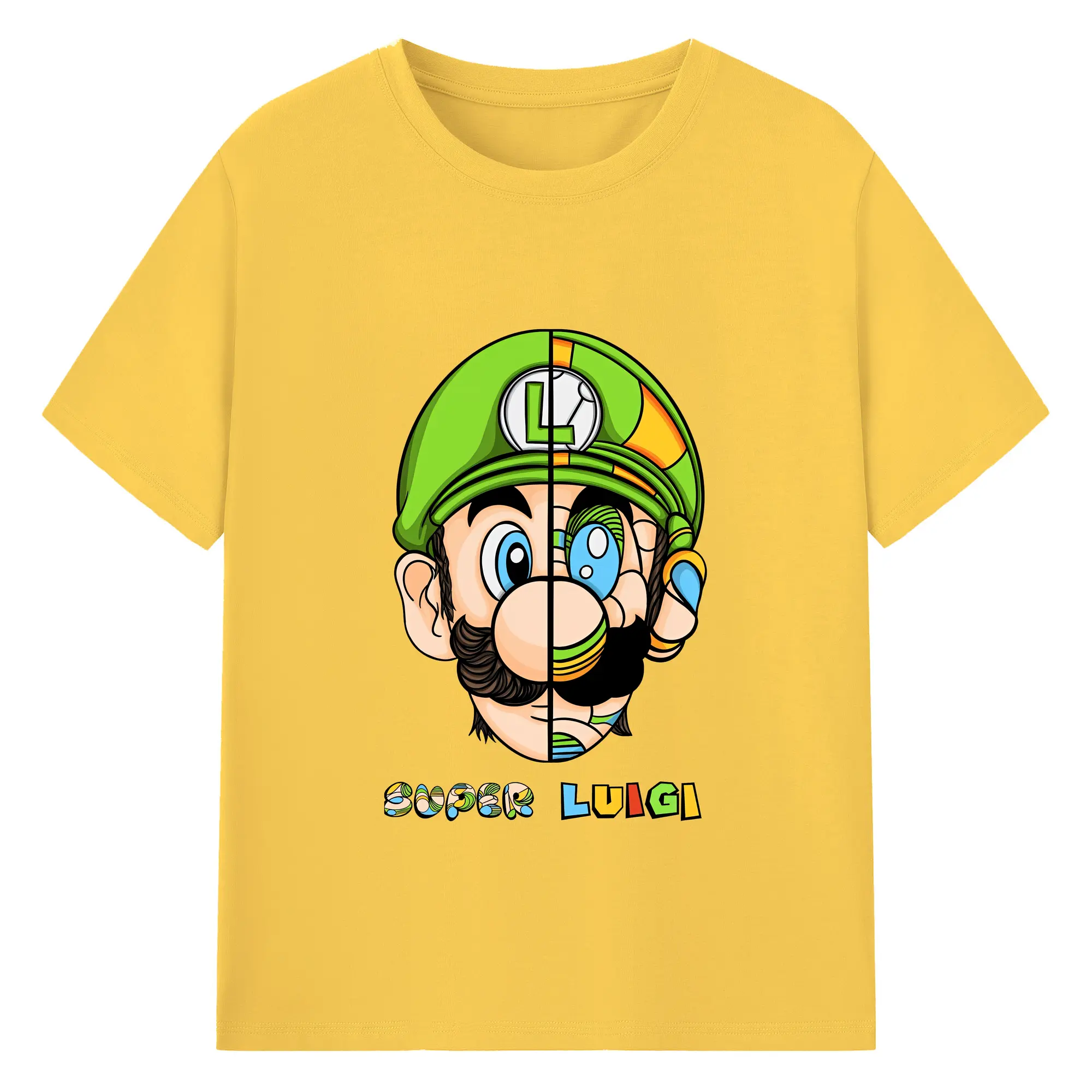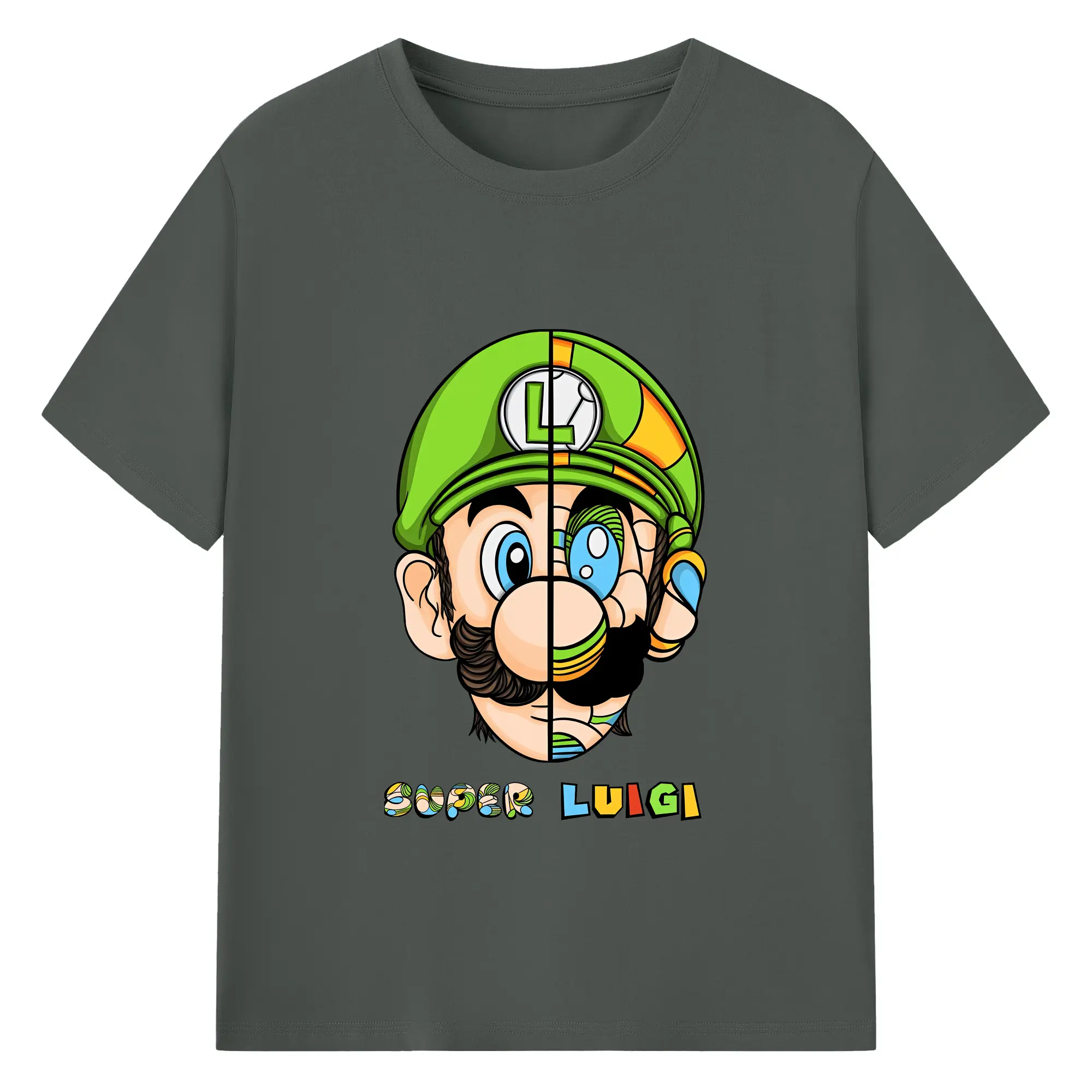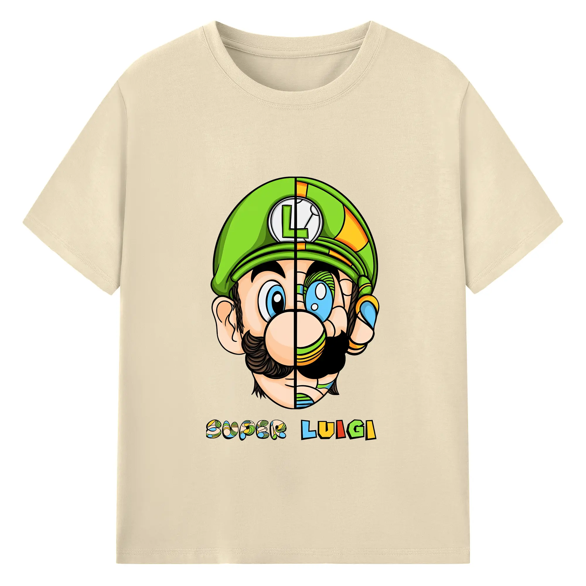 マリオ グッズ ルイージ - 綿100% ヴィンテージ風 半袖Tシャツ ・ フロントプリント ・ 柔らか肌触り ・ 通気性 快適 ・ スポーツ カジュアル 外出用