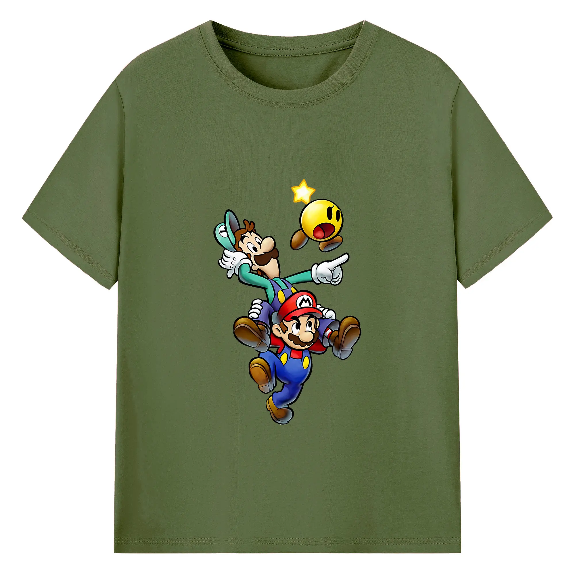 マリオ グッズ ルイージ - 綿100% 半袖Tシャツ ・ バックプリント ・ 快適 通気性 ・ 日常使い 散歩 スポーツ用