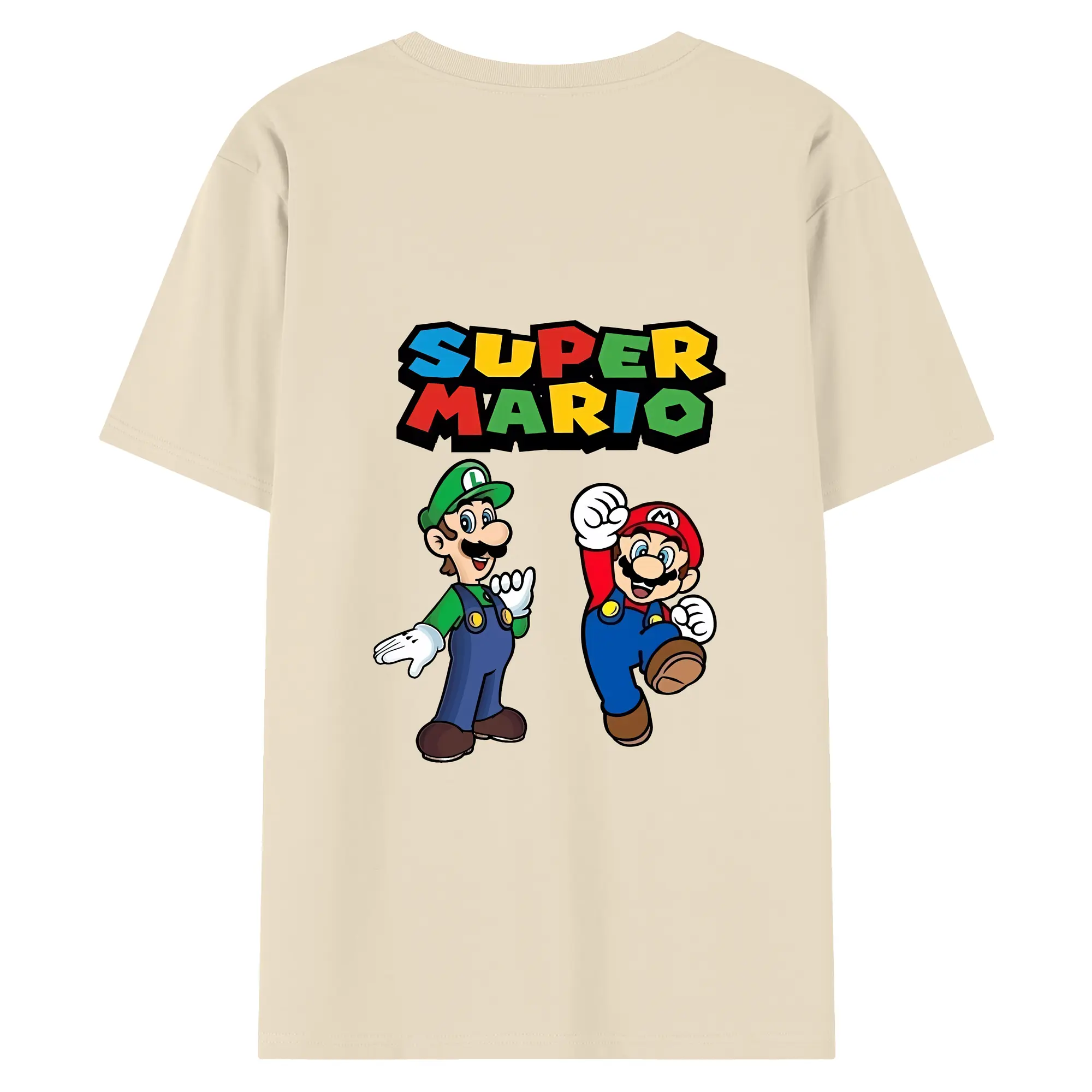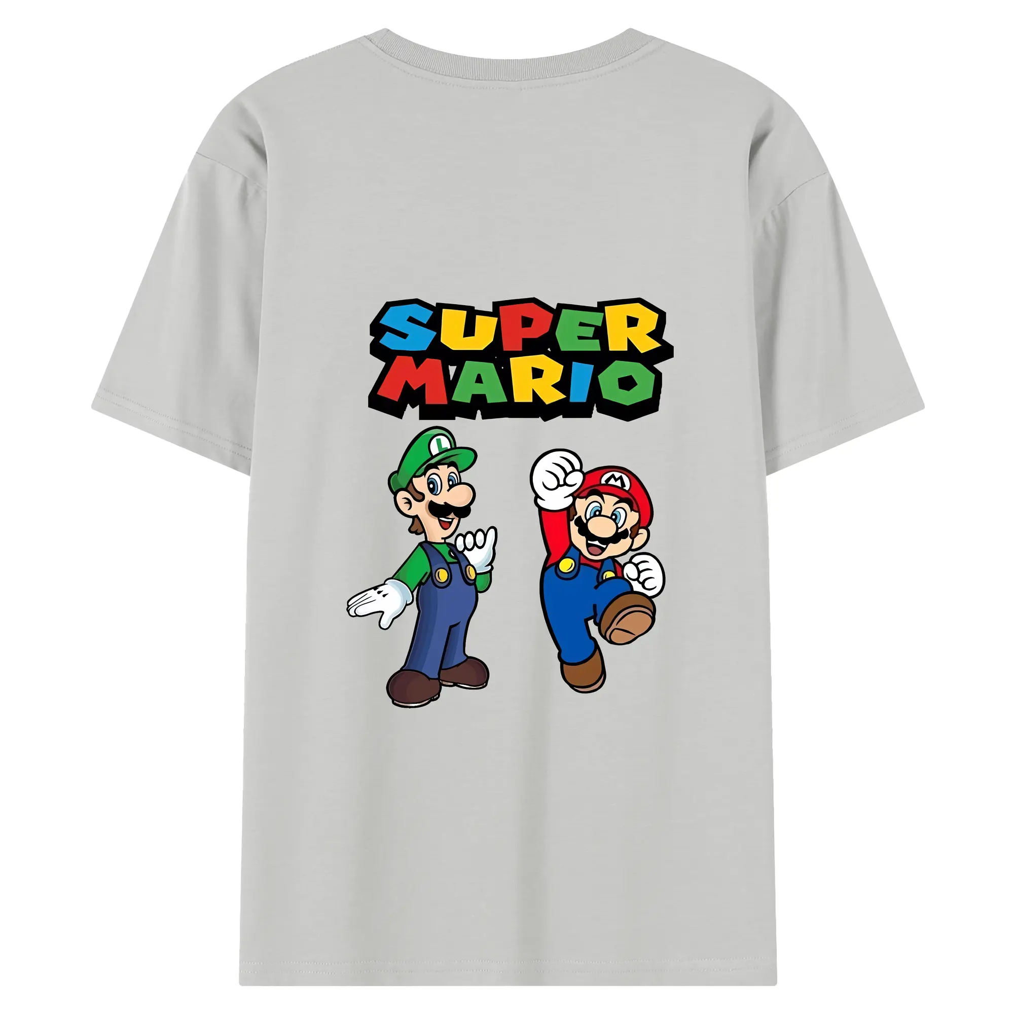 マリオ グッズ ルイージ - 綿100% ヴィンテージ風 半袖Tシャツ ・ 背面プリント ・ 柔らか肌触り ・ 通気性 快適 ・ スポーツ カジュアル 外出用
