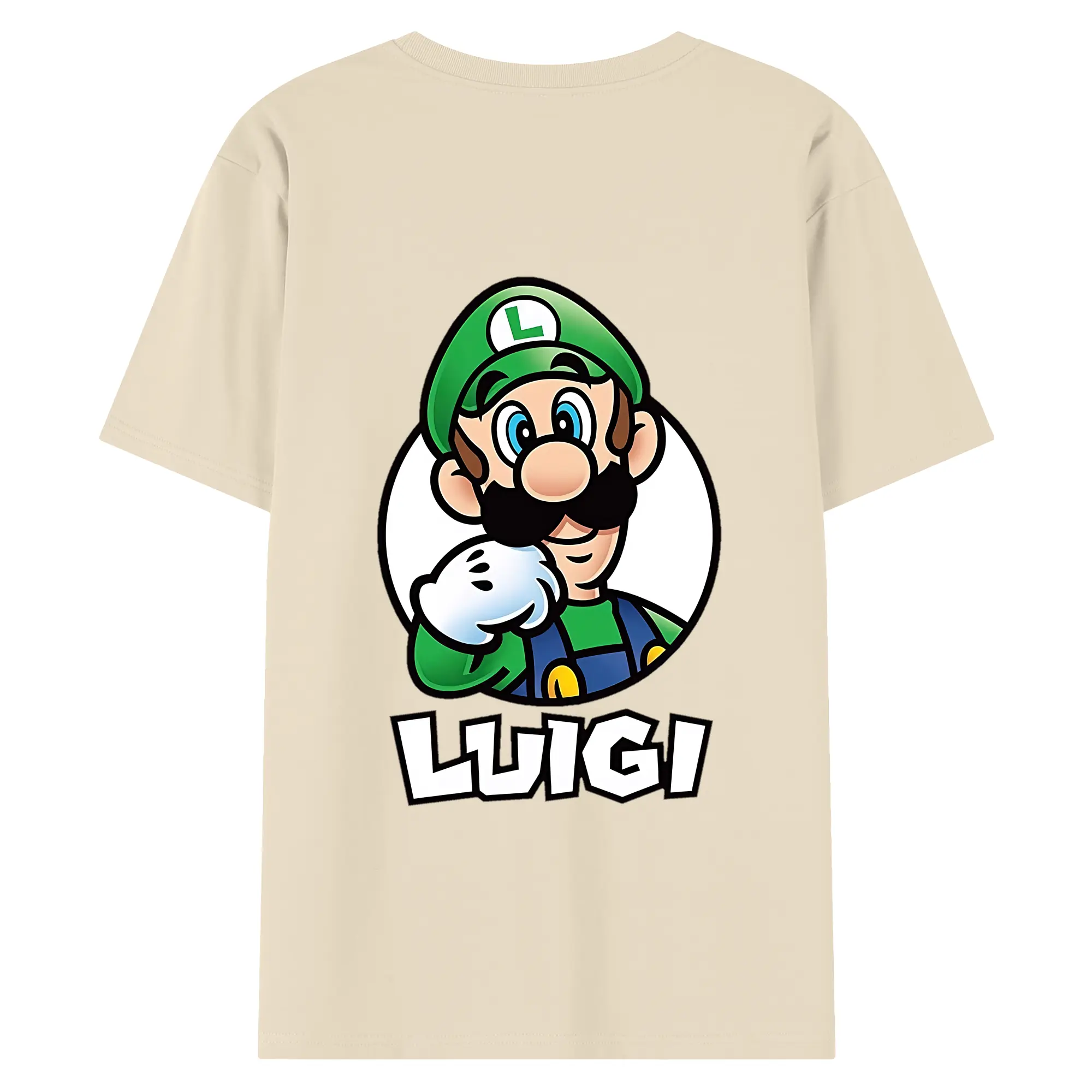 マリオ グッズ ルイージ - 綿100% ヴィンテージ風 半袖Tシャツ ・ 背面プリント ・ 柔らか肌触り ・ 通気性 快適 ・ スポーツ カジュアル 外出用