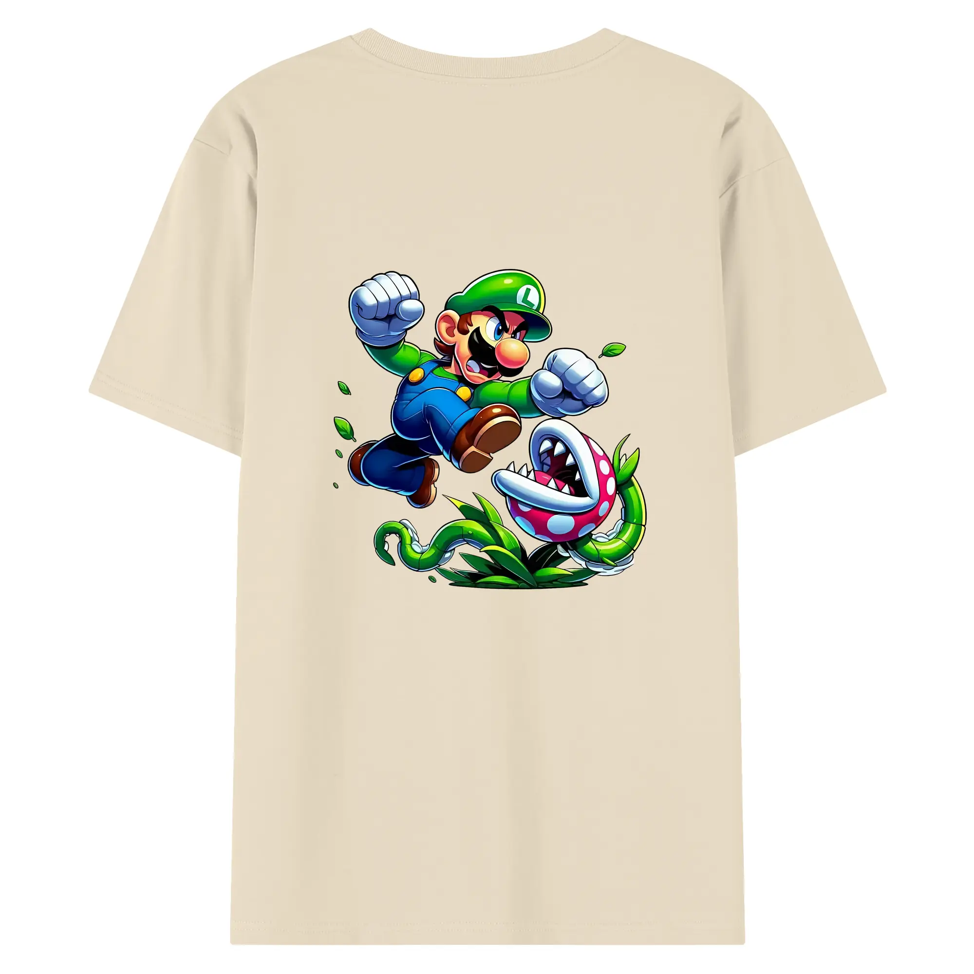 マリオ グッズ ルイージ - 綿100% ヴィンテージ風 半袖Tシャツ ・ 背面プリント ・ 柔らか肌触り ・ 通気性 快適 ・ スポーツ カジュアル 外出用