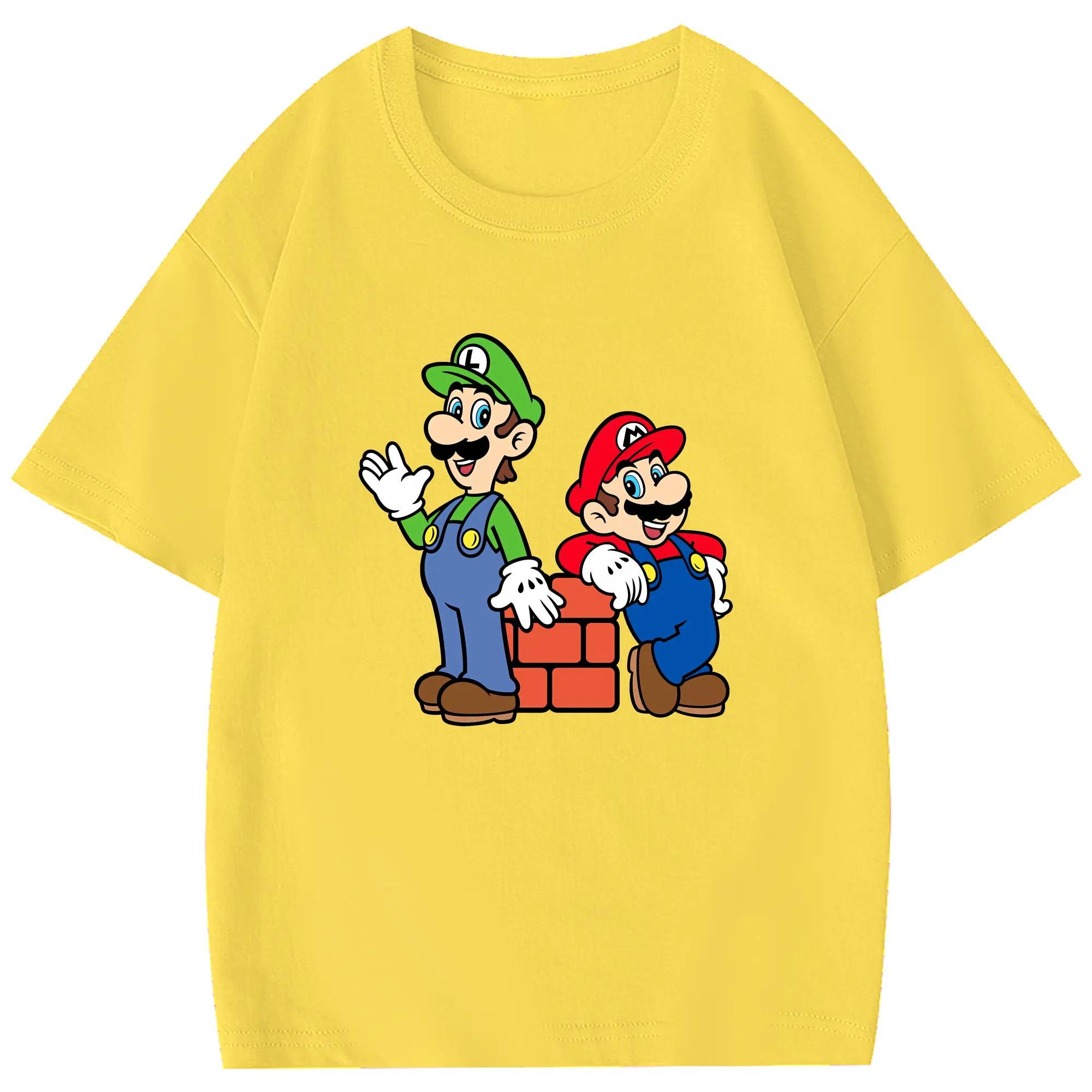マリオ グッズ ルイージ - 綿100% ヴィンテージ風 半袖Tシャツ ・ フロントプリント ・ 柔らか肌触り ・ 通気性 快適 ・ スポーツ カジュアル 外出用