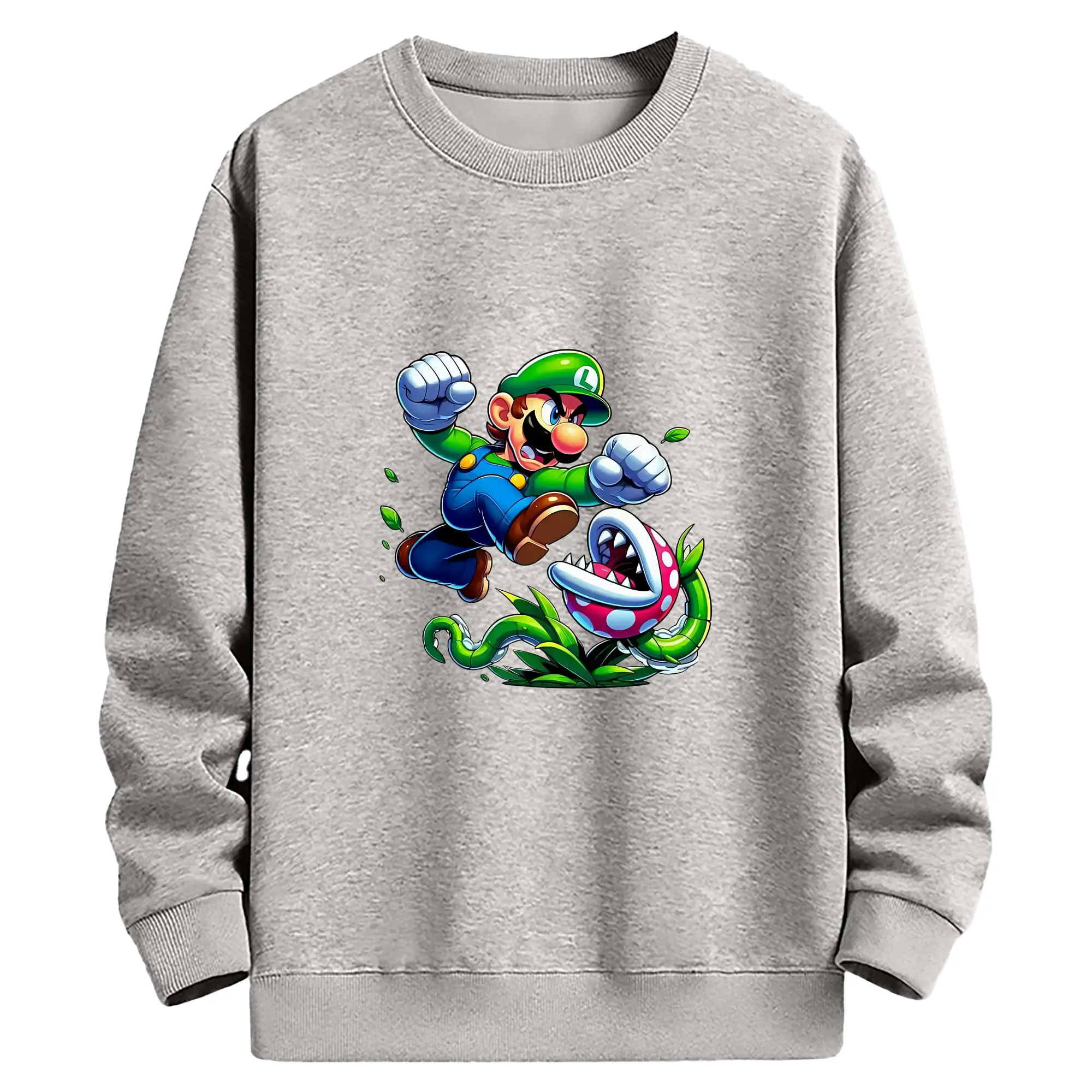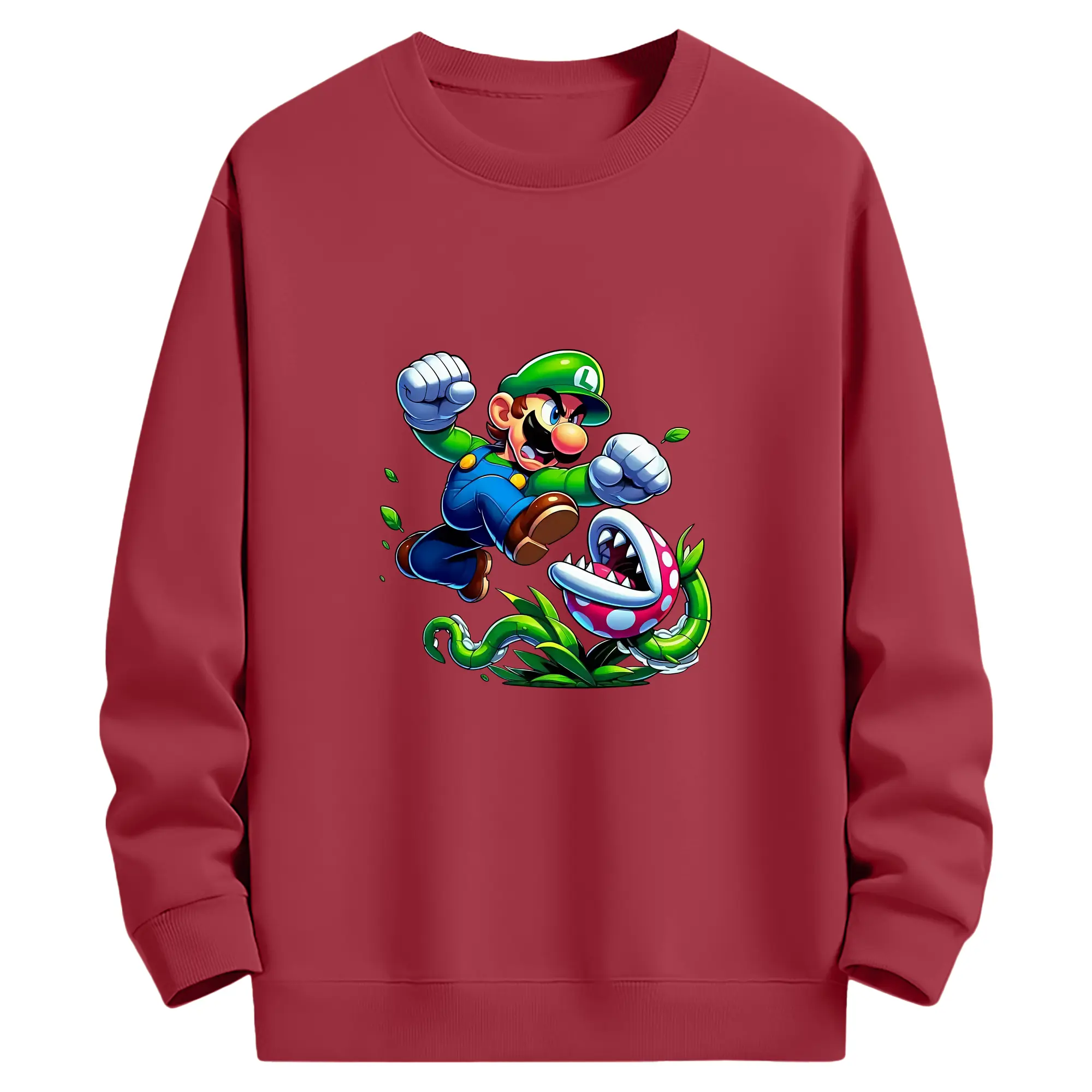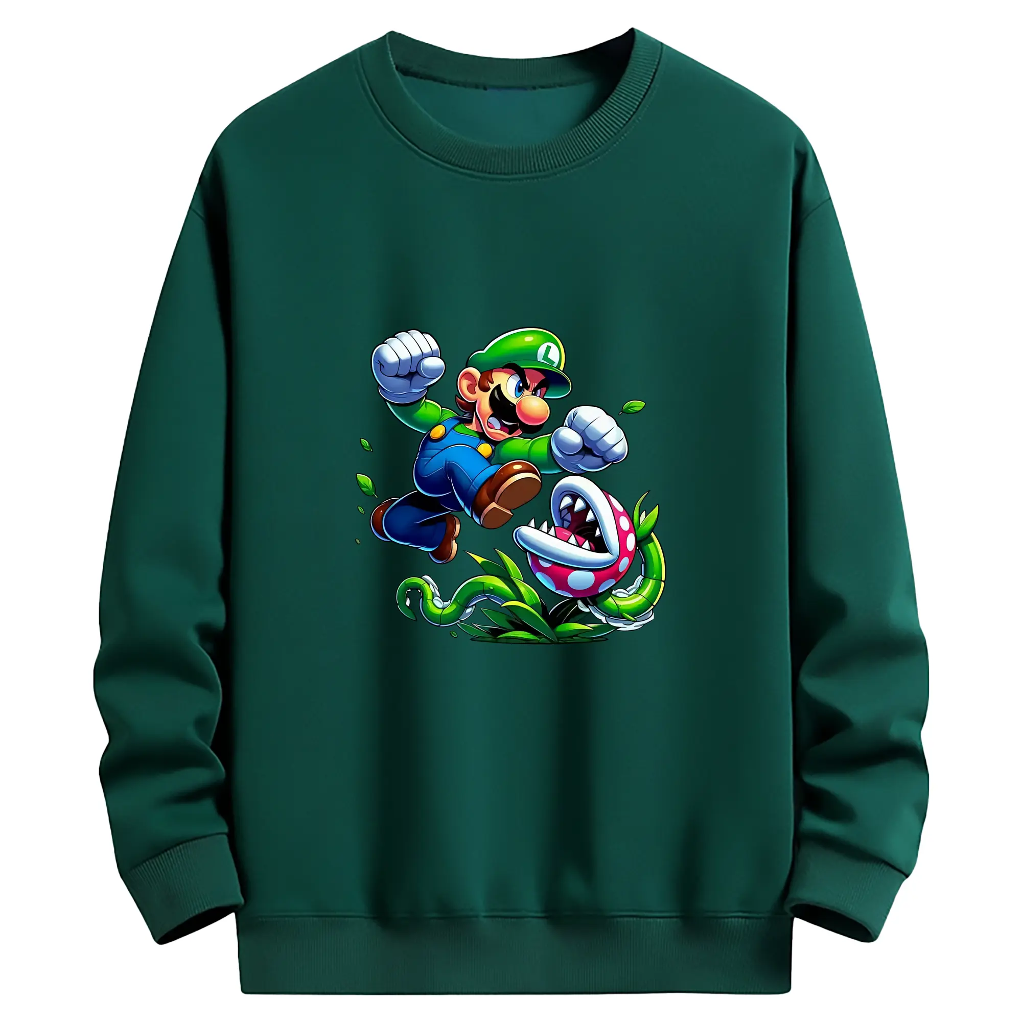 マリオ グッズ ルイージ - 薄手 クルーネック スウェット 裏毛260g · ポリエステル 春秋向け カジュアル 男女兼用 · トレーナー デイリー スポーツ 散歩に最適