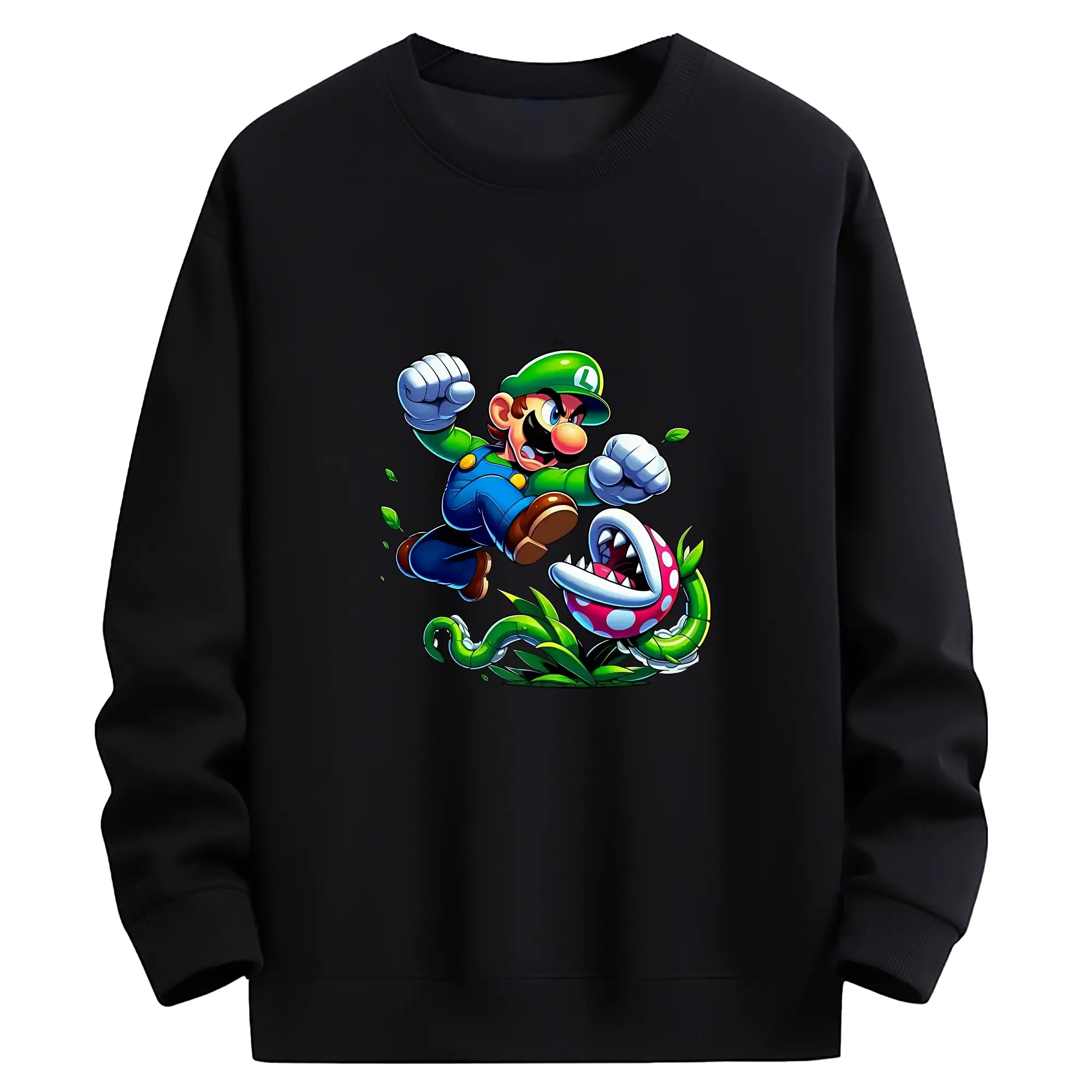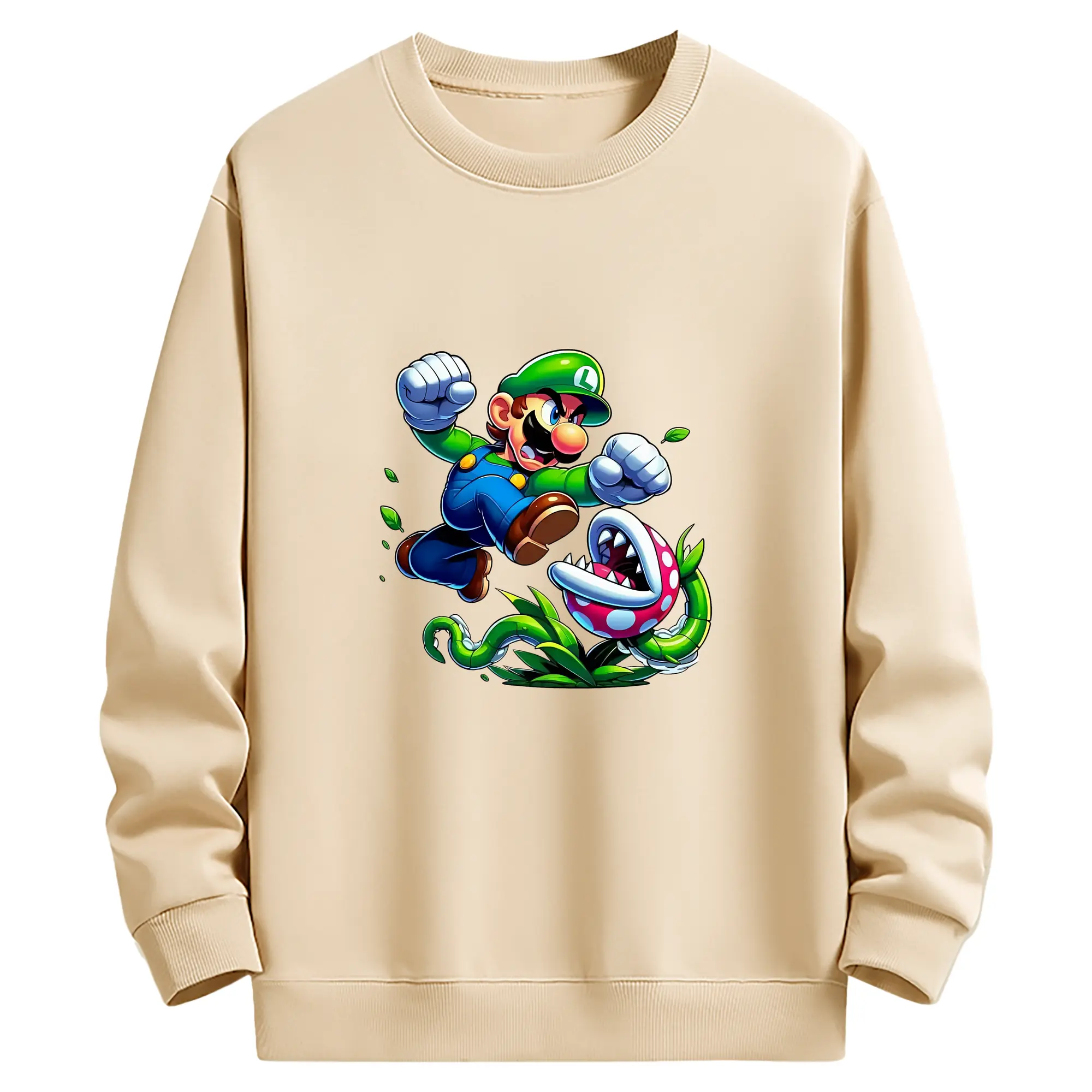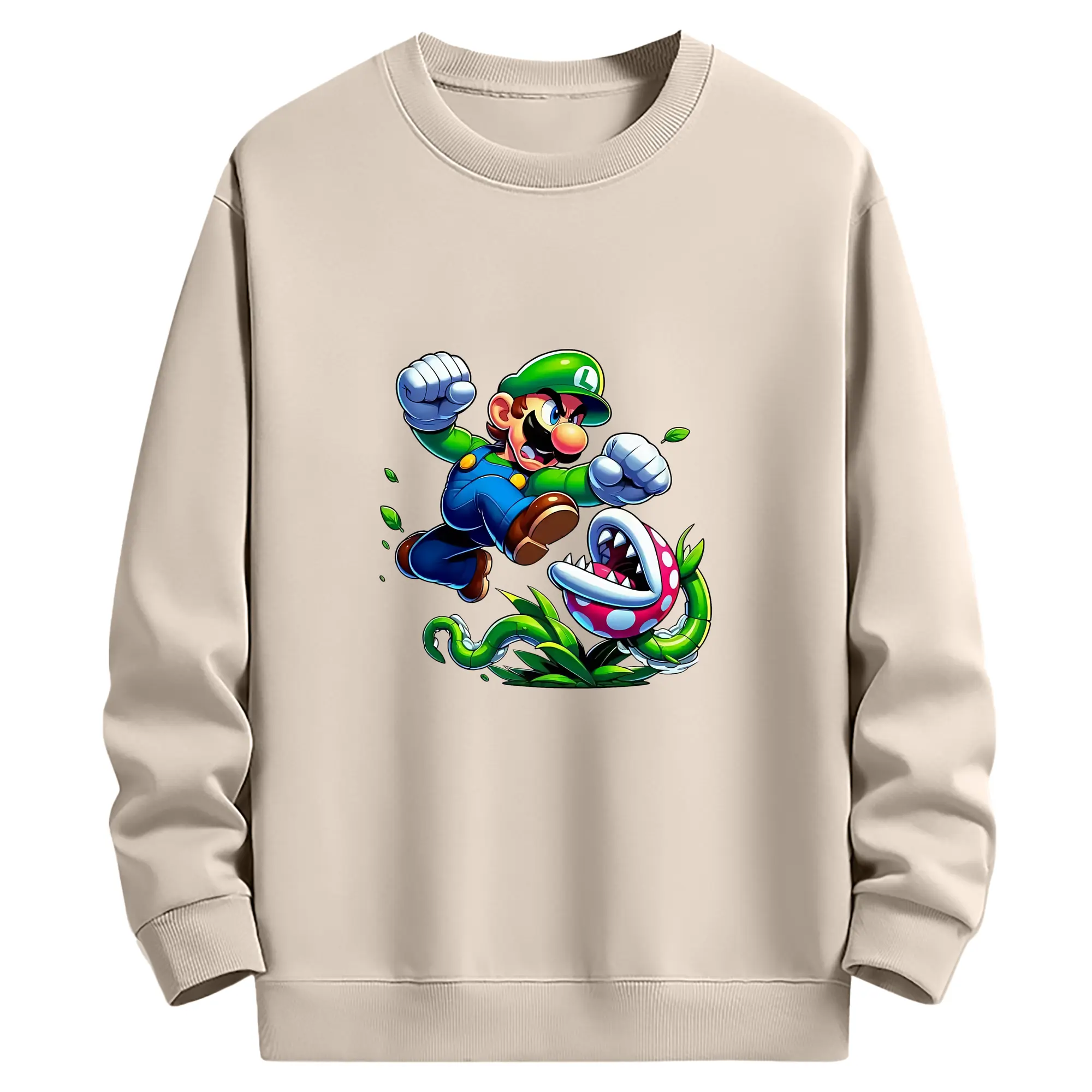 マリオ グッズ ルイージ - 薄手 クルーネック スウェット 裏毛260g · ポリエステル 春秋向け カジュアル 男女兼用 · トレーナー デイリー スポーツ 散歩に最適