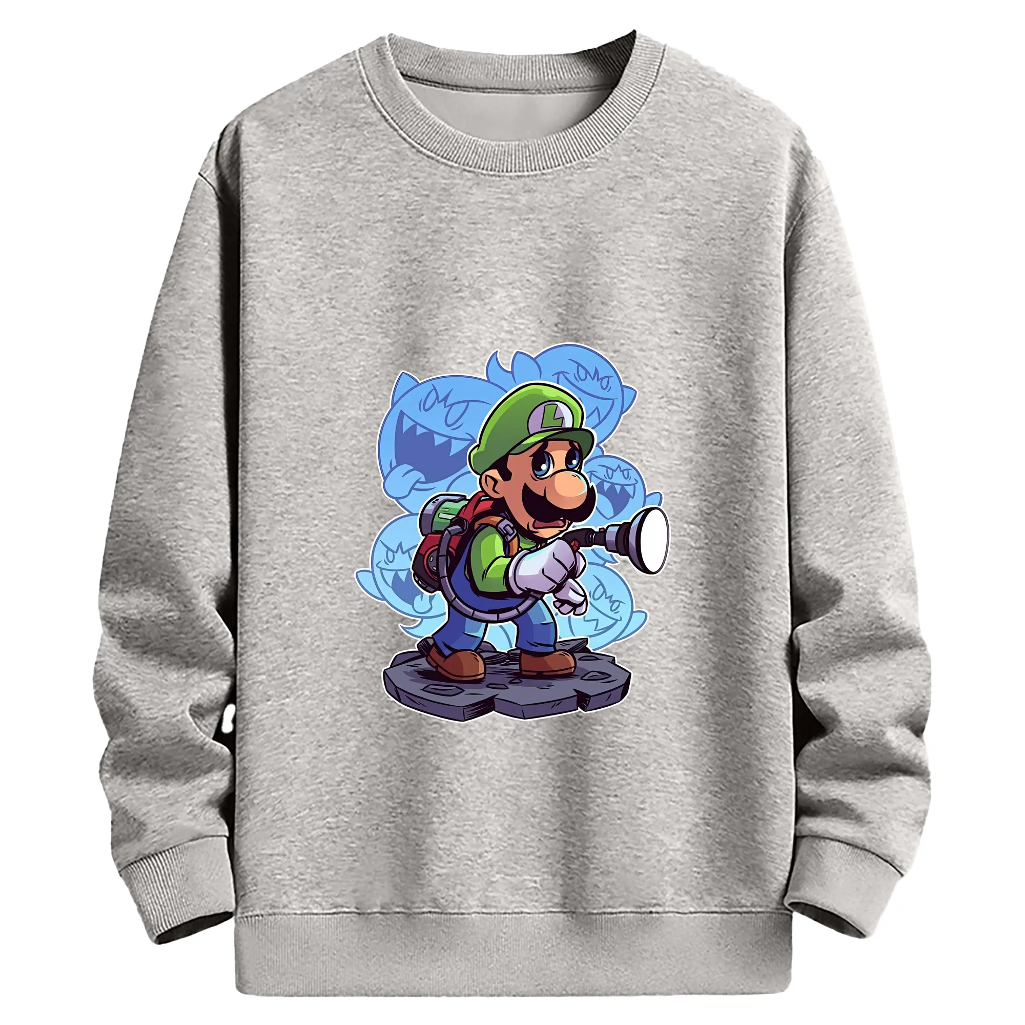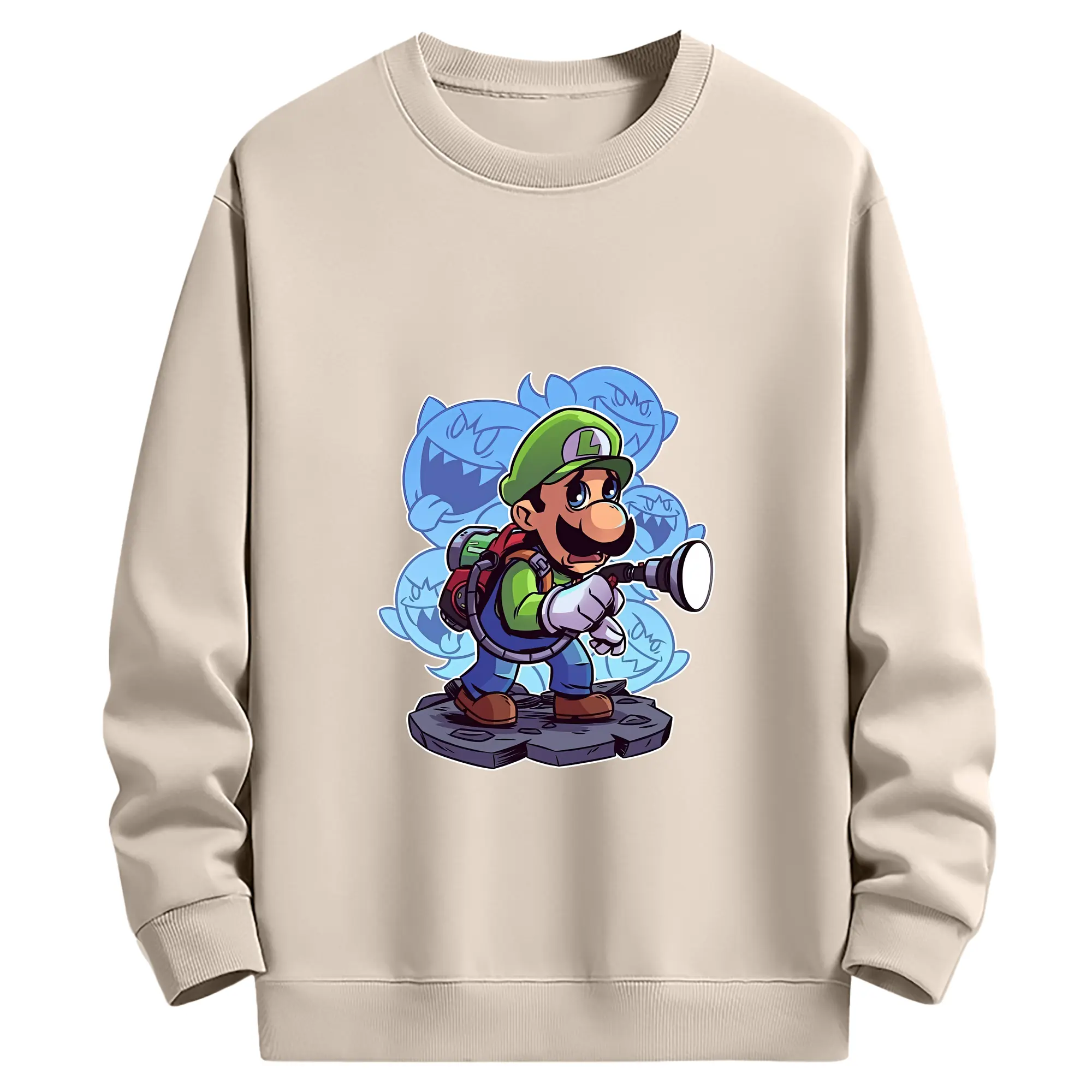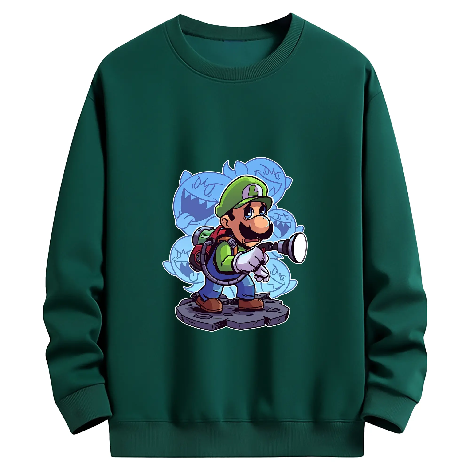マリオ グッズ ルイージ - 薄手 クルーネック スウェット 裏毛260g · ポリエステル 春秋向け カジュアル 男女兼用 · トレーナー デイリー スポーツ 散歩に最適