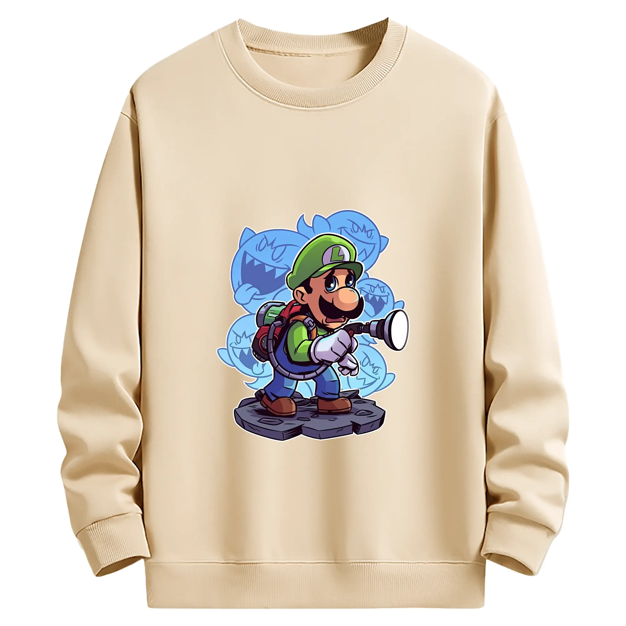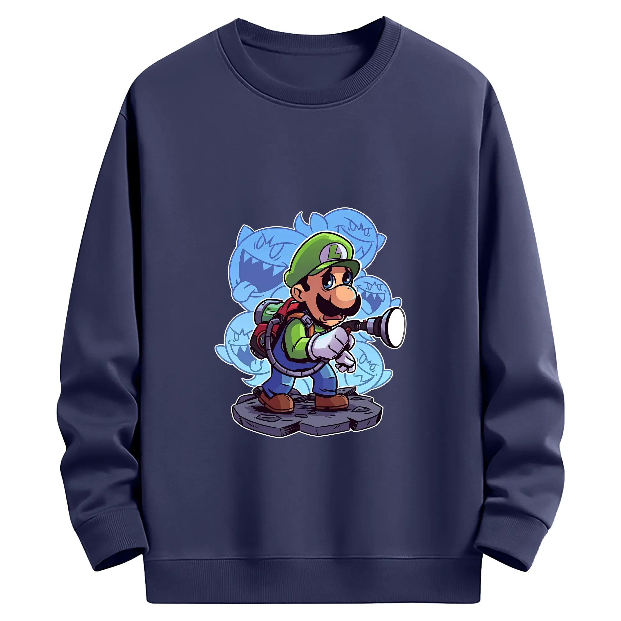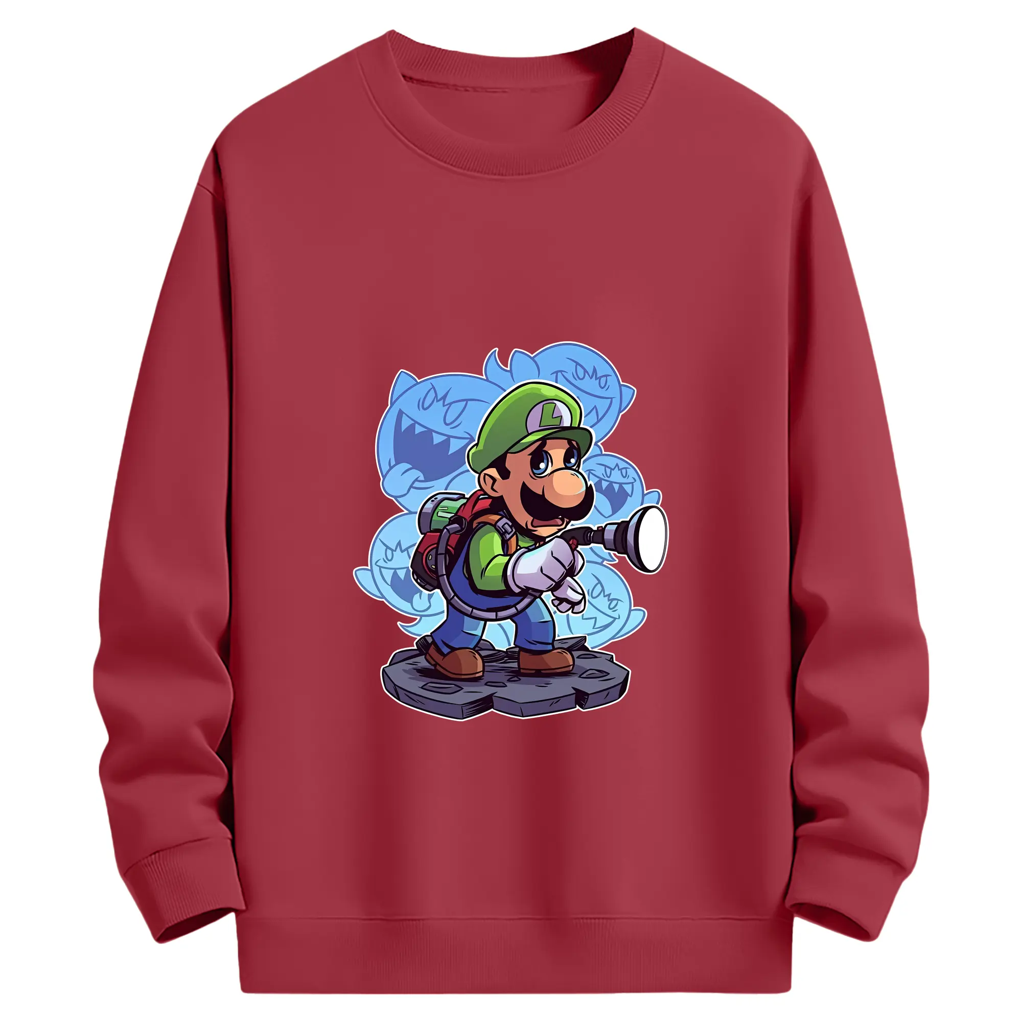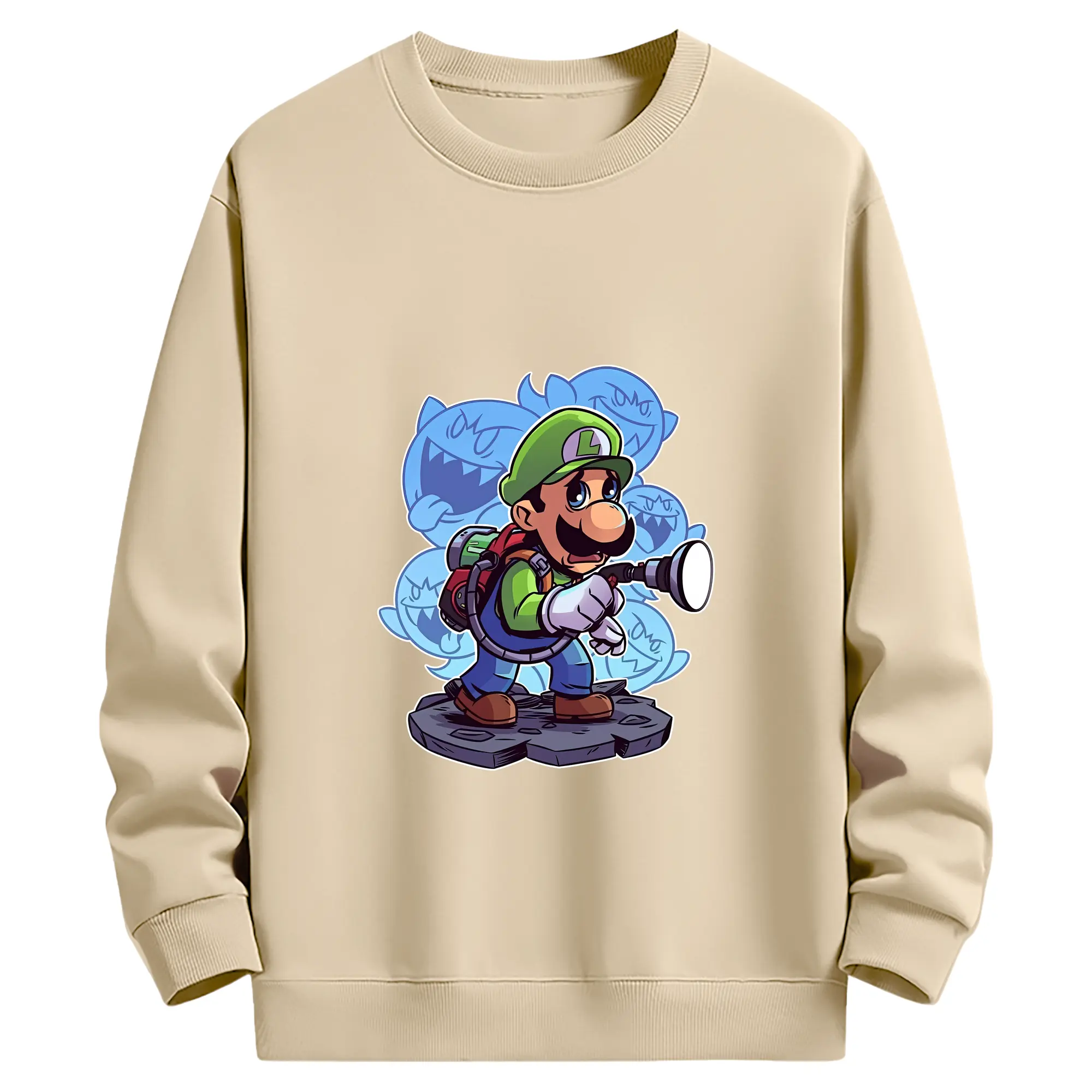 マリオ グッズ ルイージ - 薄手 クルーネック スウェット 裏毛260g · ポリエステル 春秋向け カジュアル 男女兼用 · トレーナー デイリー スポーツ 散歩に最適