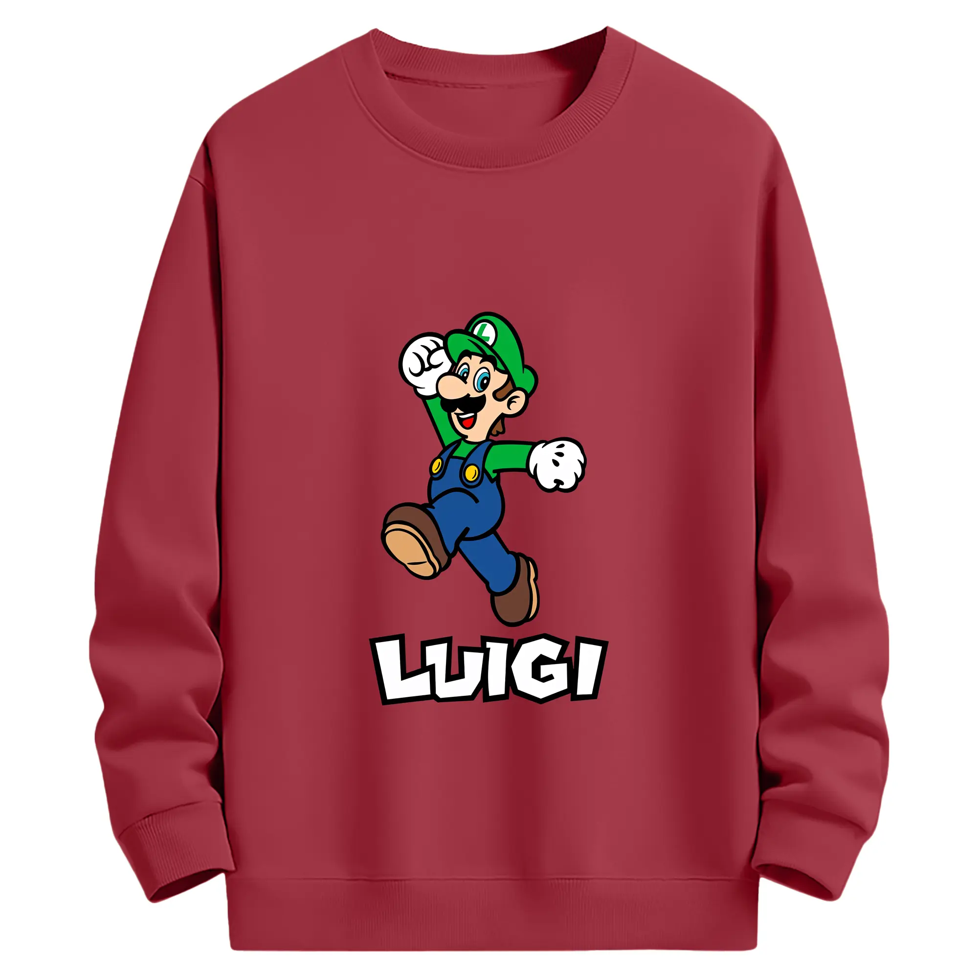 マリオ グッズ ルイージ - 薄手 クルーネック スウェット 裏毛260g · ポリエステル 春秋向け カジュアル 男女兼用 · トレーナー デイリー スポーツ 散歩に最適